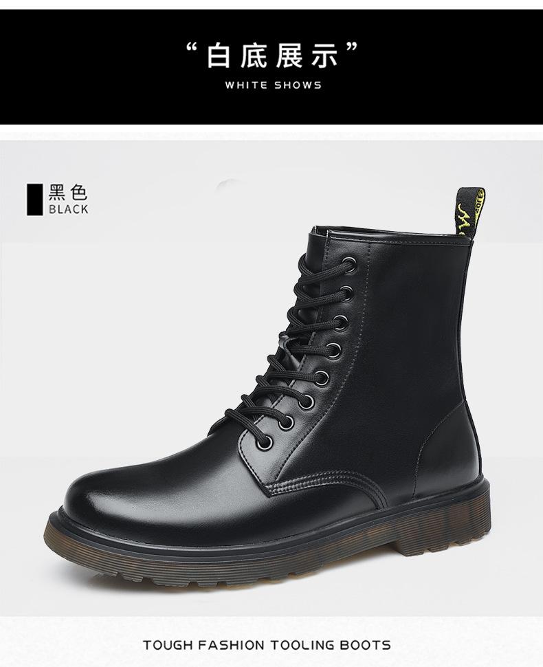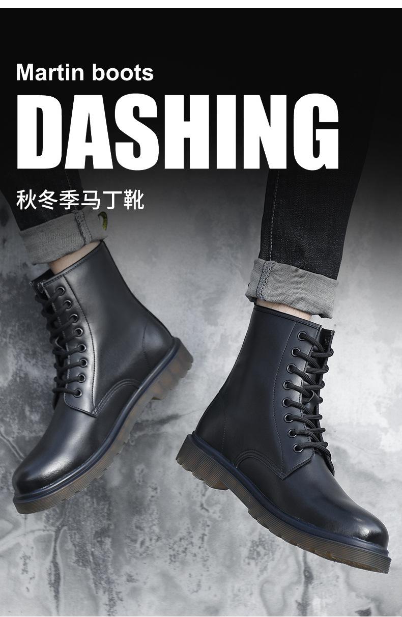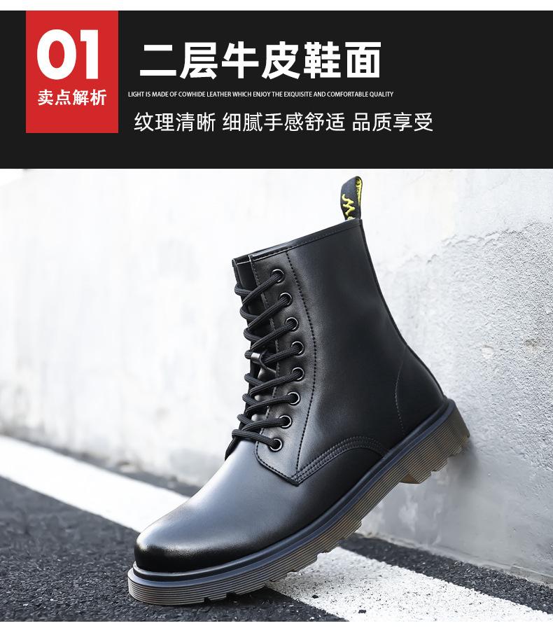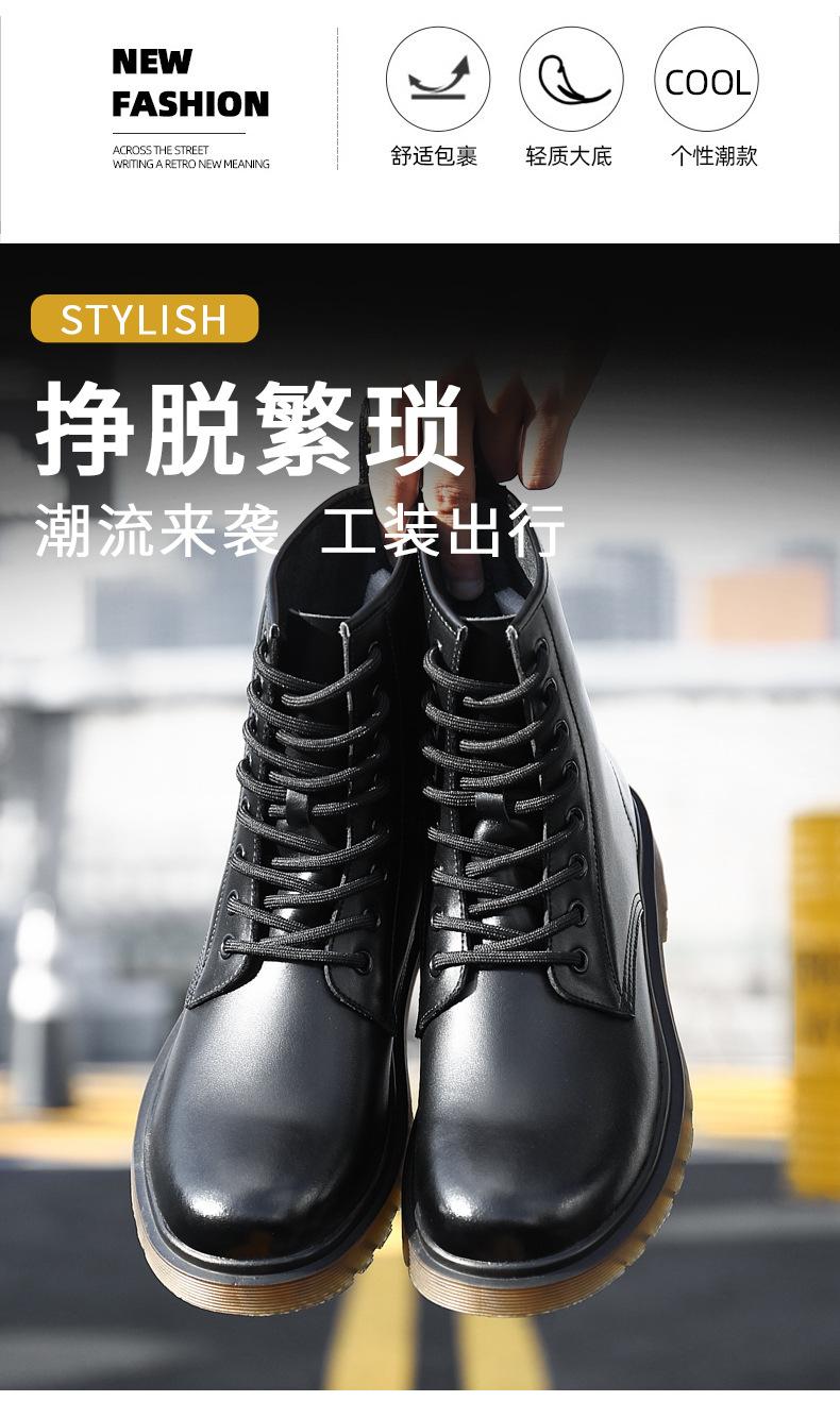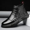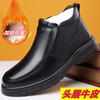 Zapatos de hombre Invierno Otoño Invierno forrados de vellón engrosados estilo británico piel de vaca negra ropa de trabajo zapatos de cuero para hombre zapatos altos de algodón cálidos
