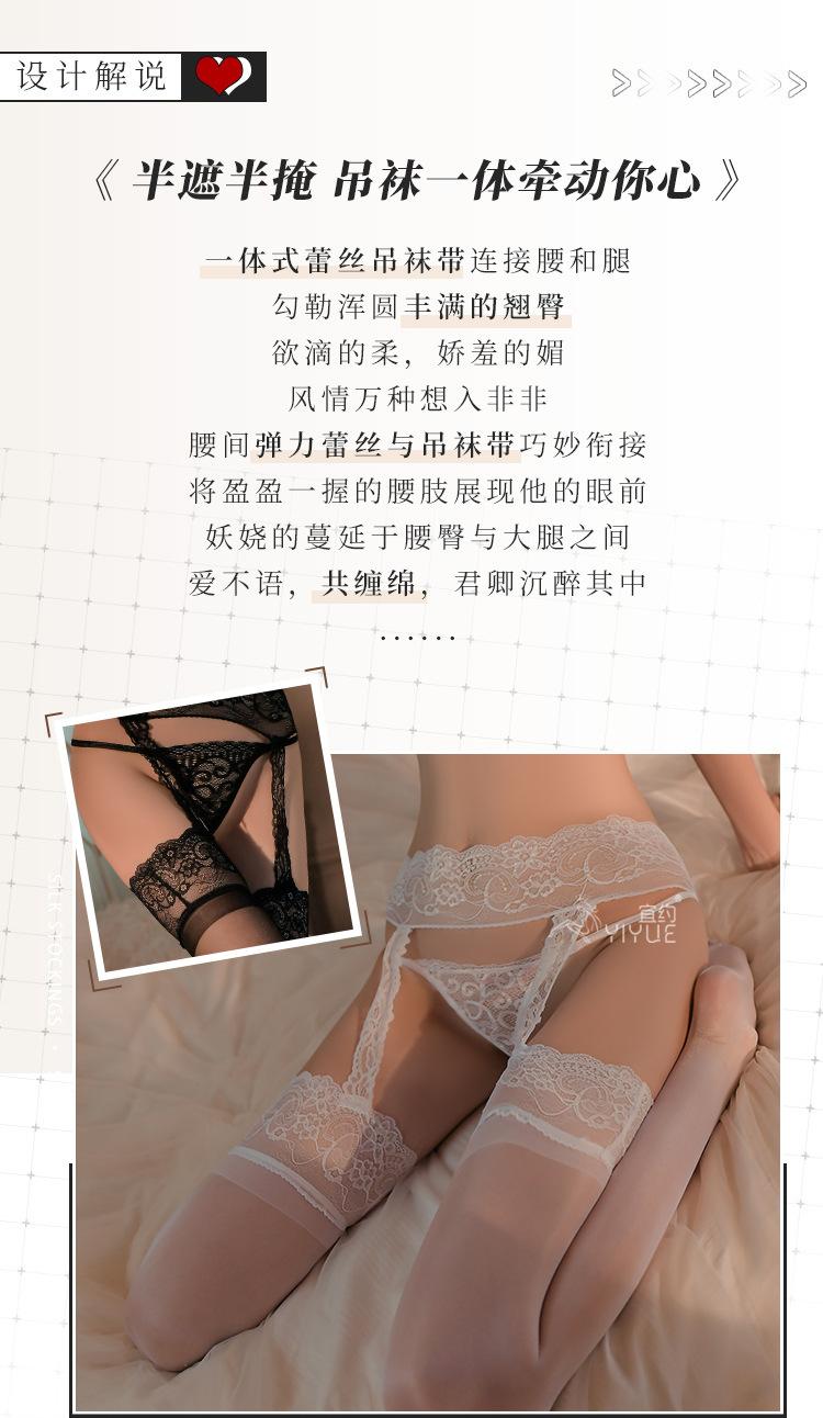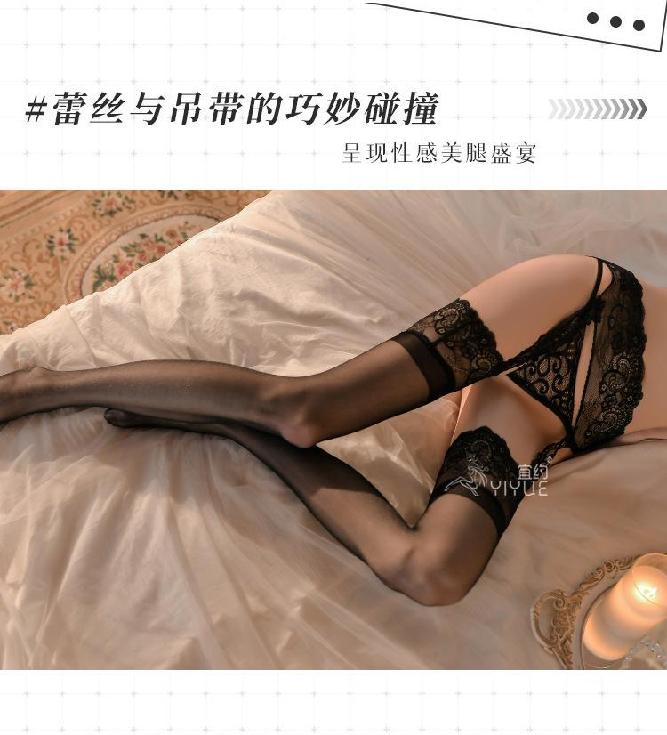 Yiyue sexy calcetines de tirantes de una pieza medias finas y calientes de encaje tentación transparente largo negro seda W27