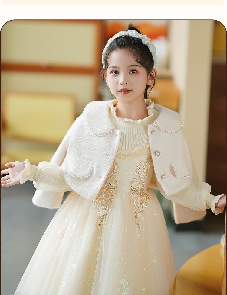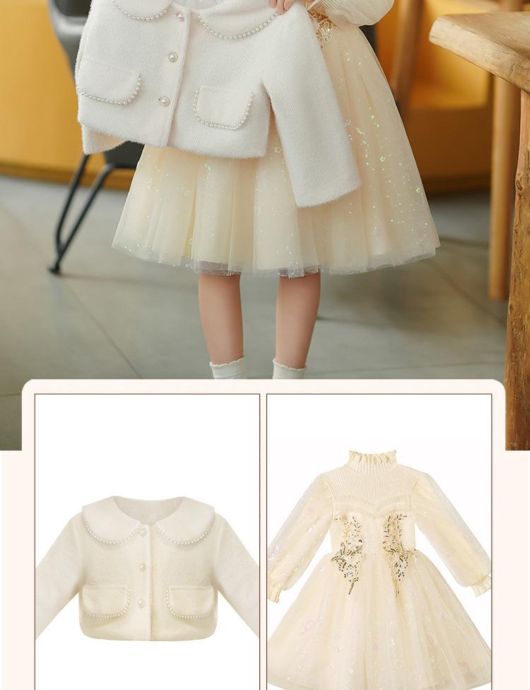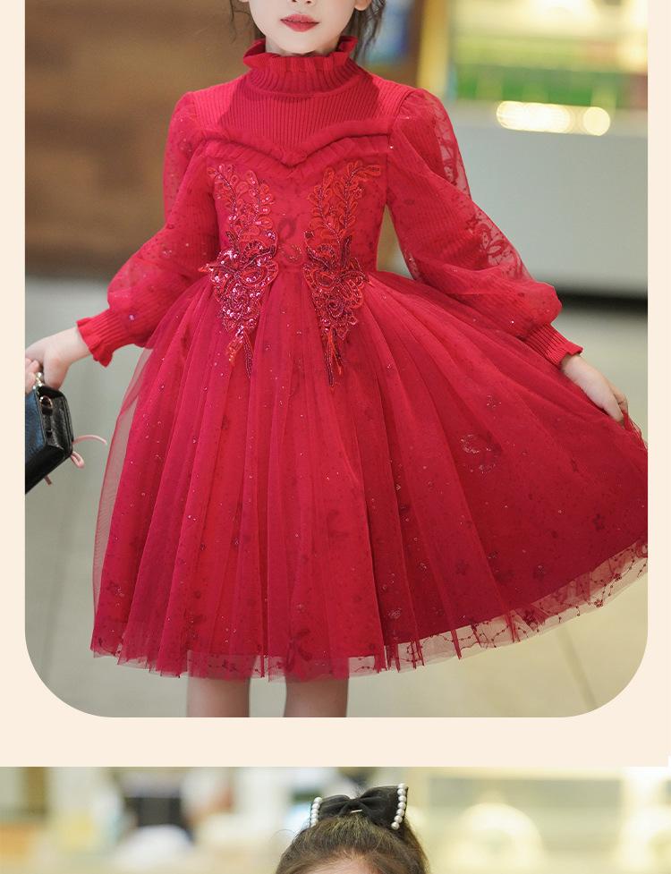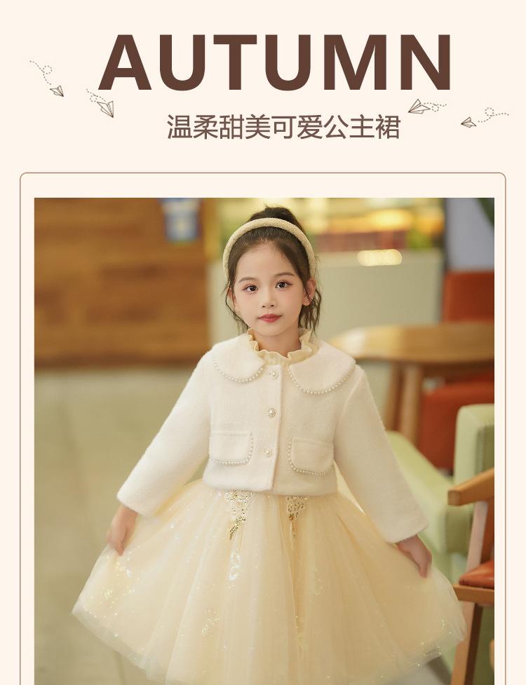 Vestido de Niña Otoño e Invierno 2024 Nuevo Otoño para Niños Manga Larga Falda de Lana Vestido de Princesa de Moda para Niña