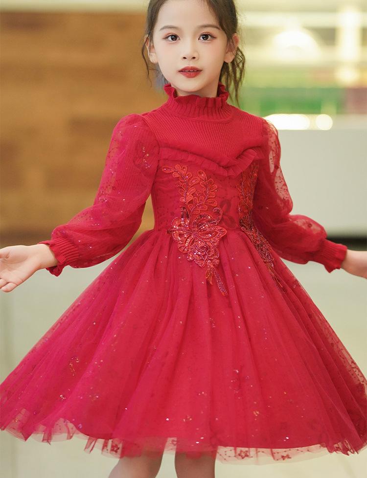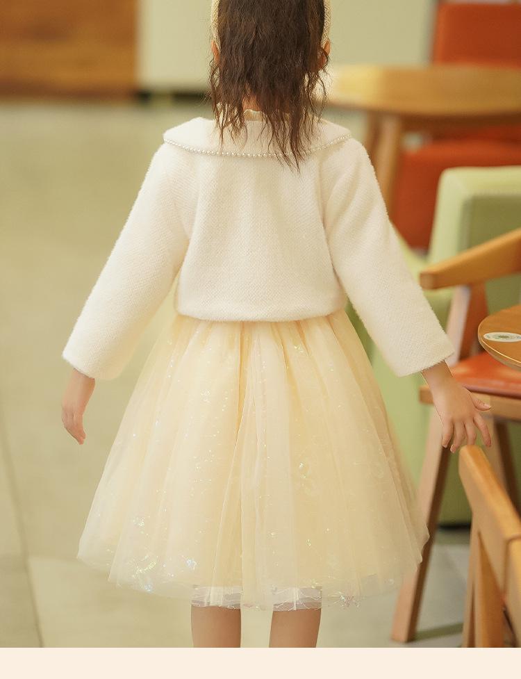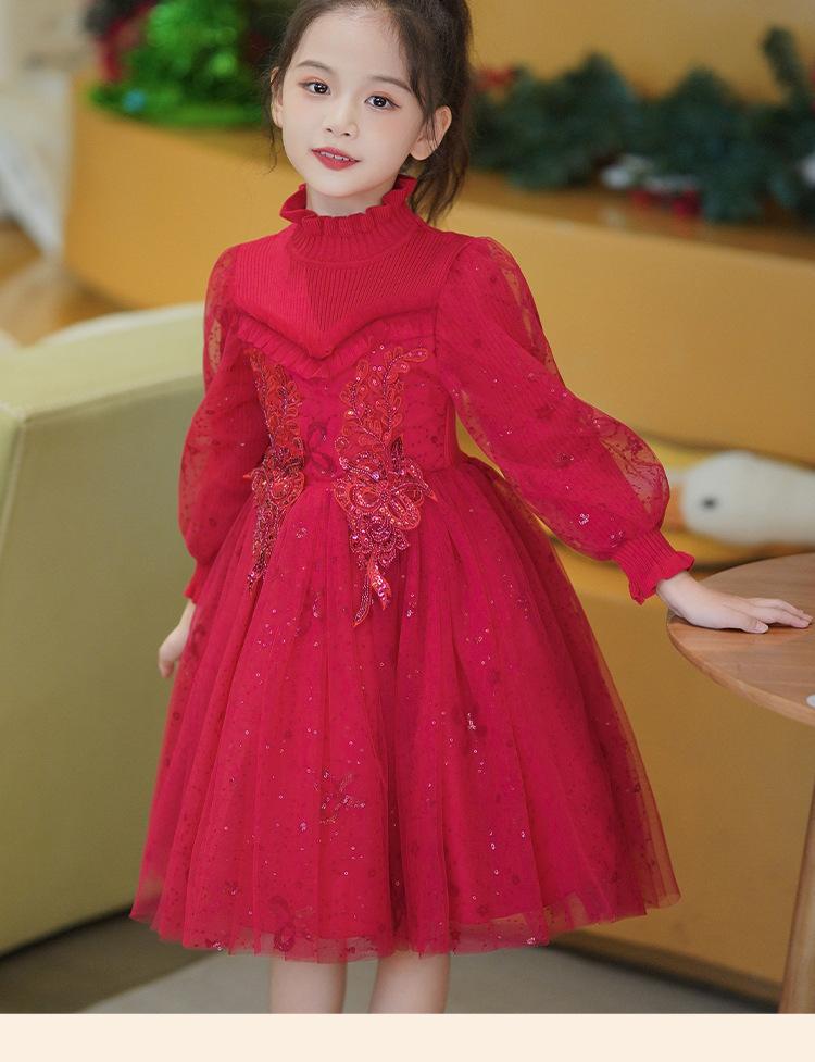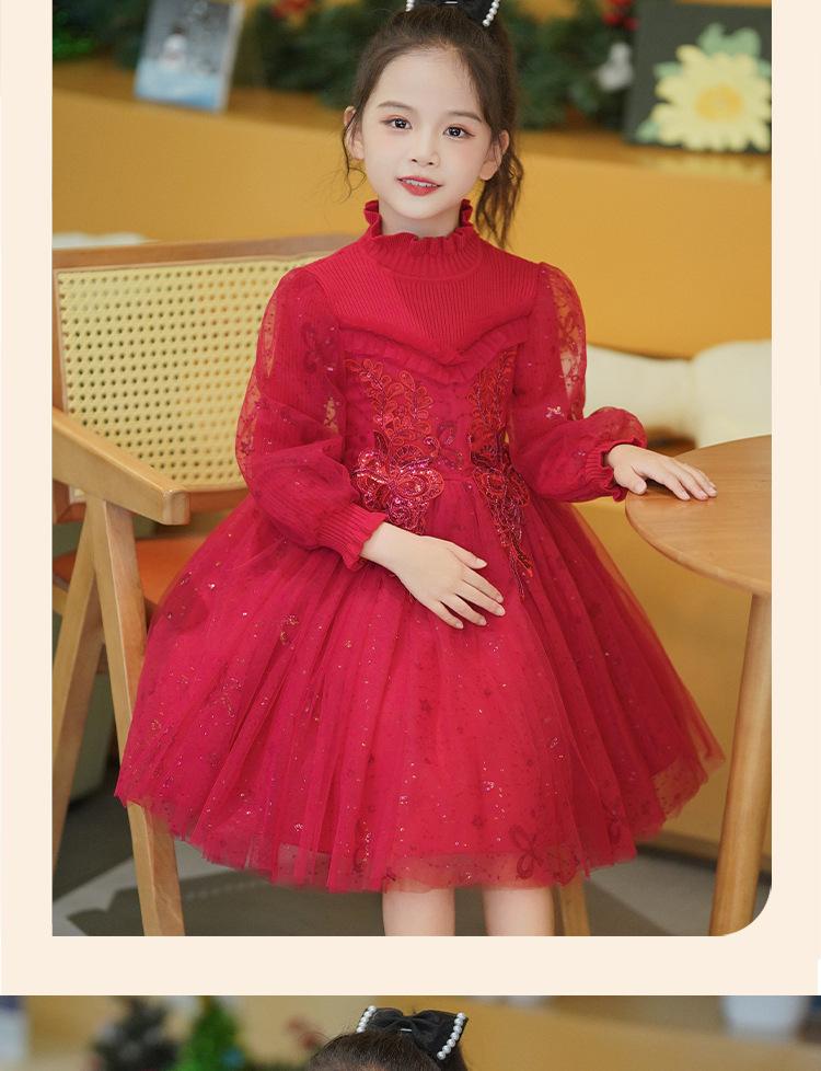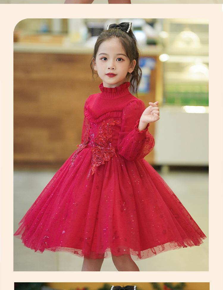 Vestido de Niña Otoño e Invierno 2024 Nuevo Otoño para Niños Manga Larga Falda de Lana Vestido de Princesa de Moda para Niña