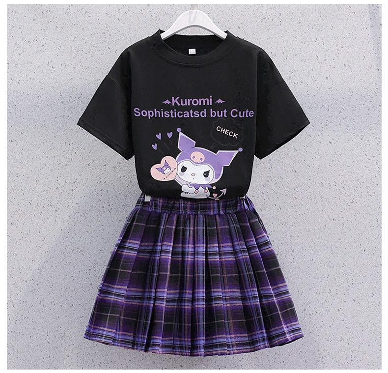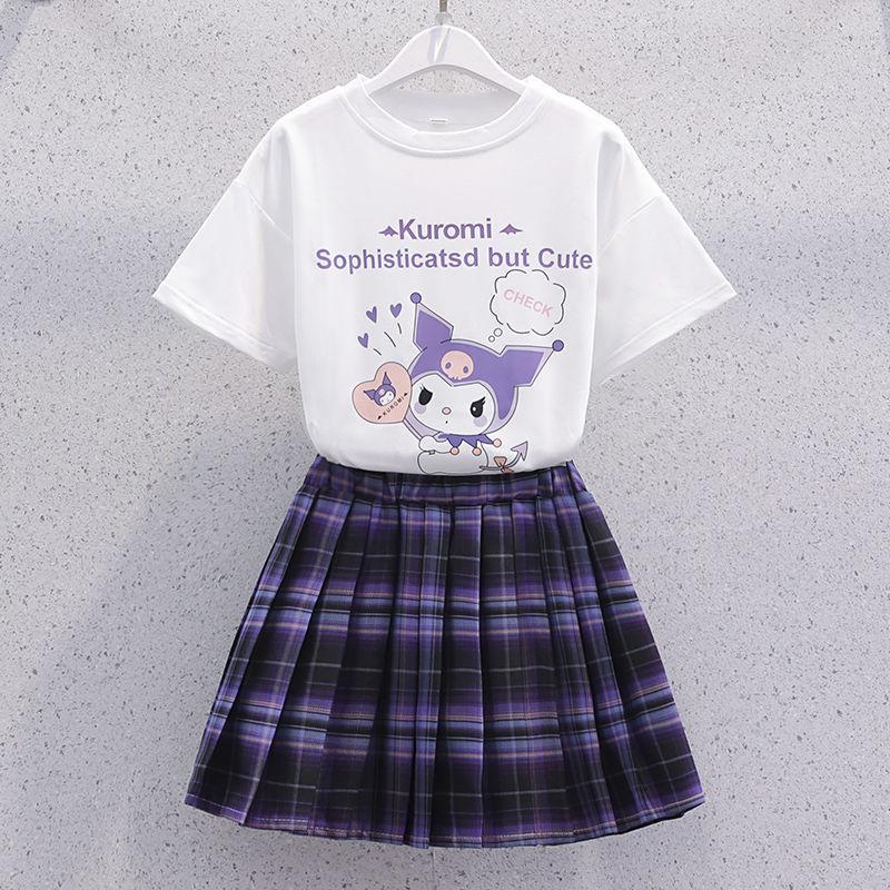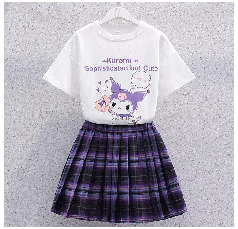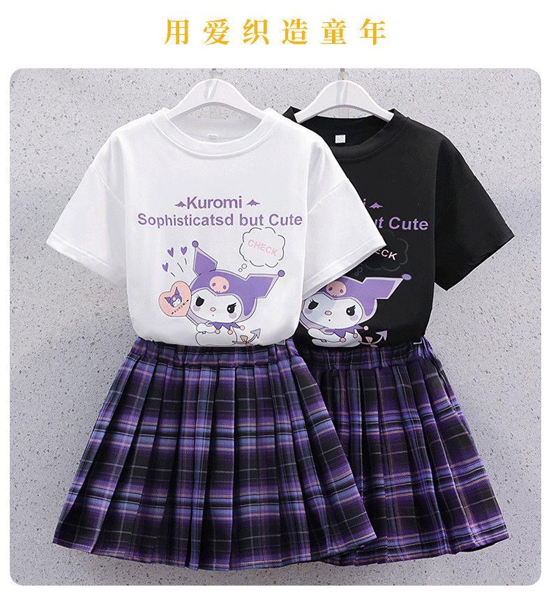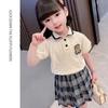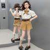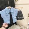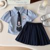 Traje de falda corta con camiseta estilo universitario para niñas, traje JK de verano para niñas, ropa para niños, falda plisada estilo occidental