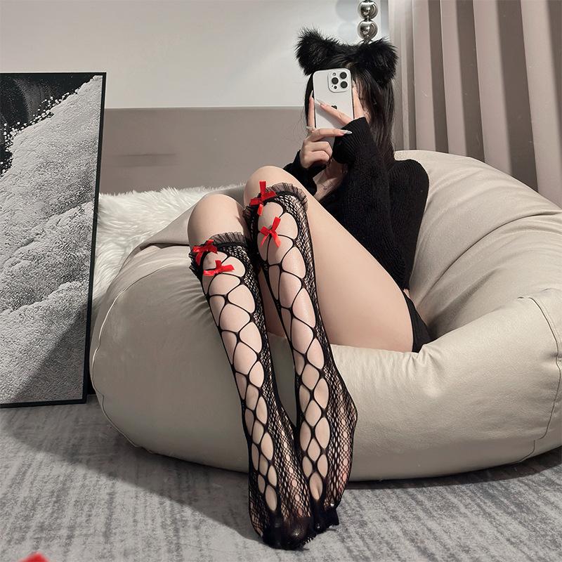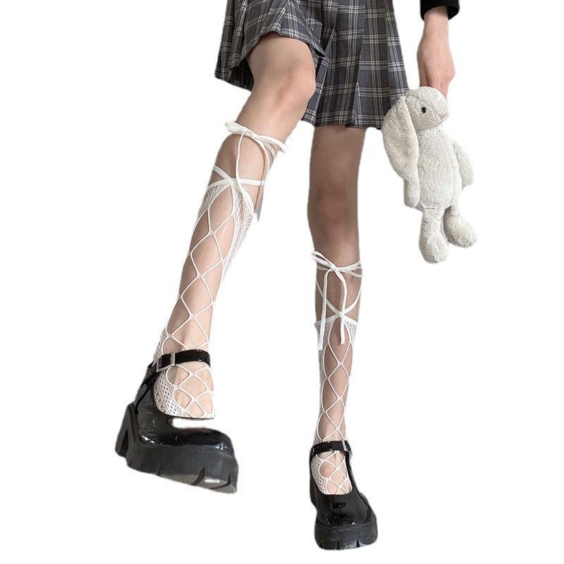 Calcetines Kawaii estilo Cyber Celebrity, medias de red con cinturón sexy para mujer, medias de seda ahuecadas, medias de red, medias con tiras JK, medias de verano