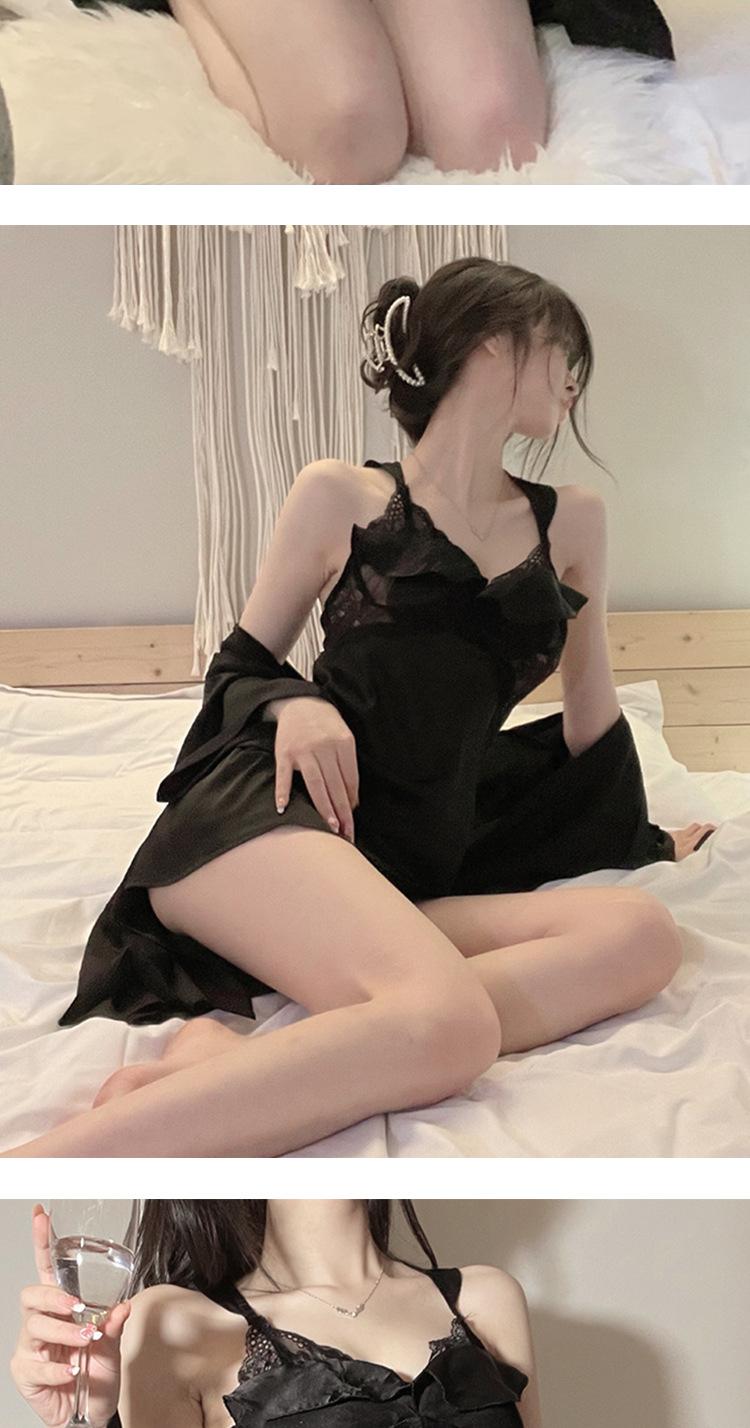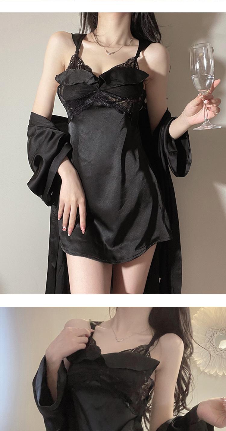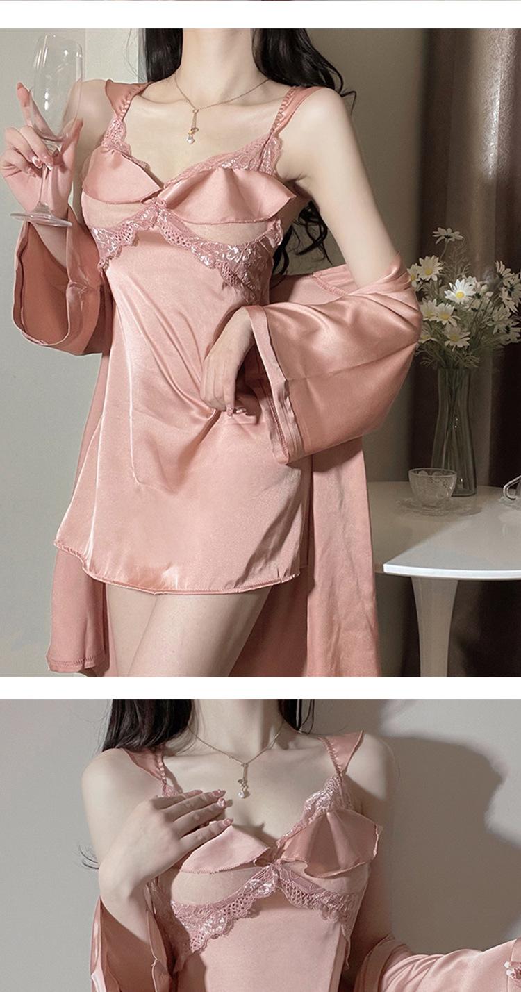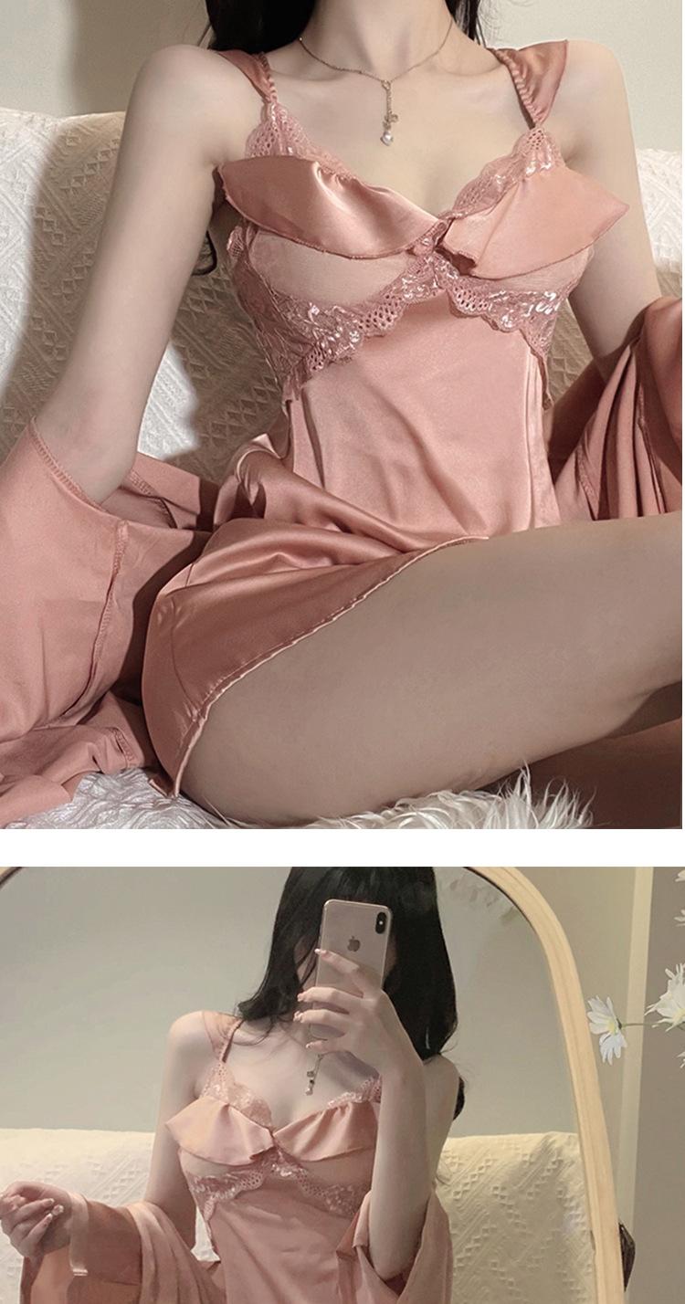 Pijama sexy de encaje de primavera y verano, camisón de seda helada con almohadilla para el pecho, camisón con tirantes, ropa divertida para el hogar, traje de dos piezas para el cabello