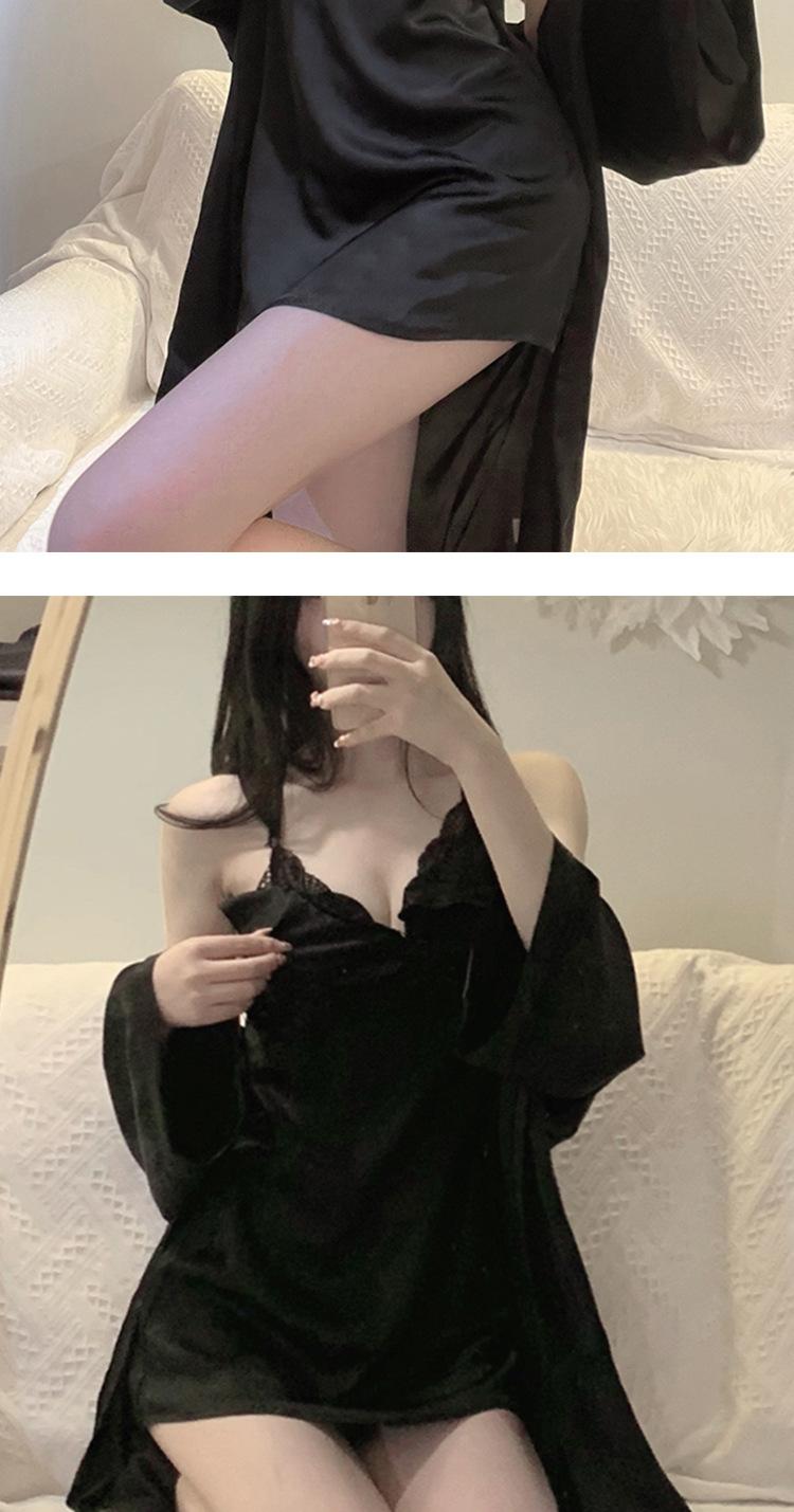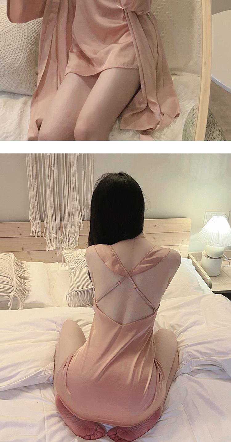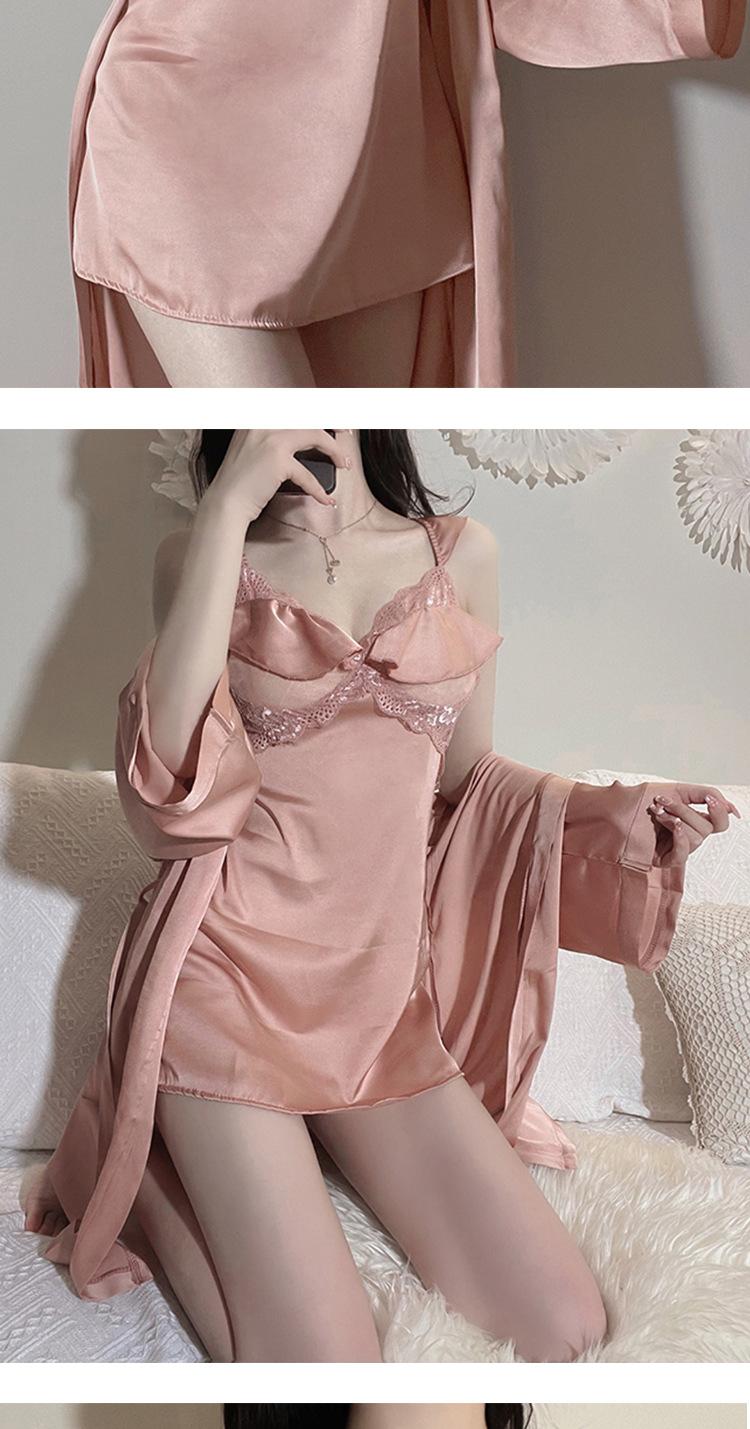 Pijama sexy de encaje de primavera y verano, camisón de seda helada con almohadilla para el pecho, camisón con tirantes, ropa divertida para el hogar, traje de dos piezas para el cabello