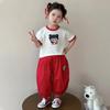 Traje de verano para niños, camiseta de algodón para niñas, pantalones cortos de manga corta de dos piezas, nueva ropa para niños europeos y americanos, una generación de cabello