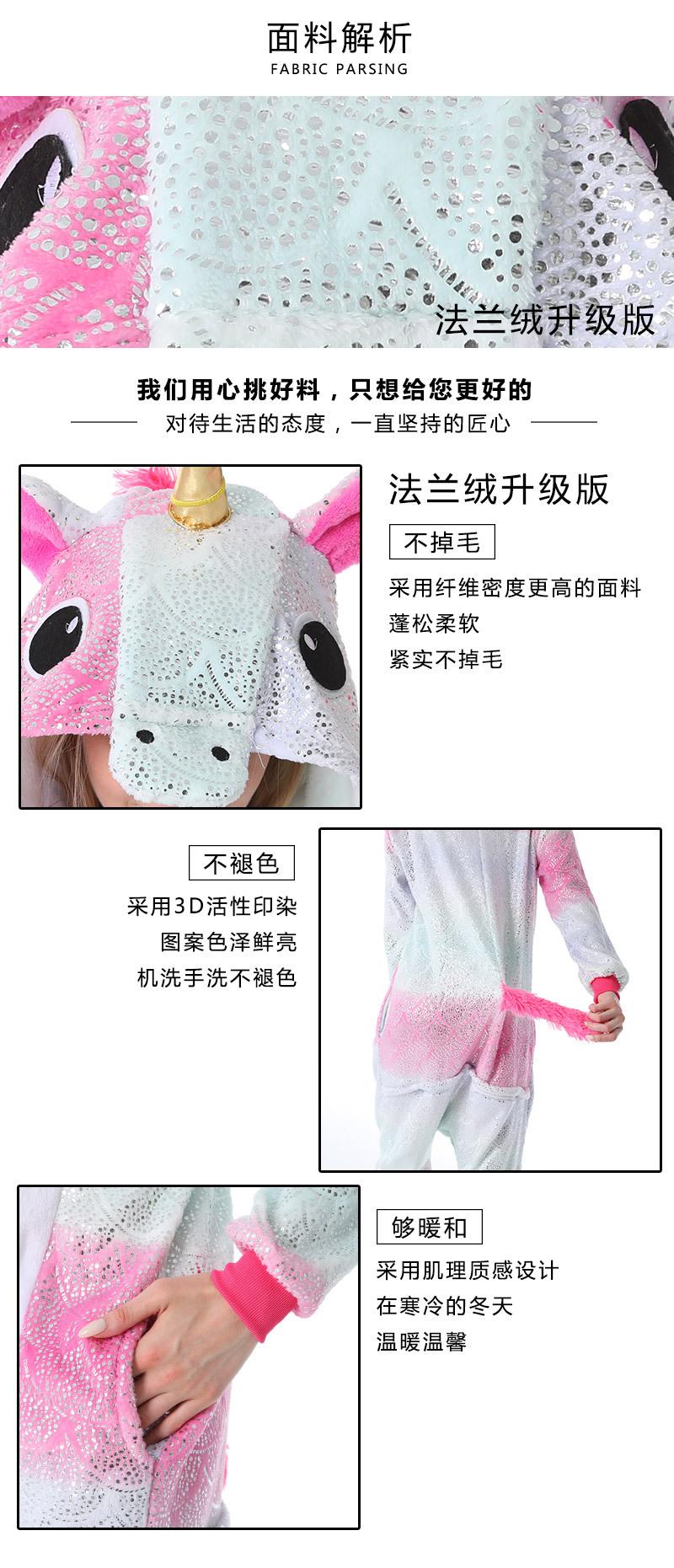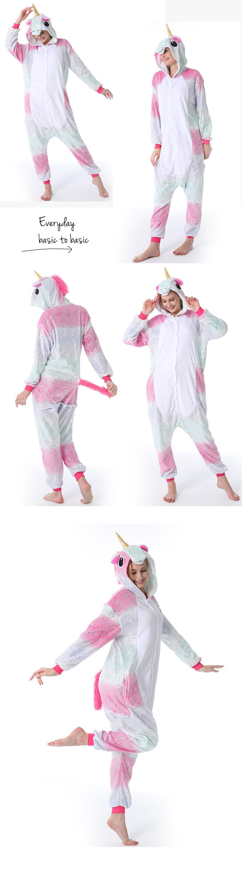 Pijama Onesie de Franela Nuevo Otoño e Invierno para Pareja de Animales de Dibujos Animados Pegaso Unicornio Adulto Kigurumi Lentejuelas