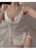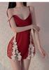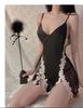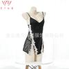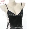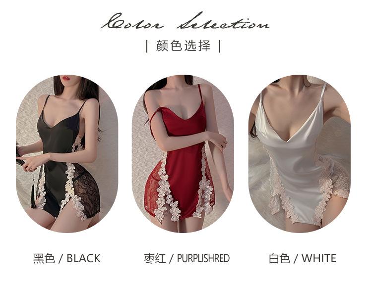 Ropa interior sexy de seda artificial Camisón sexy de tentación europeo y americano con encaje profundo en V y tirantes de perspectiva