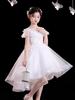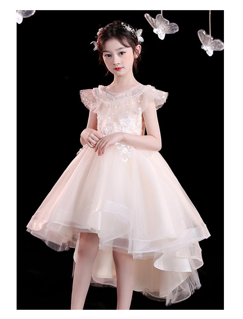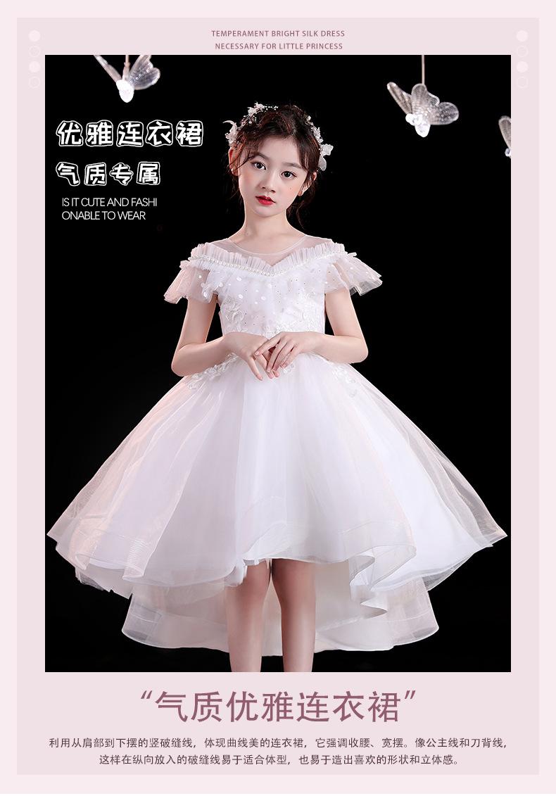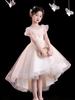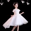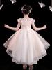 Vestido de princesa para niña pequeña, estilo Hepburn, para actuación, con cola de milano, vestido de noche de cola de hada con flores de alta gama.