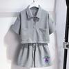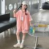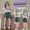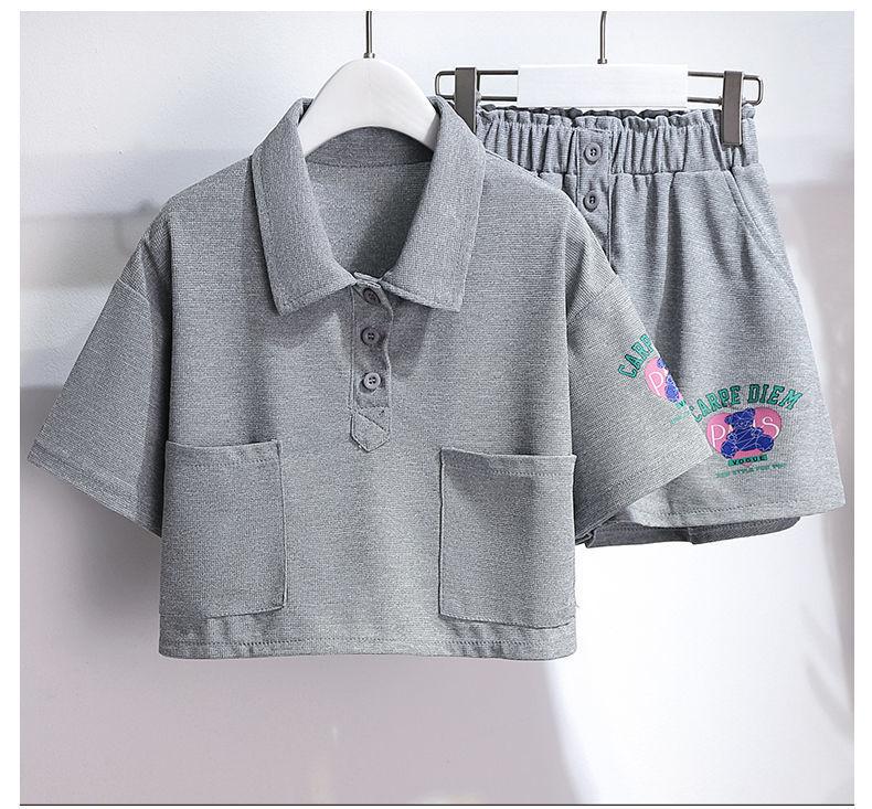 Conjunto de dos piezas de pantalones cortos de verano de manga corta casual para niñas, estilo nuevo, estilo occidental, celebridad de internet para niños, deportivo, para niños grandes