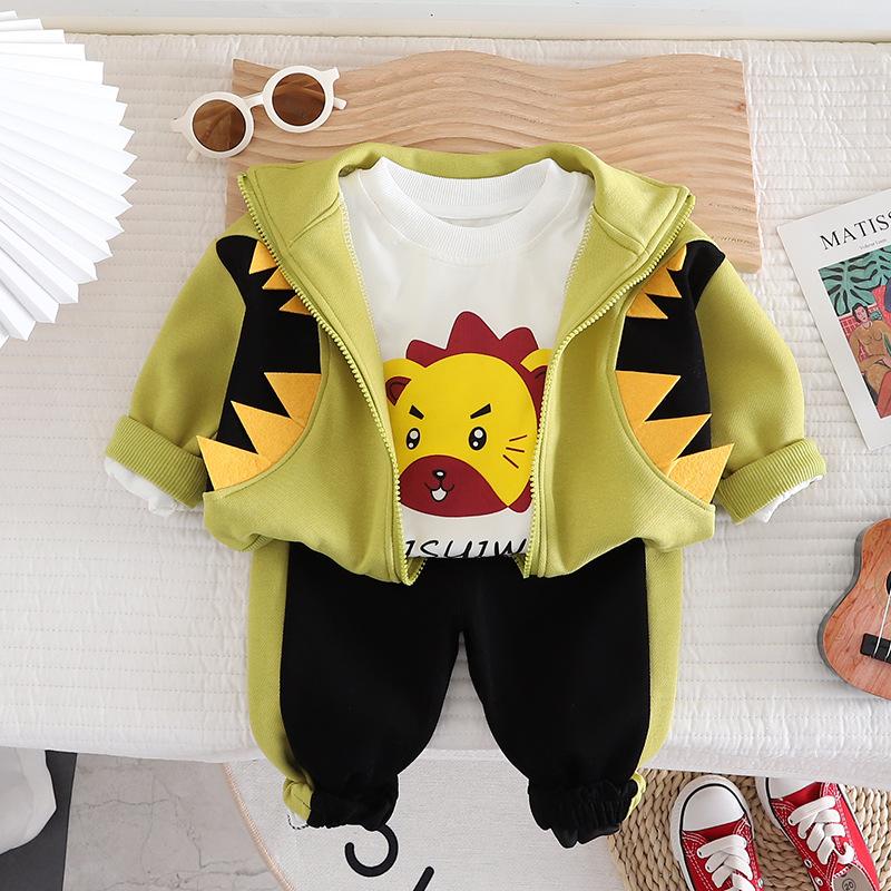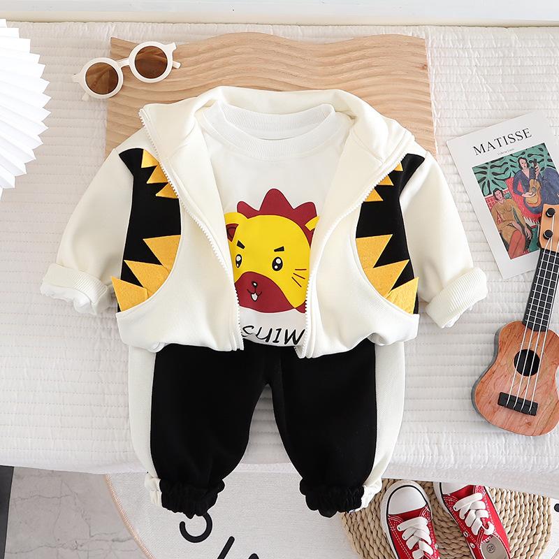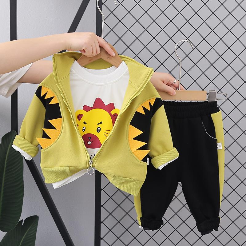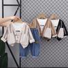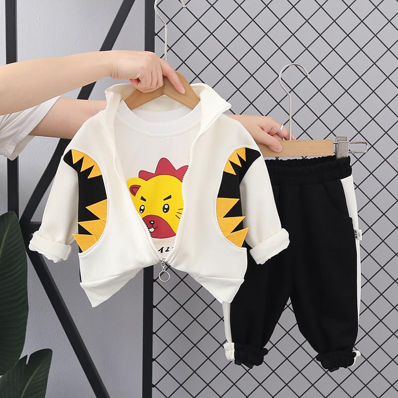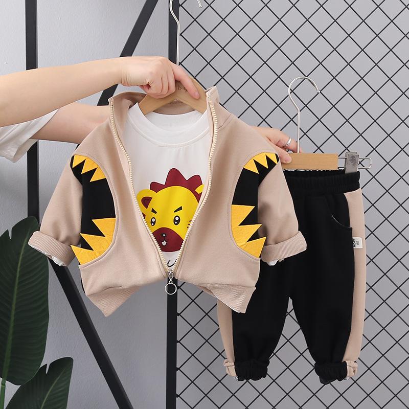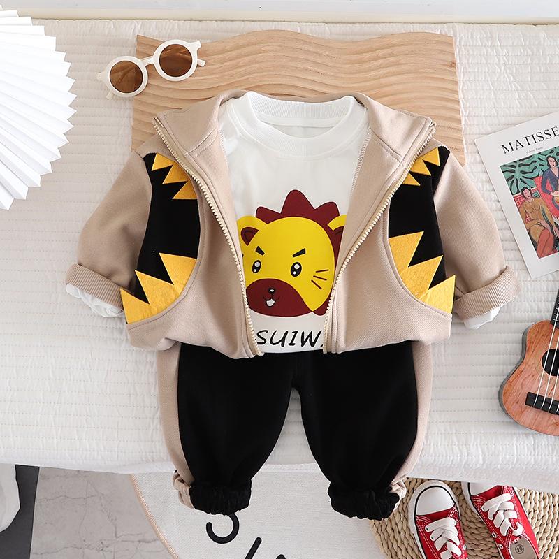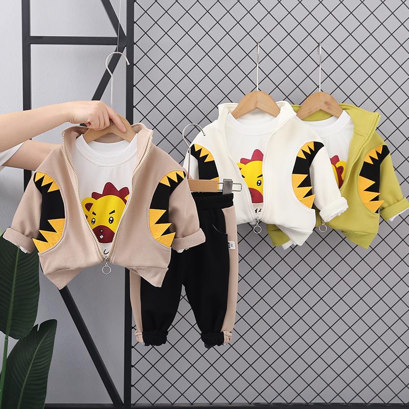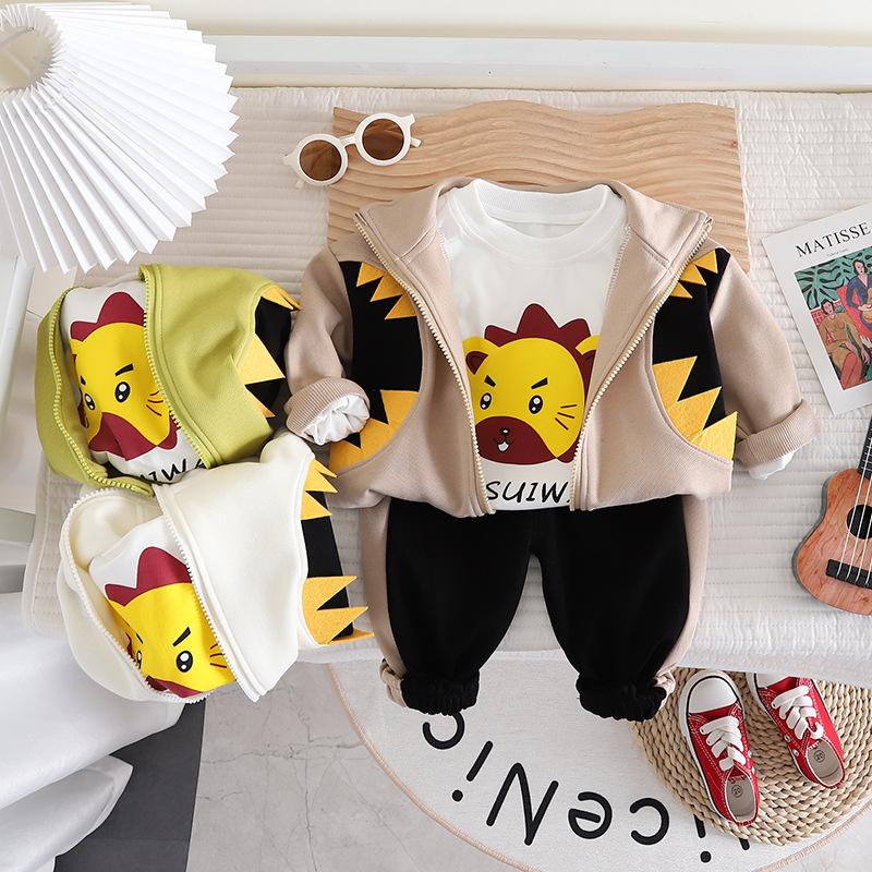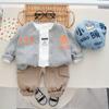 Traje de moda para niños primavera y otoño 2023, abrigo cárdigan de dibujos animados, traje de tres piezas de primavera para niños, ropa infantil guapa y moderna