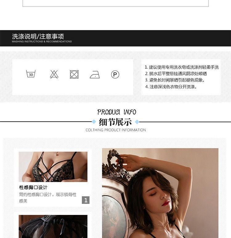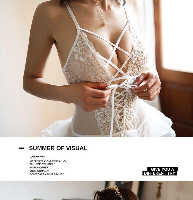 Traje de lencería sexy con tirantes finos y perspectiva de encaje, 850