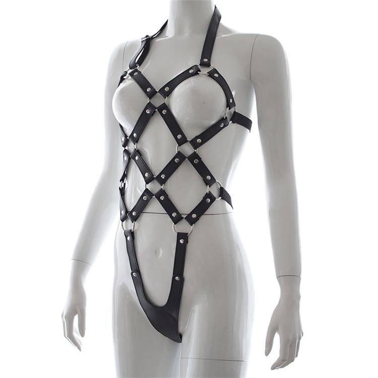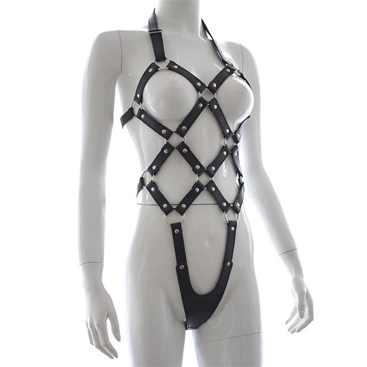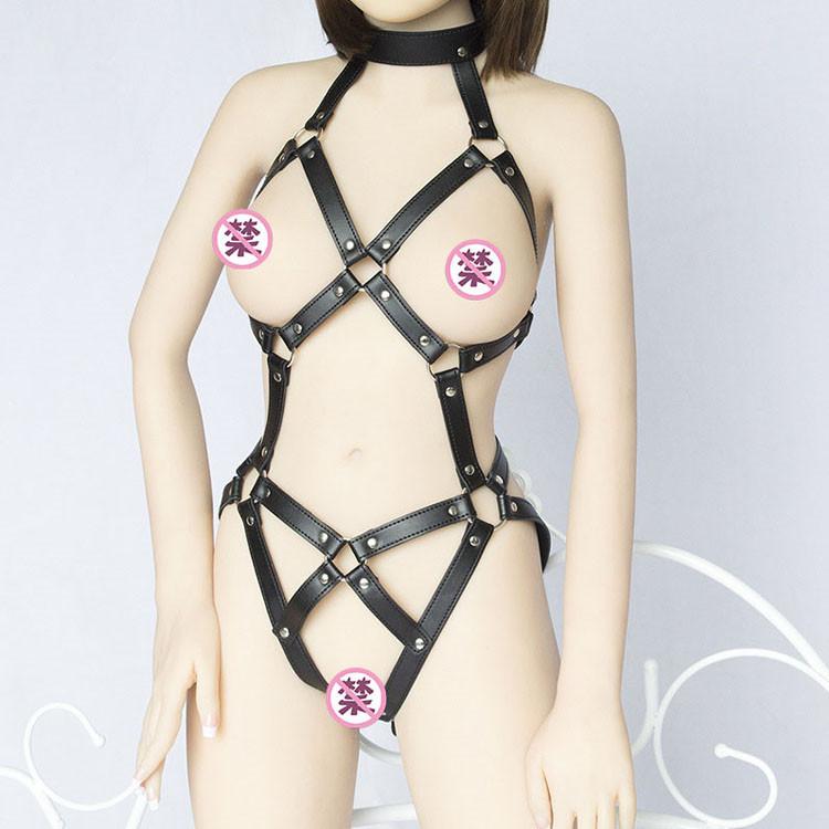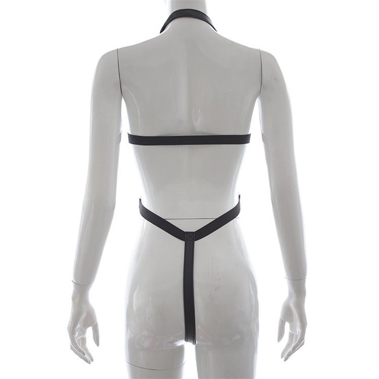 Lencería sexy uniforme tentación tres puntos entrepierna abierta expuesta unión pasión traje ajustado mono