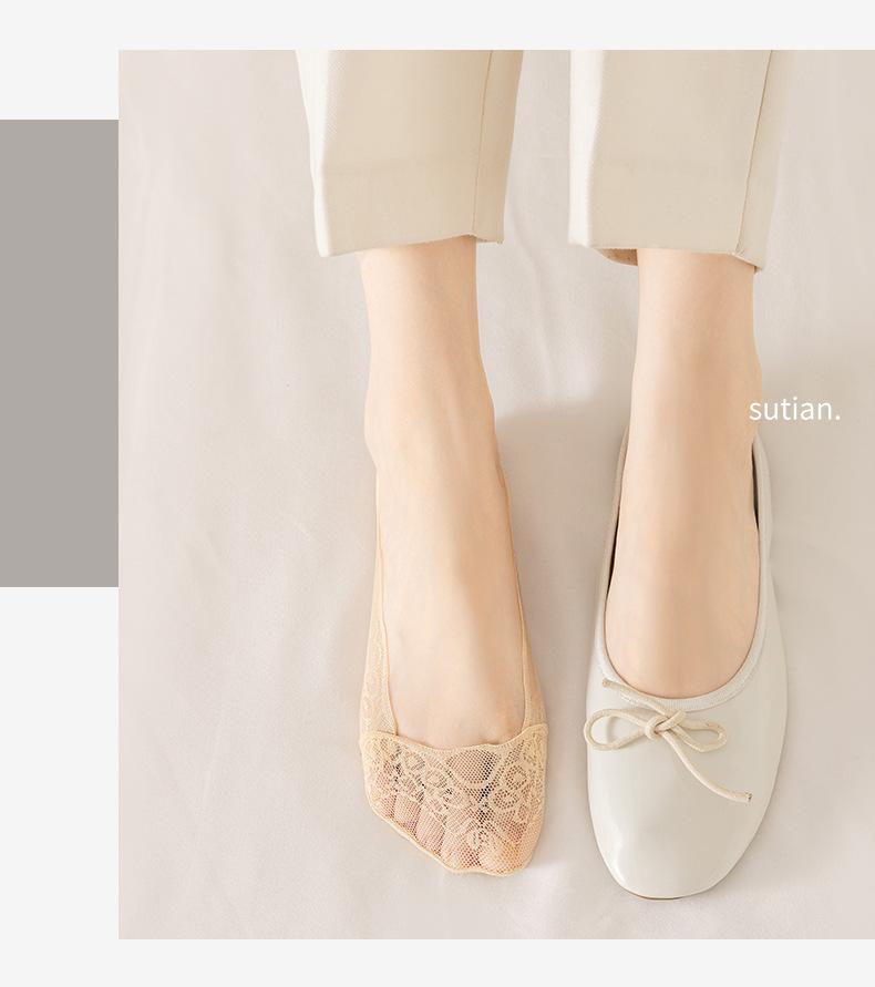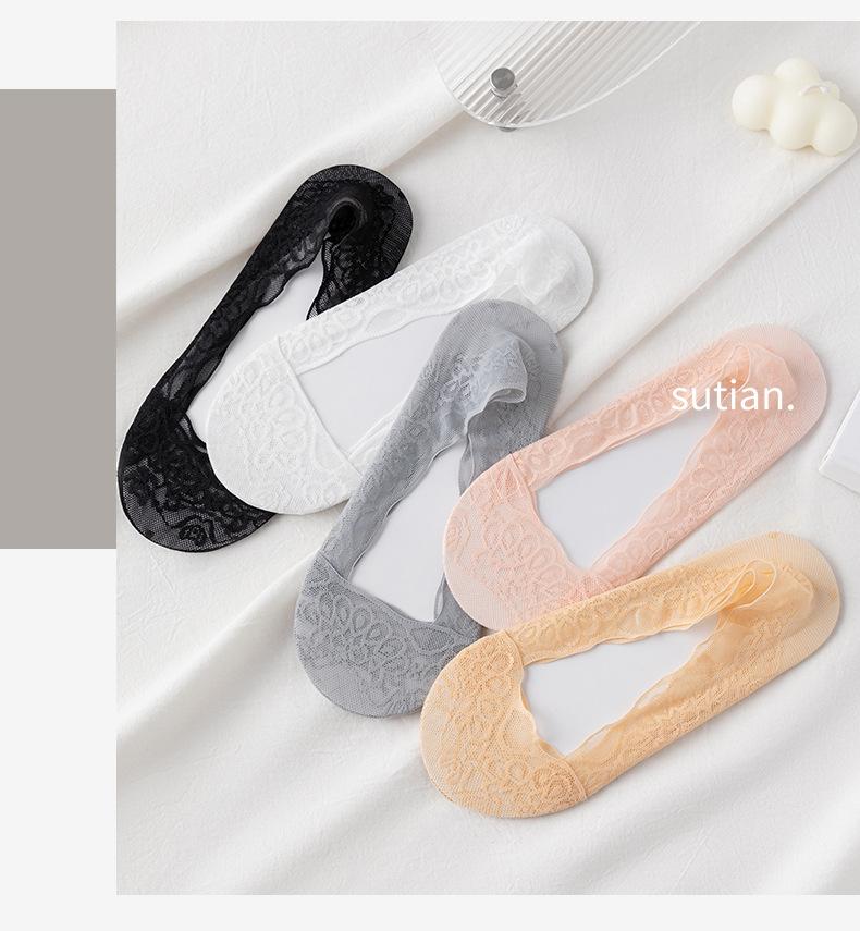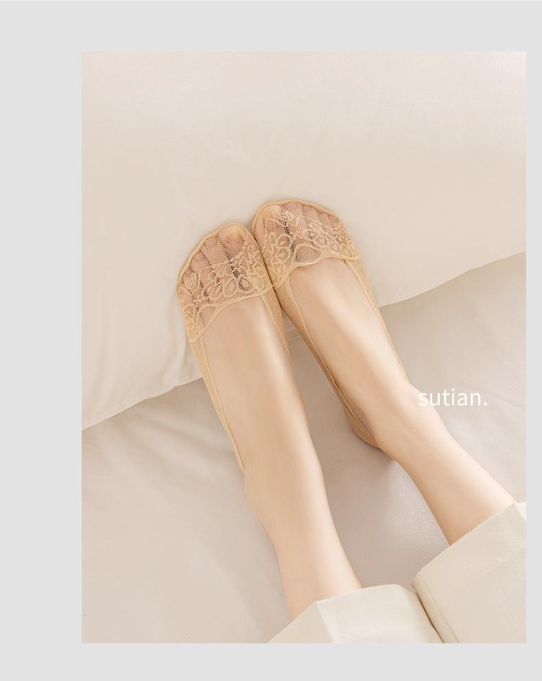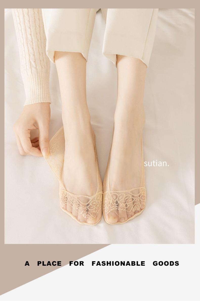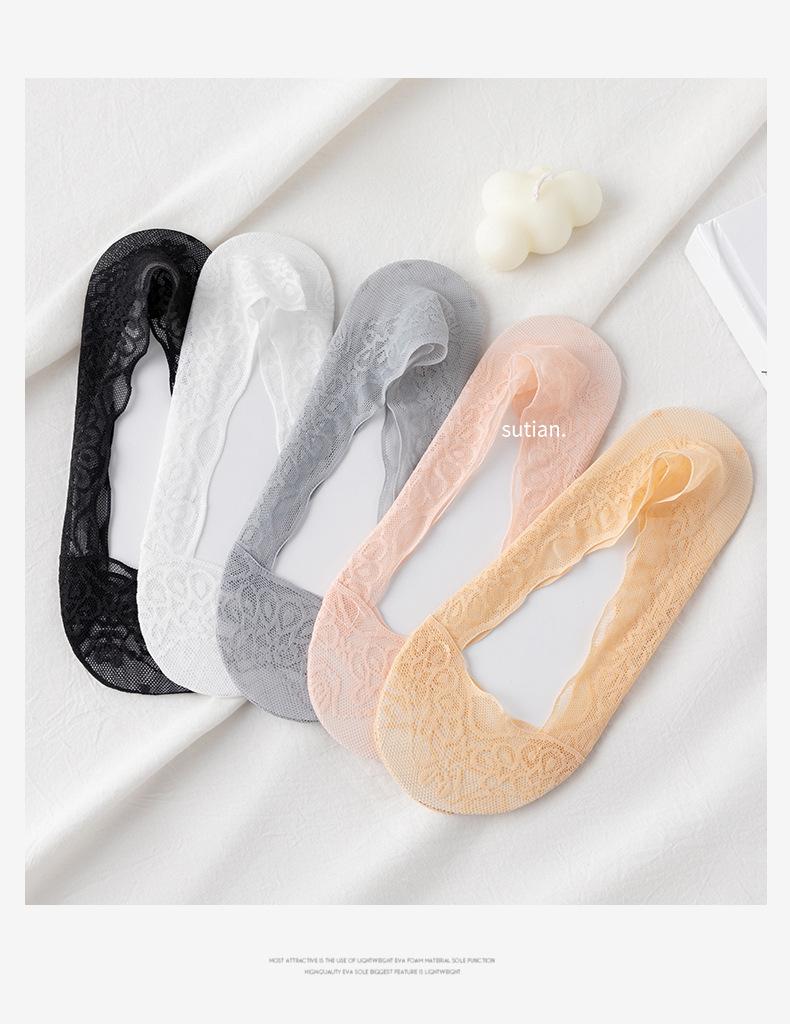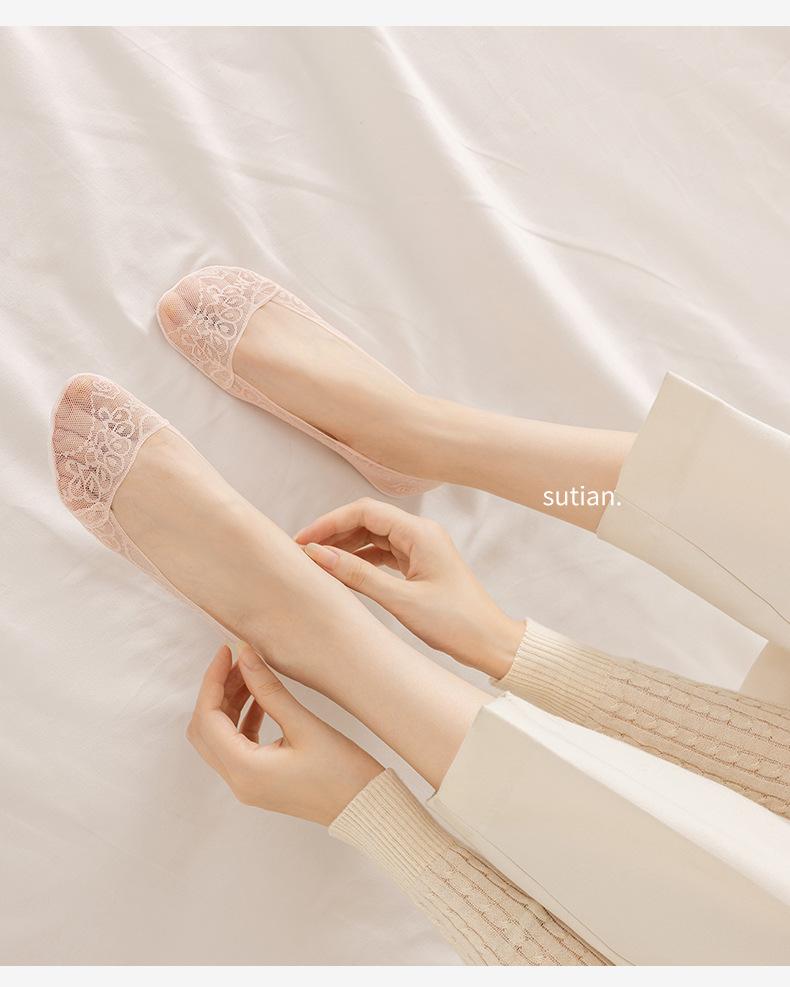 Calcetines tobilleros de encaje para mujer, calcetines finos invisibles de verano, silicona antideslizante, corte bajo, calcetines de piso, calcetines de primavera y otoño para mujer