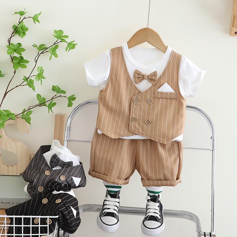 Conjunto de dos piezas de verano para niño, estilo occidental, para verano, bonito vestido infantil de manga corta para bebé de un año