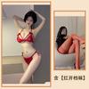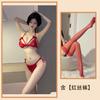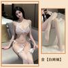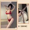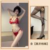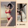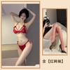 Ropa interior sexy de noche dorada, pijama de encaje con sujetador de tres puntos, ropa interior transparente, tentación, traje de cama puro y sexy