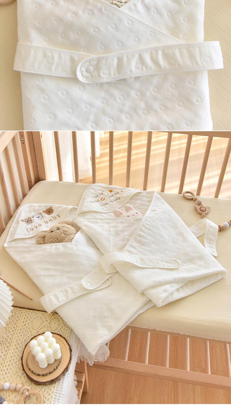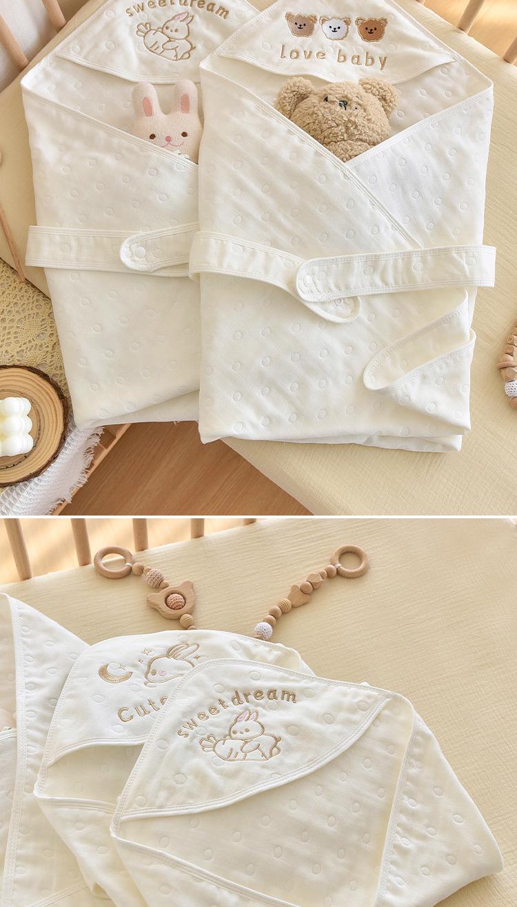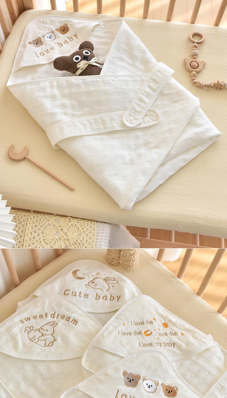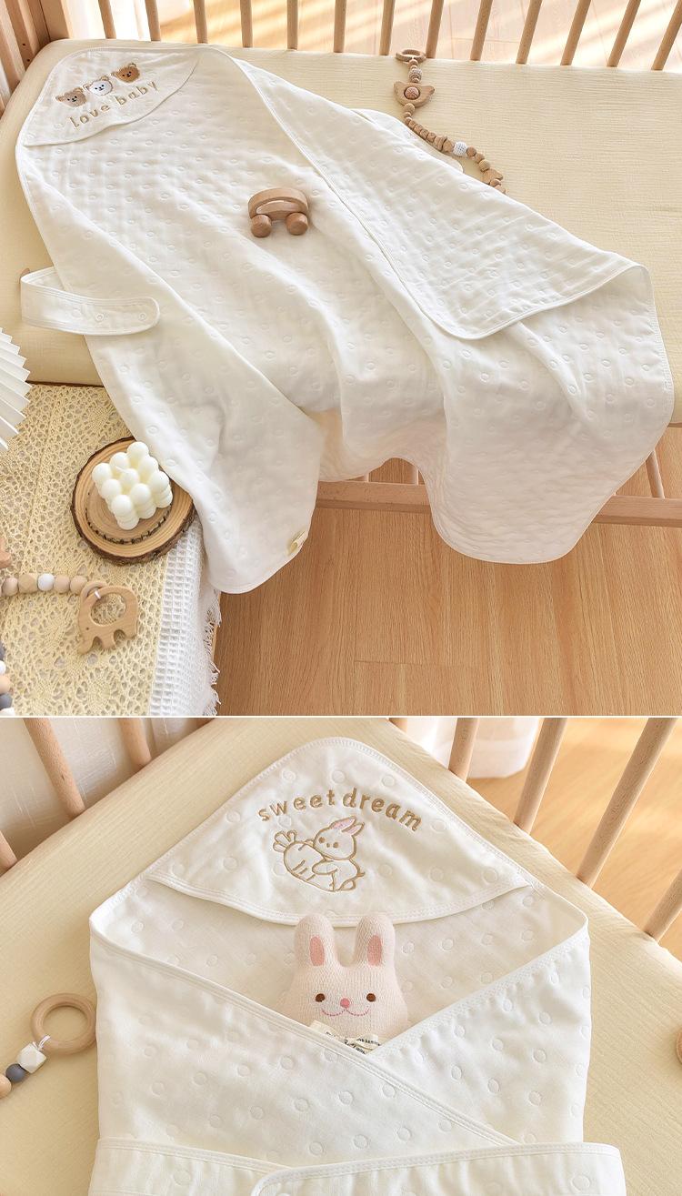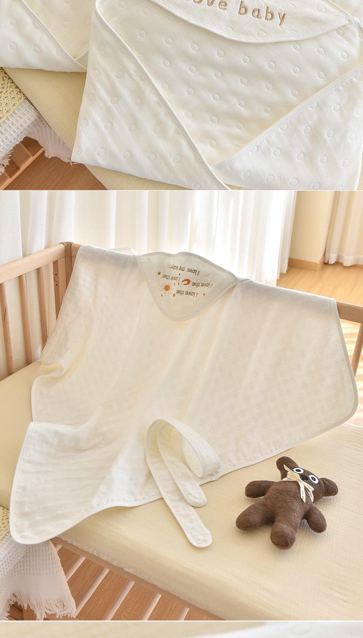 Manta de algodón bordada para bebé El diseño de sombrero triangular protege la fontanela del bebé y es resistente al viento y cálido Diseño jacquard de gasa de seis capas, suave y cómodo Las correas autocontenidas no son fáciles de soltar para evitar resfriarse Material de algodón, envoltura casual, bordado exquisito, calidad Clase A