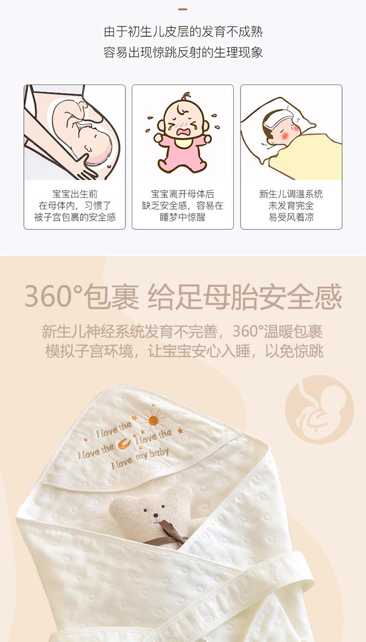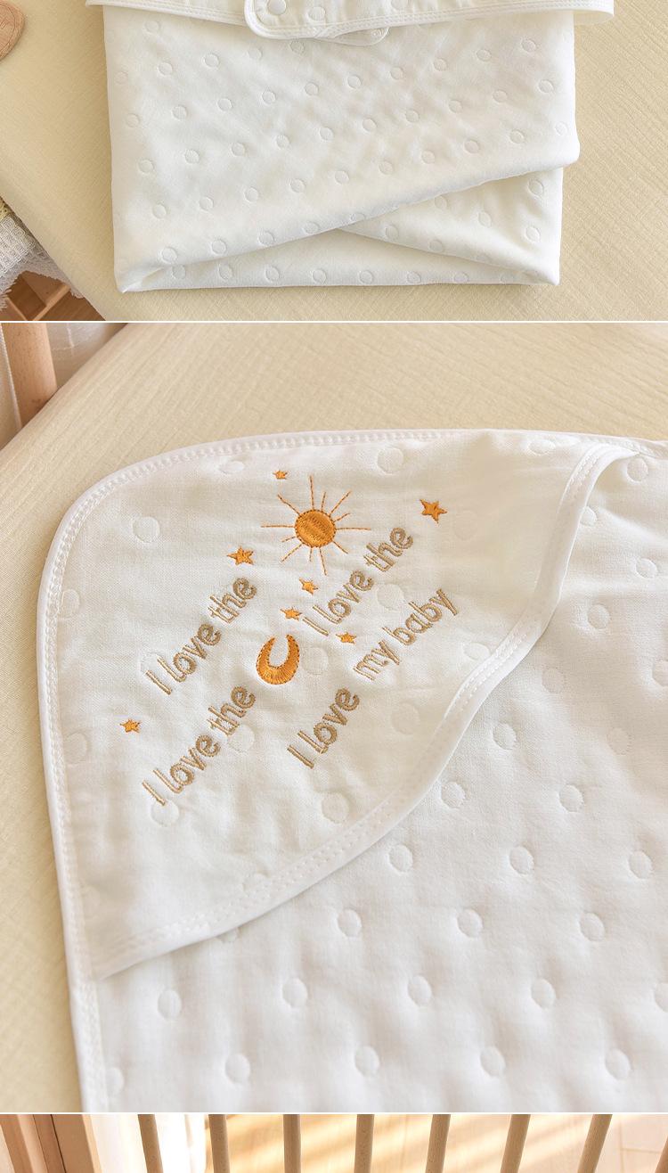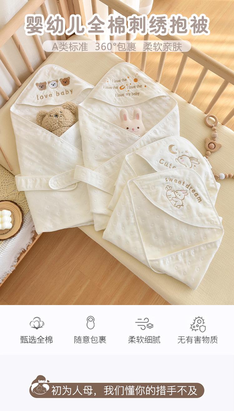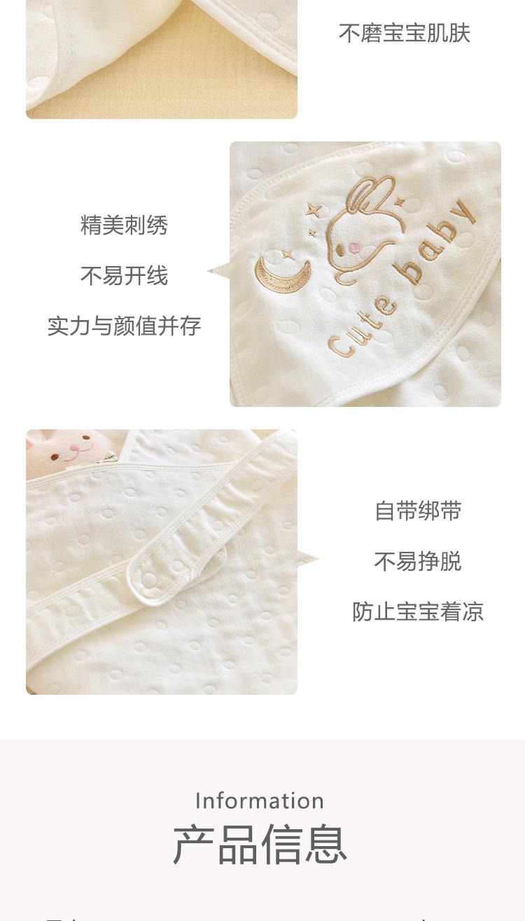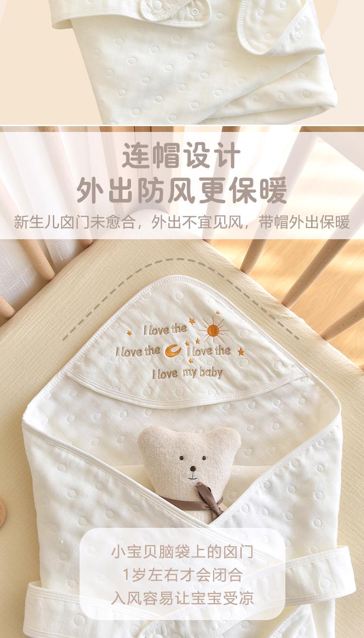 Manta de algodón bordada para bebé El diseño de sombrero triangular protege la fontanela del bebé y es resistente al viento y cálido Diseño jacquard de gasa de seis capas, suave y cómodo Las correas autocontenidas no son fáciles de soltar para evitar resfriarse Material de algodón, envoltura casual, bordado exquisito, calidad Clase A