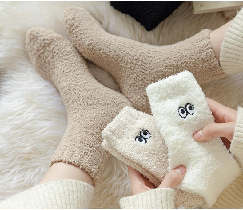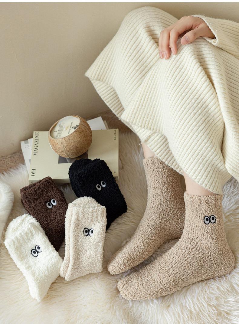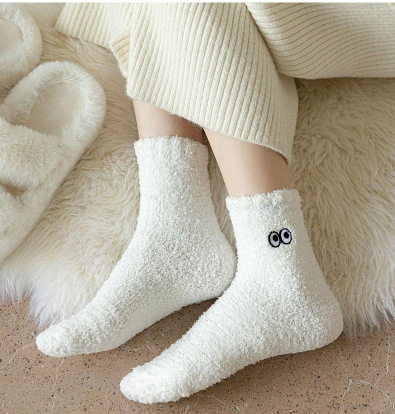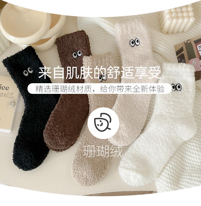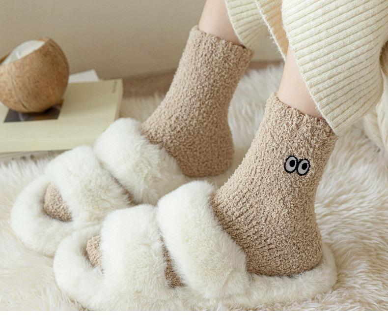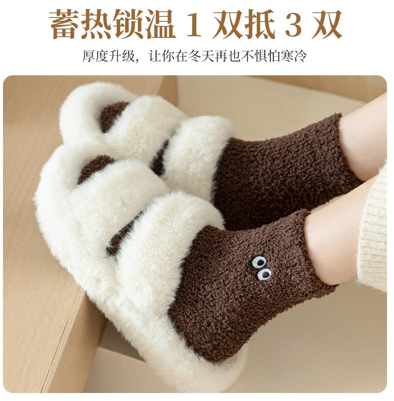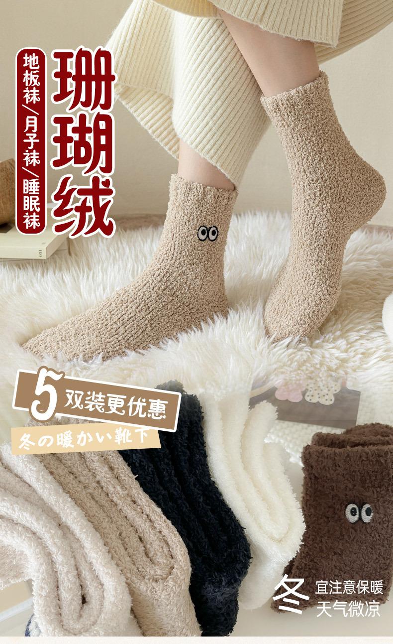 Calcetines de contención de vellón coral que no sueltan pelusa para mujer posparto otoño e invierno calcetines gruesos de toalla con forro polar calcetines para dormir calcetines cálidos para el suelo