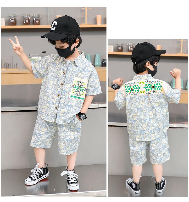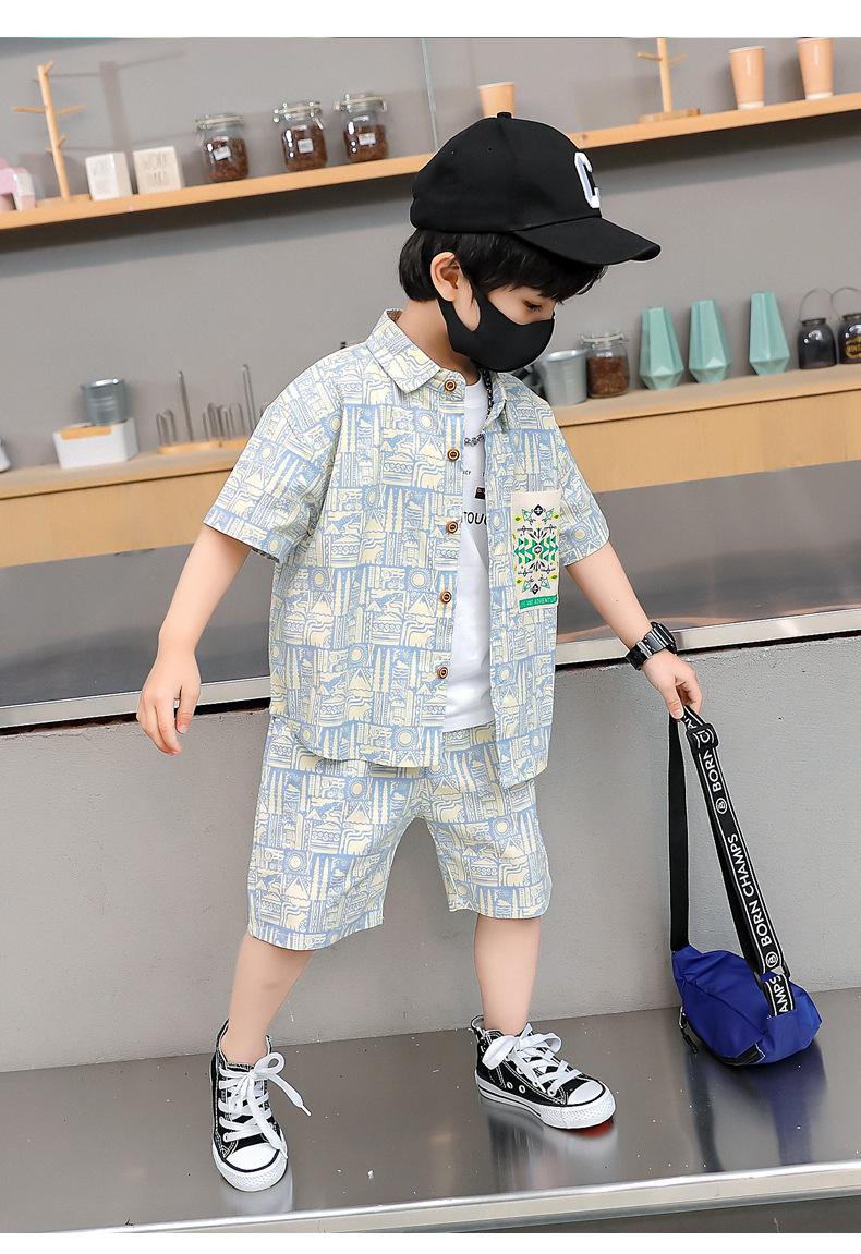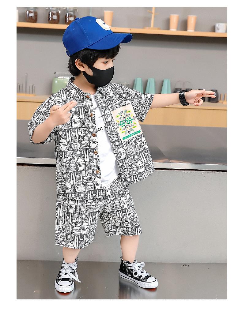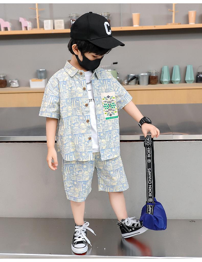 Traje de Verano para Niño Traje Guapo para Niños Delgado 2025 Nuevo Estilo de Verano para Niños Calle Bebé Casual Manga Corta