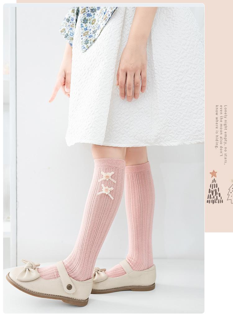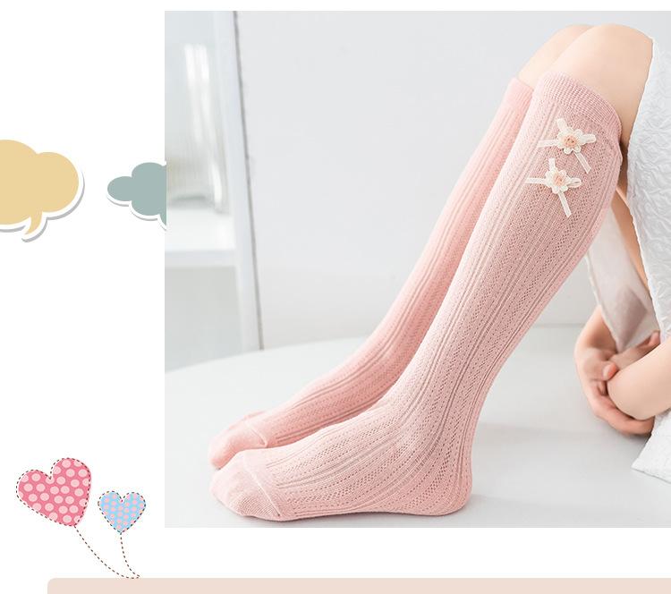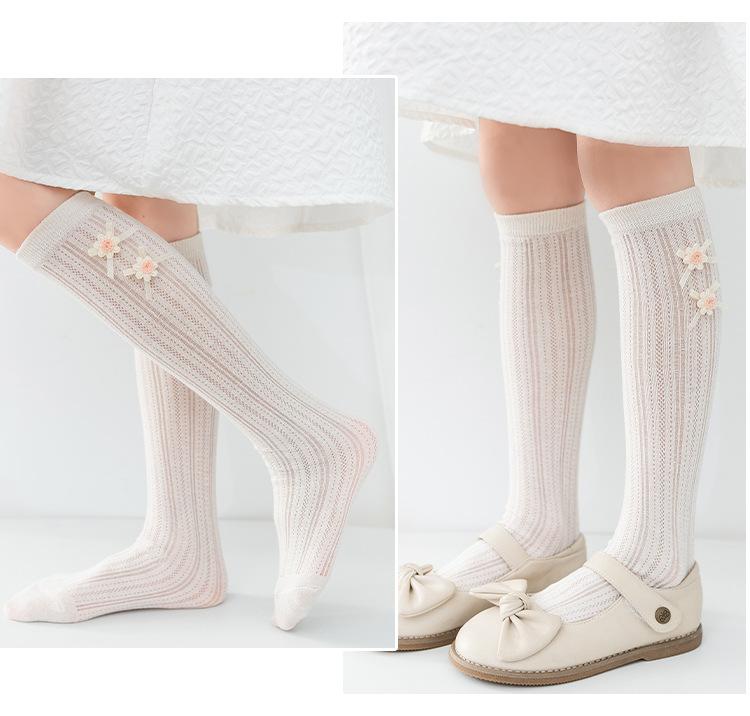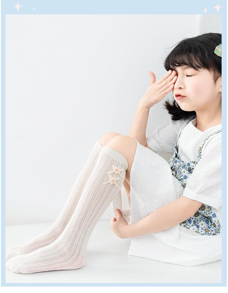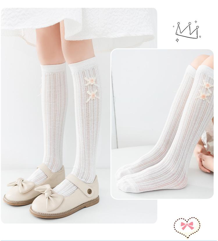 Primavera y Verano Nuevos Calcetines de Algodón de Malla de Girasol para Niños Calcetines de Media Caña Calcetines Rectos de Color Puro para Niñas Calcetines Largos de Caña Alta