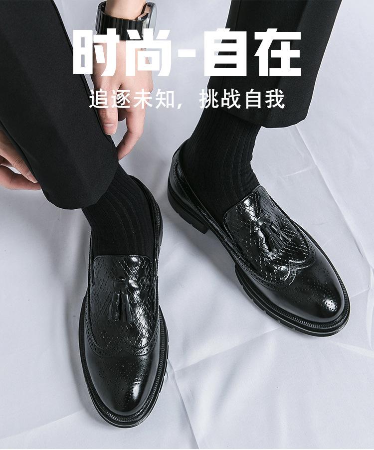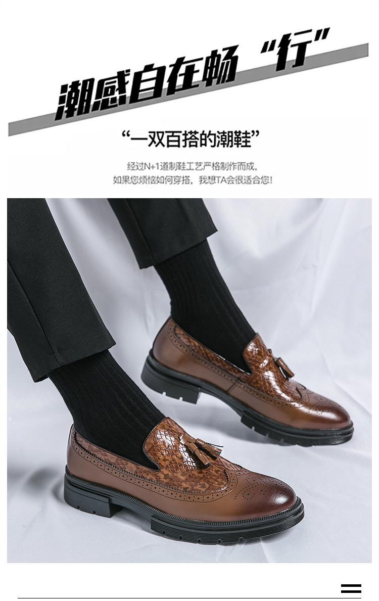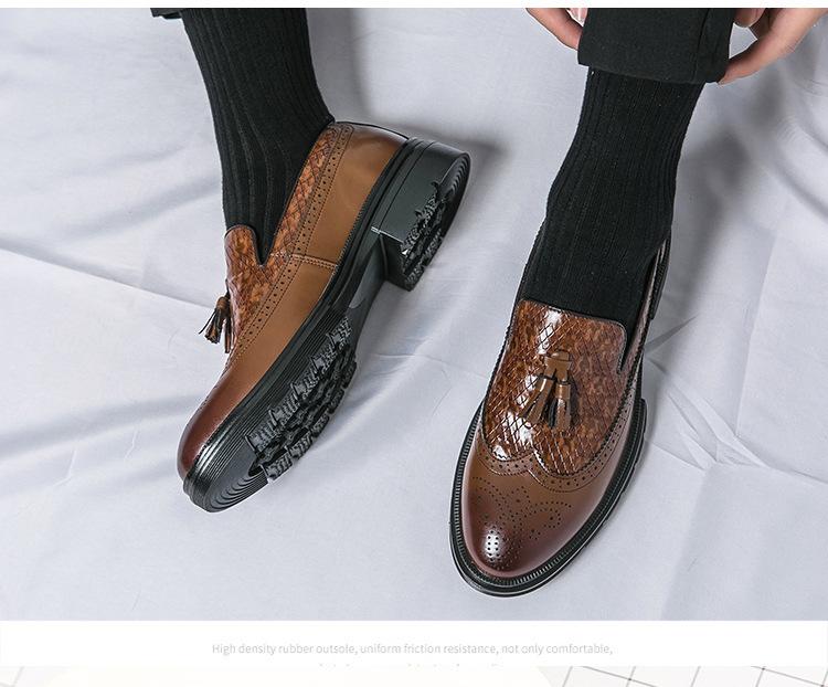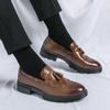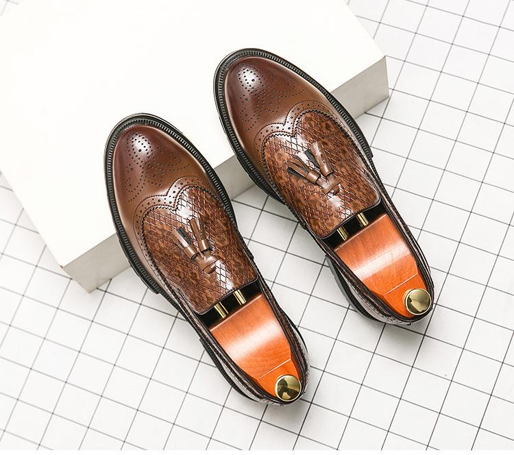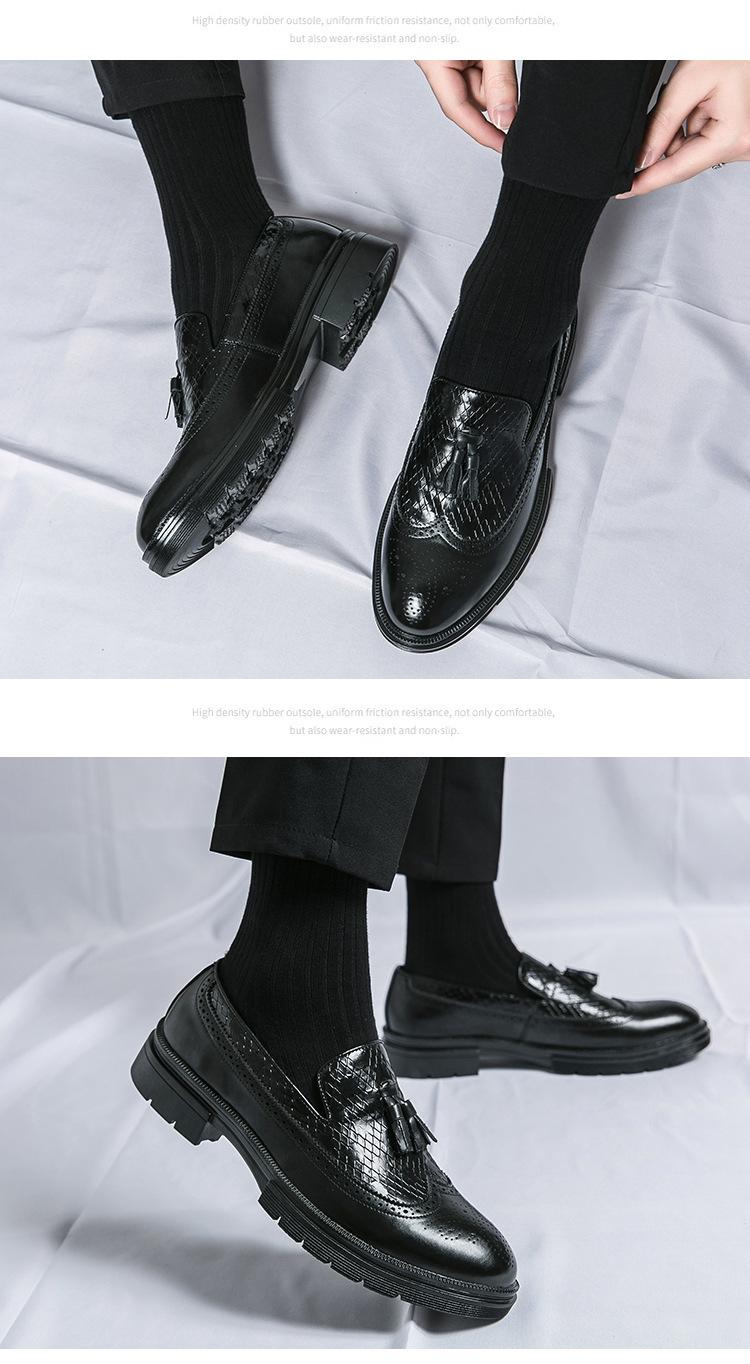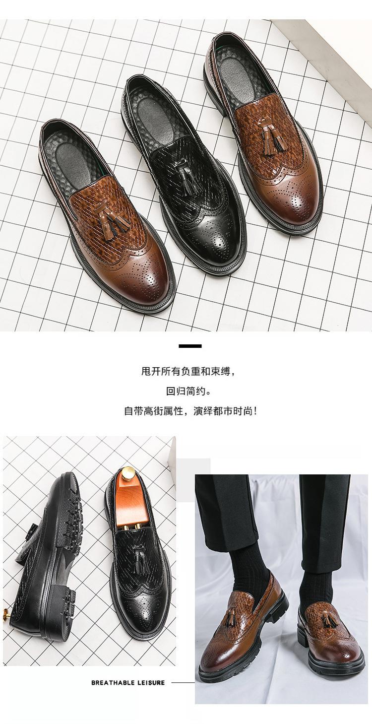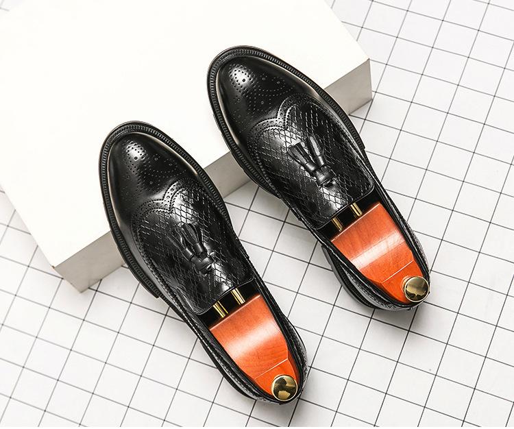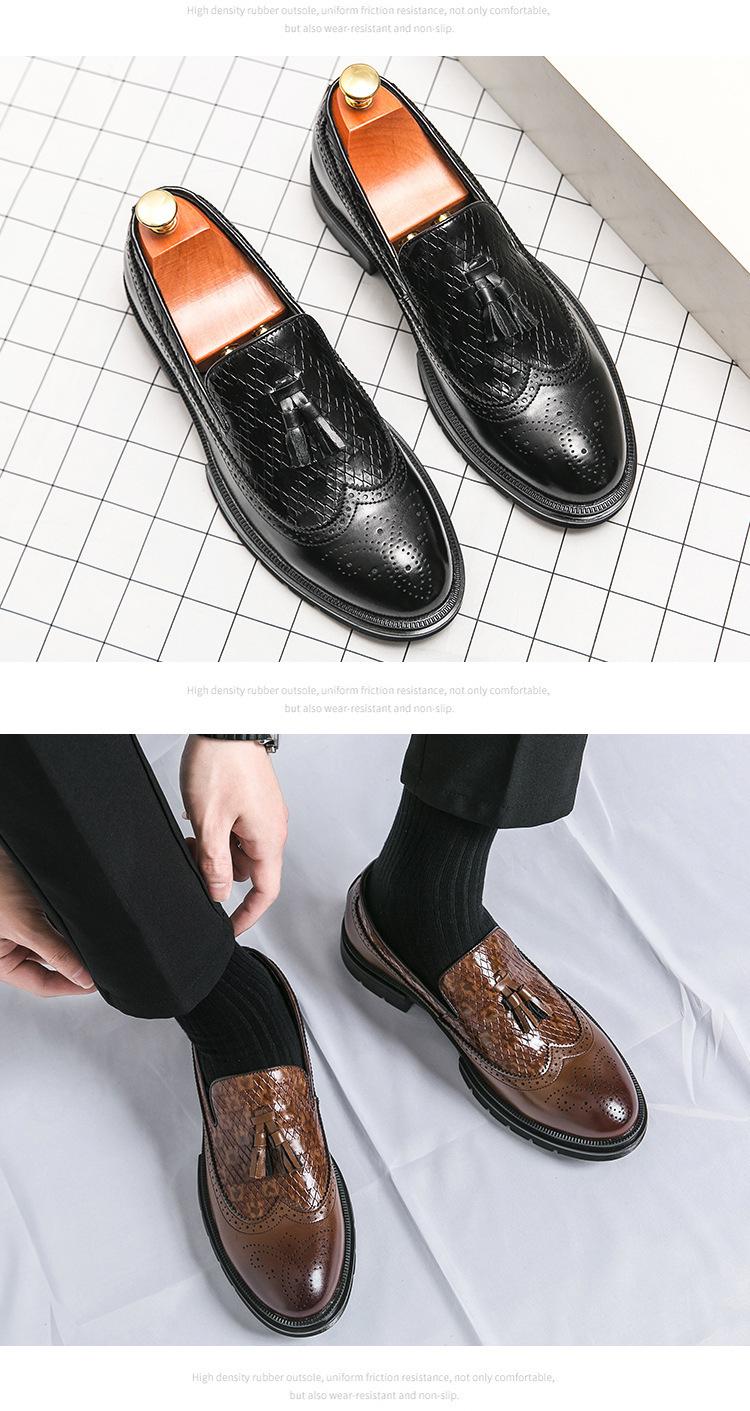 Zapatos de Hombre de Talla Grande Transfronterizos Punta Afilada Formal de Negocios Zapatos de Cuero Casuales Brogue Grabados Zapatos de Cuero con Borlas Slip-On para Hombre