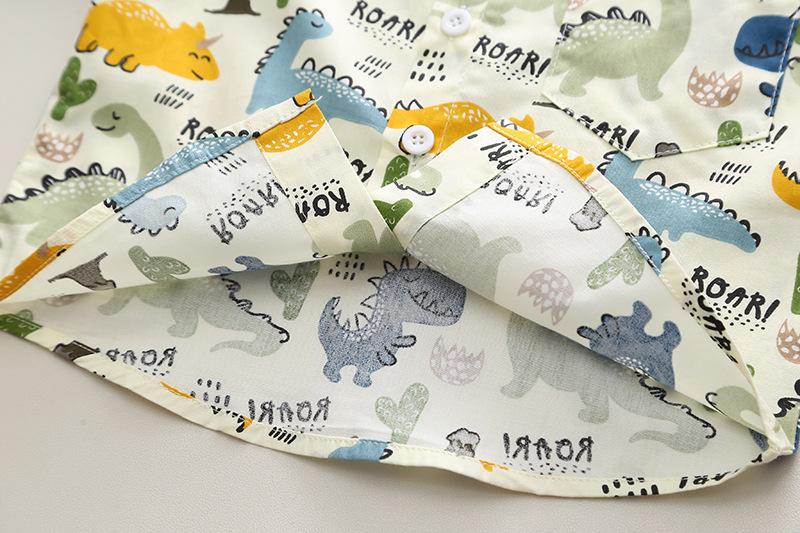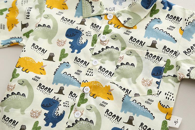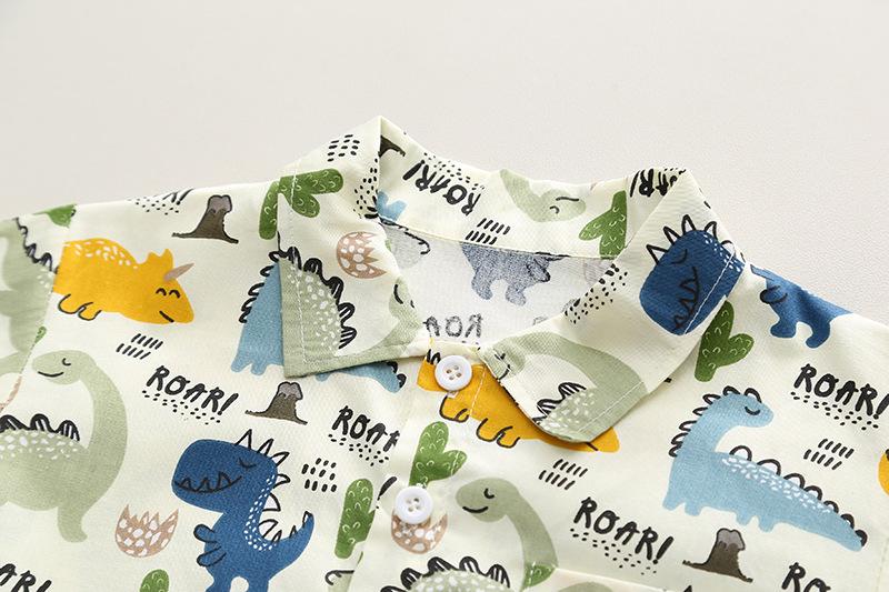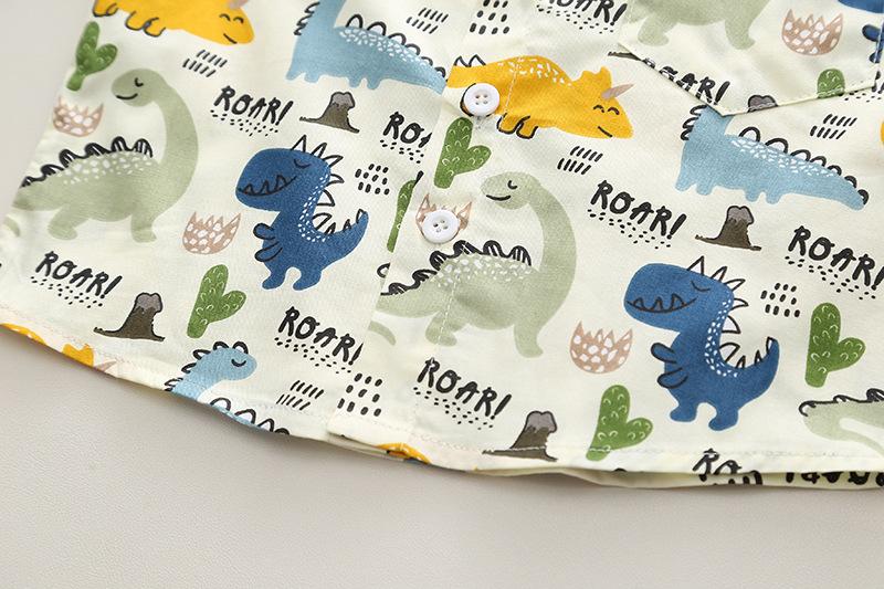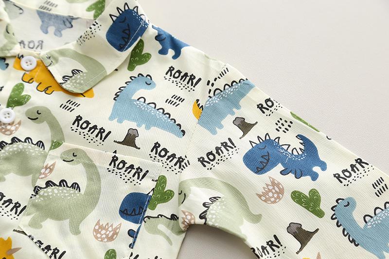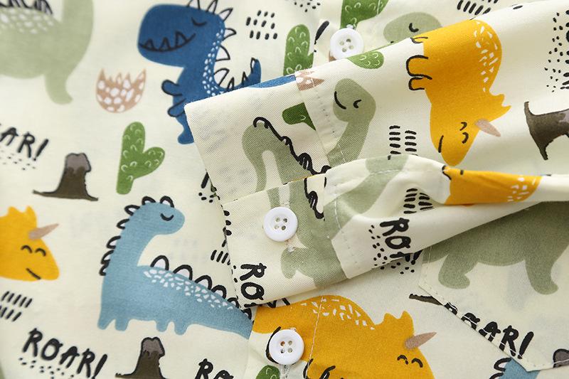 Off-white dinosaur shirt long sleeve two-piece set, Blue Dinosaur Shirt Long Sleeve Two-Piece Set