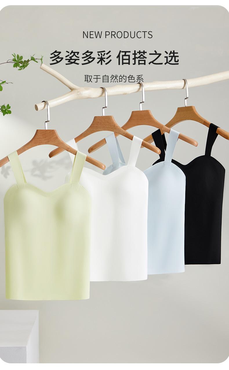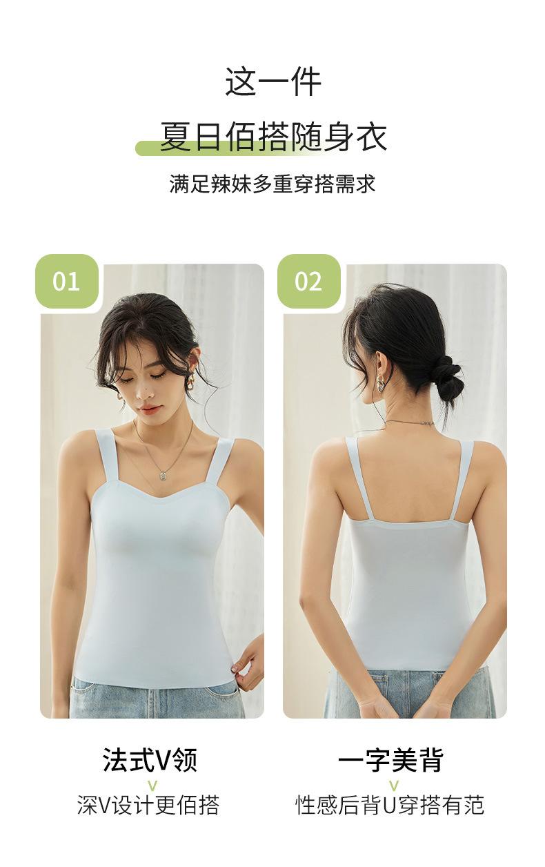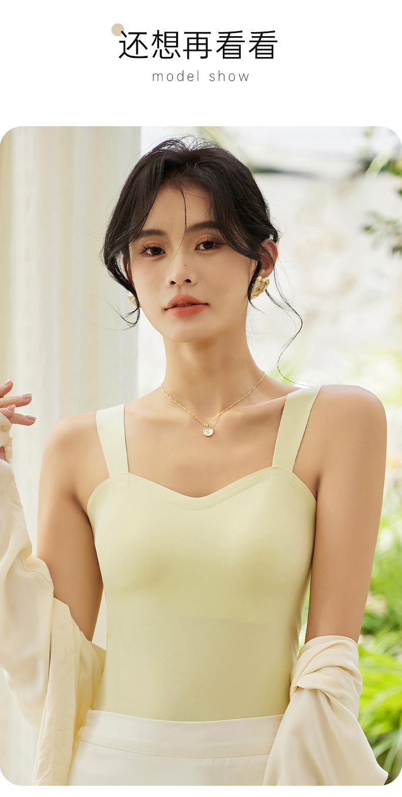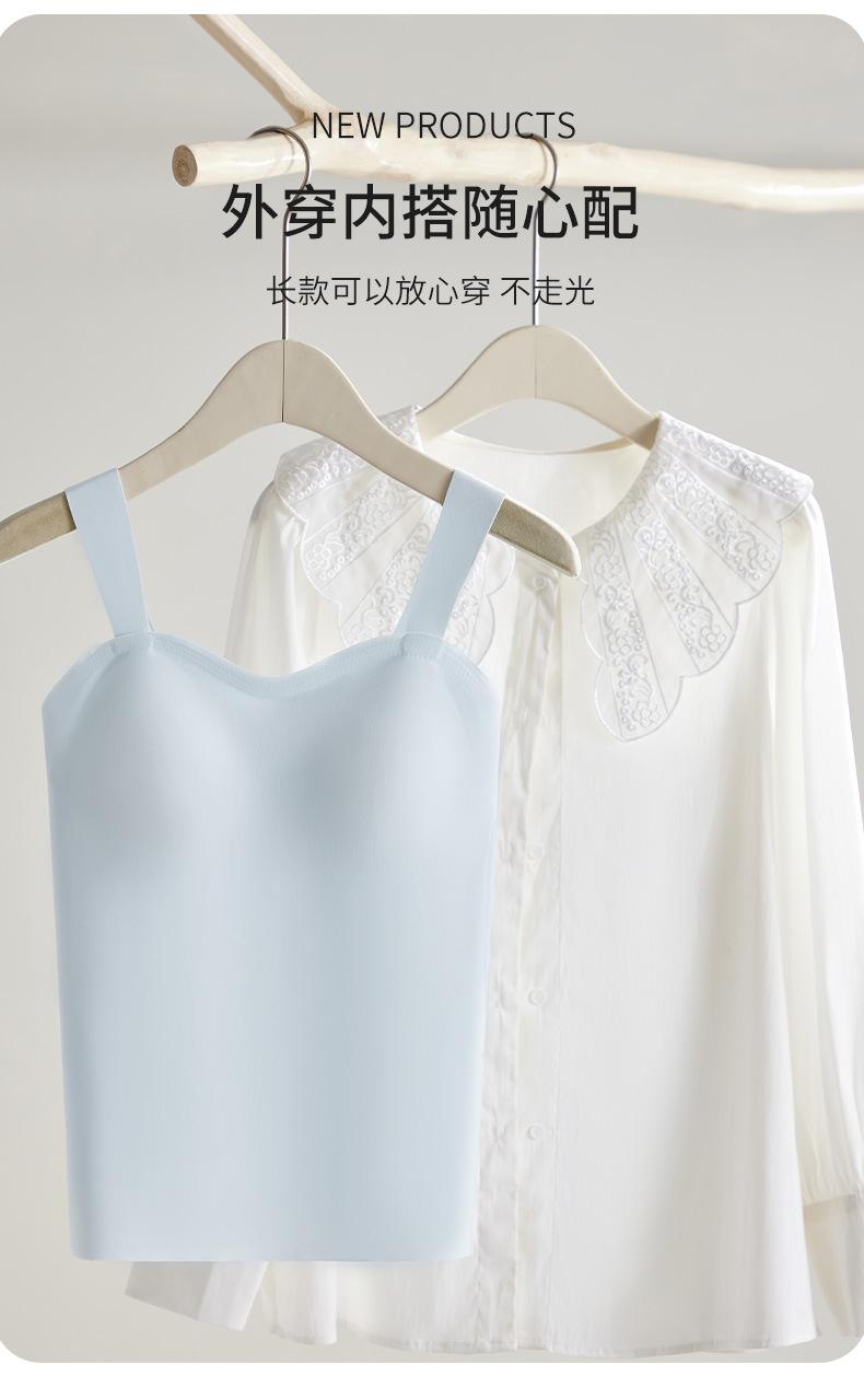 Camisola interior para mujer con almohadilla para el pecho integrada, hermosa espalda blanca, ropa interior larga, base fina de verano, prenda exterior superior