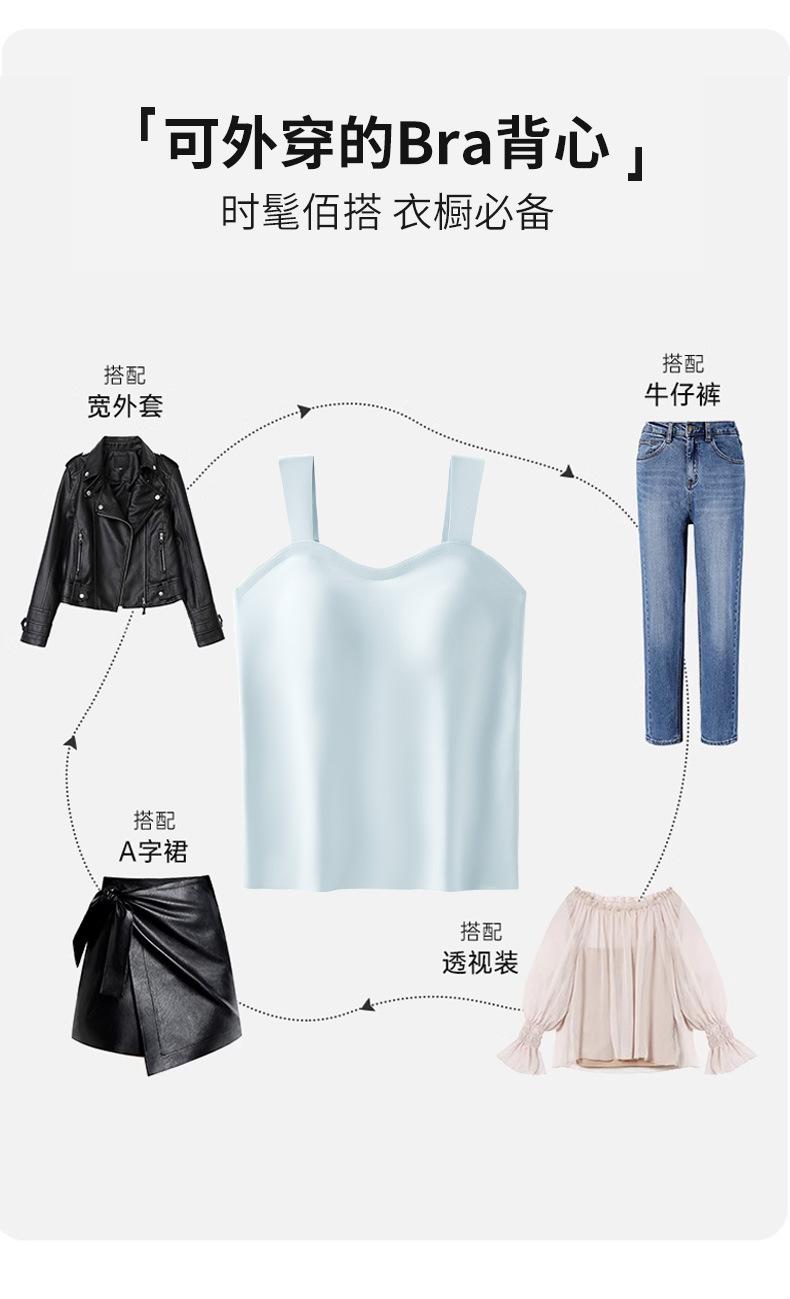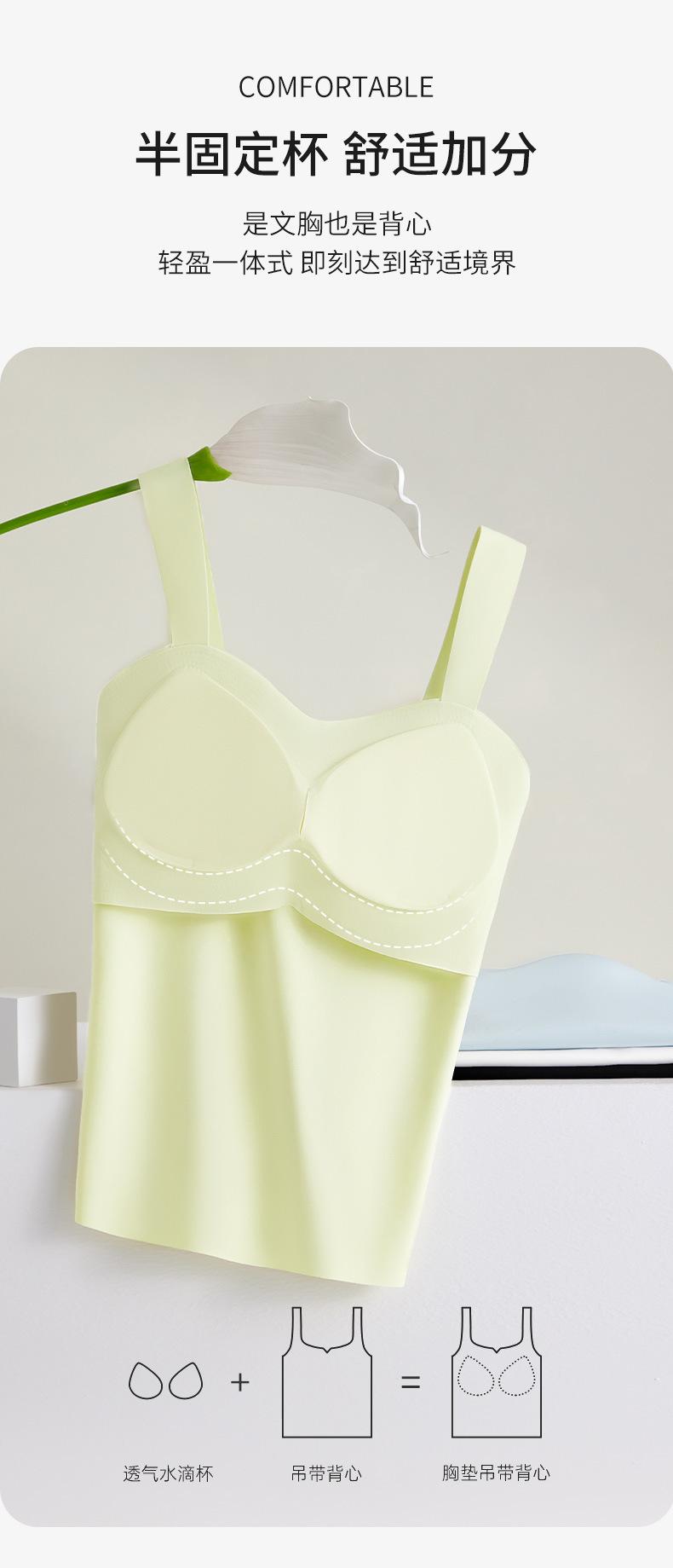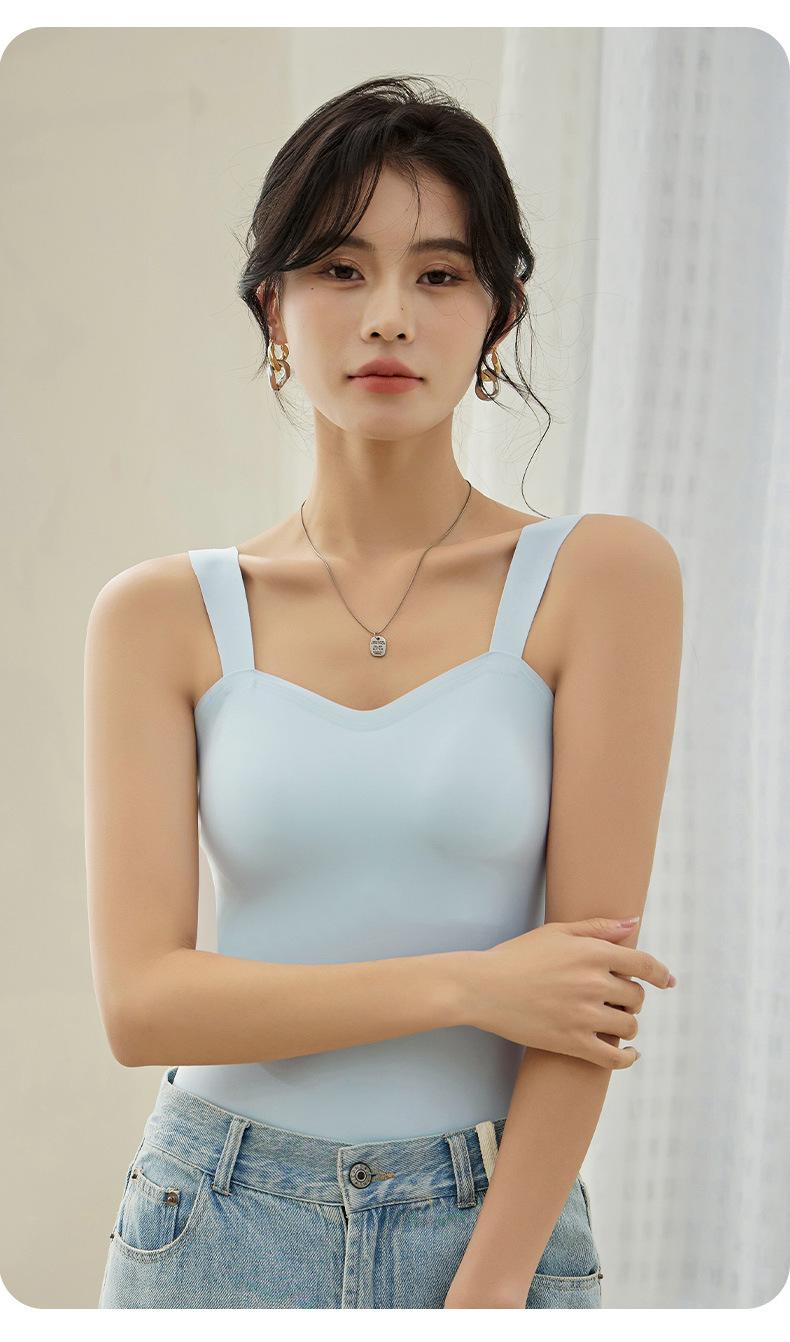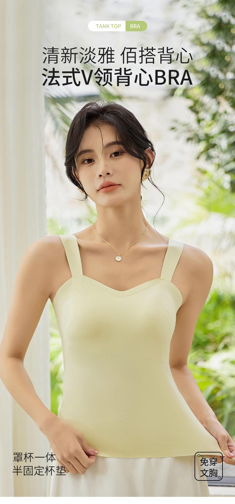 Camisola interior para mujer con almohadilla para el pecho integrada, hermosa espalda blanca, ropa interior larga, base fina de verano, prenda exterior superior