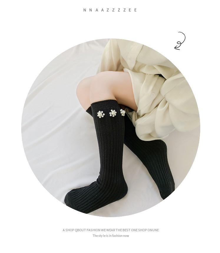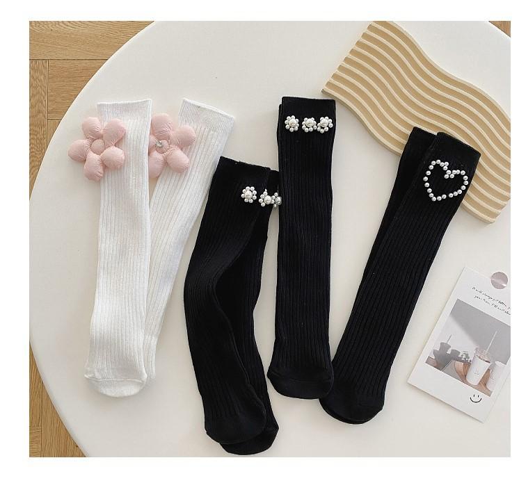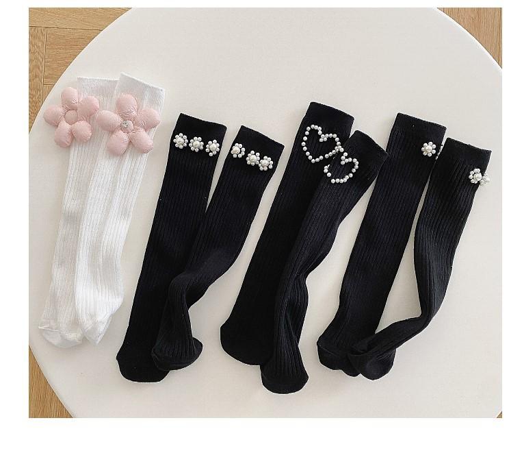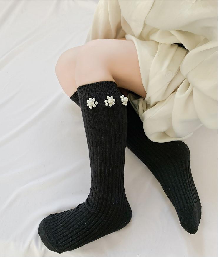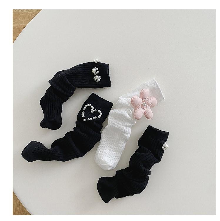 Calcetines para Niños Calcetines de Princesa Coreanos Primavera Nuevo Estilo Calcetines Rectos Vintage Calcetines Apilados de Perlas Calcetines para Niñas