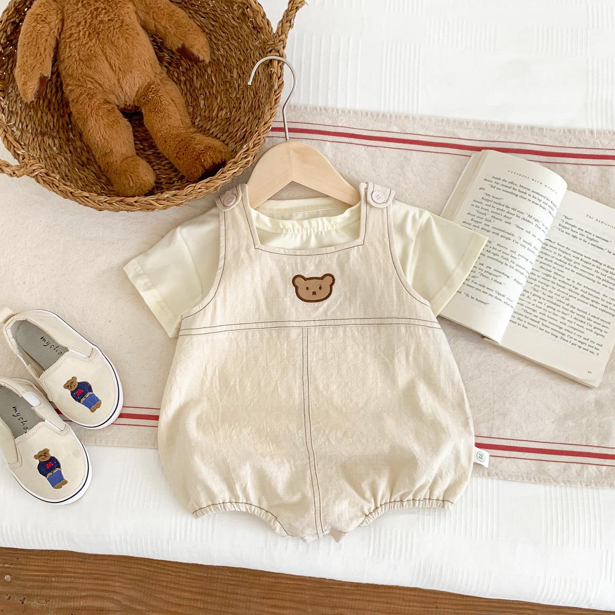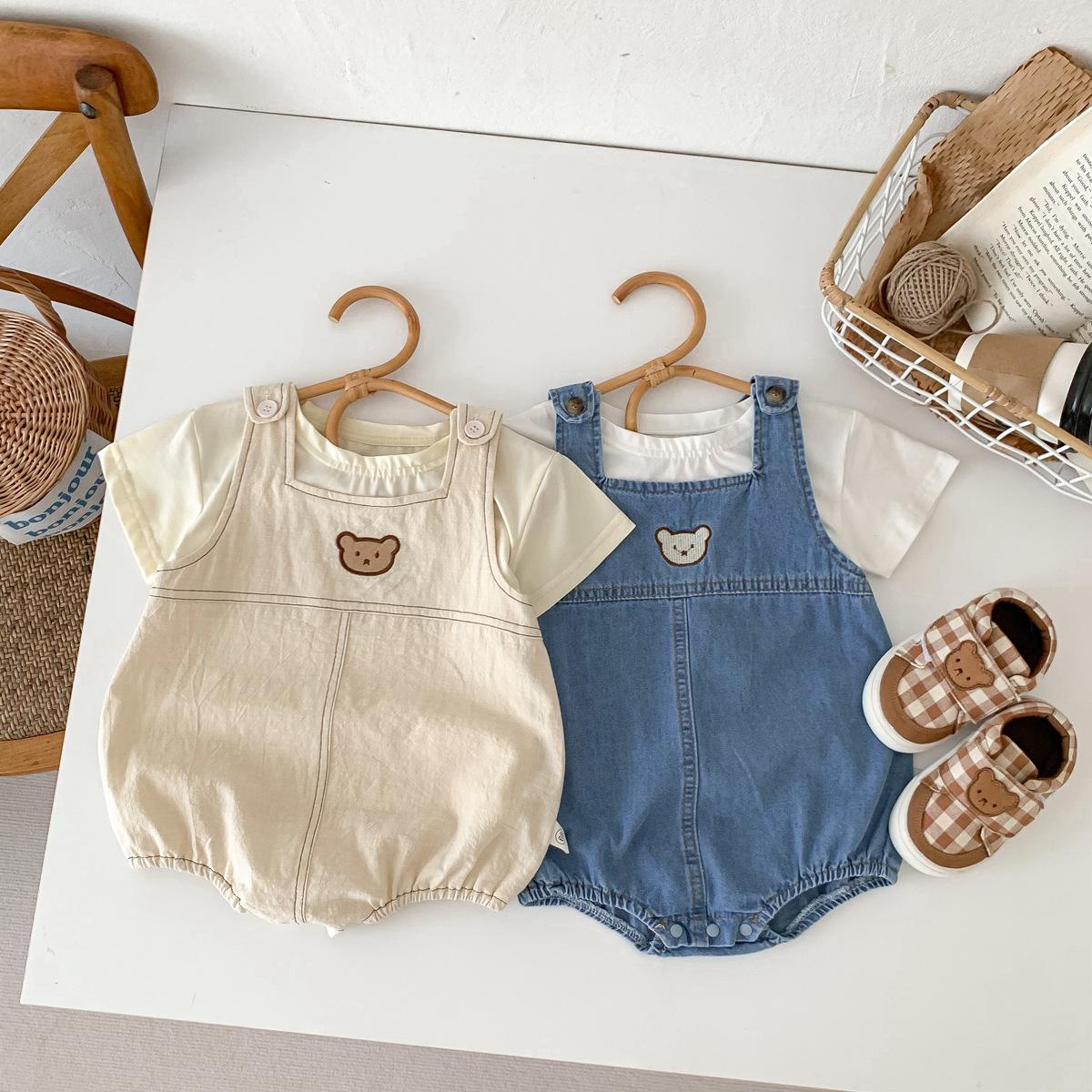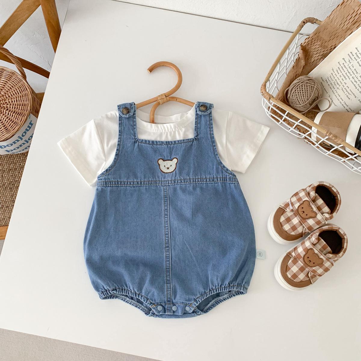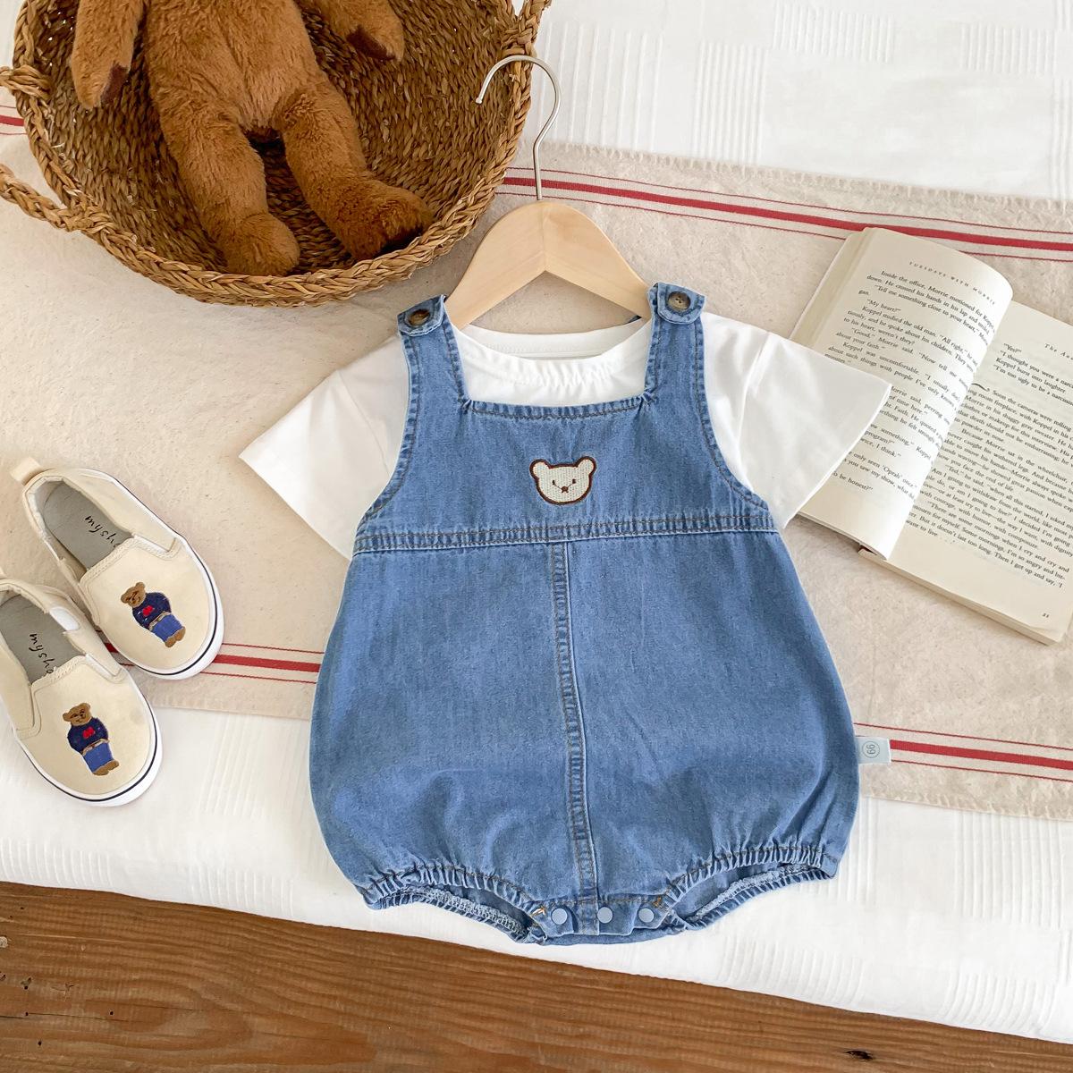 Ropa de verano coreana para bebés, con correa de oso vaquero, para niños y niñas, bolsa de ropa para niños, ropa gorda, ropa de escalada de estilo occidental