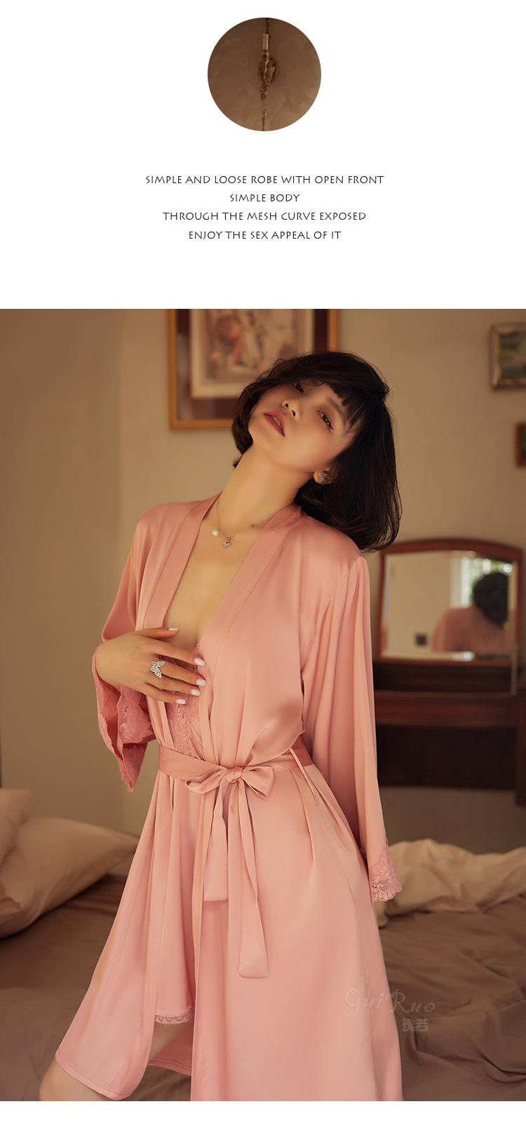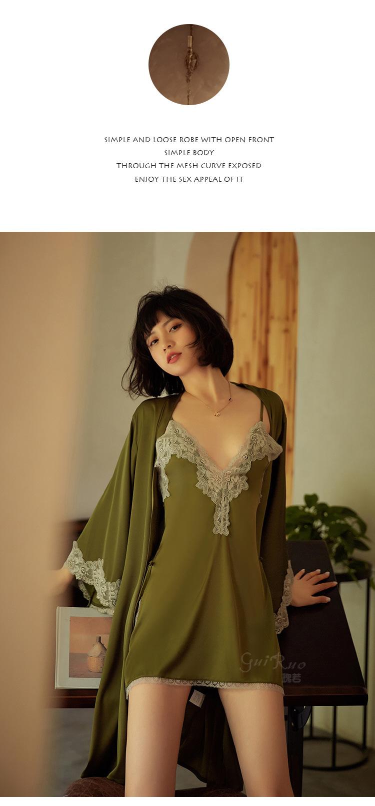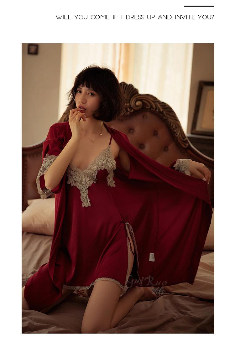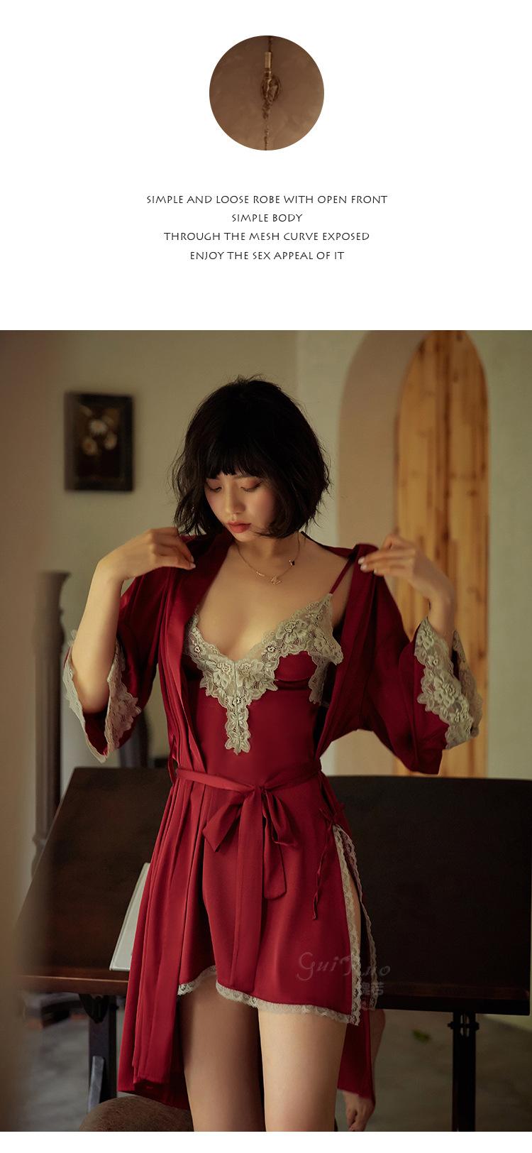 Marca Guiruo Sexy Encaje Escote en V Profundo Camisón de Tirantes Espalda Descubierta Pijama con Cordones Cómoda Bata Exterior Conjunto de Ropa para el Hogar 272