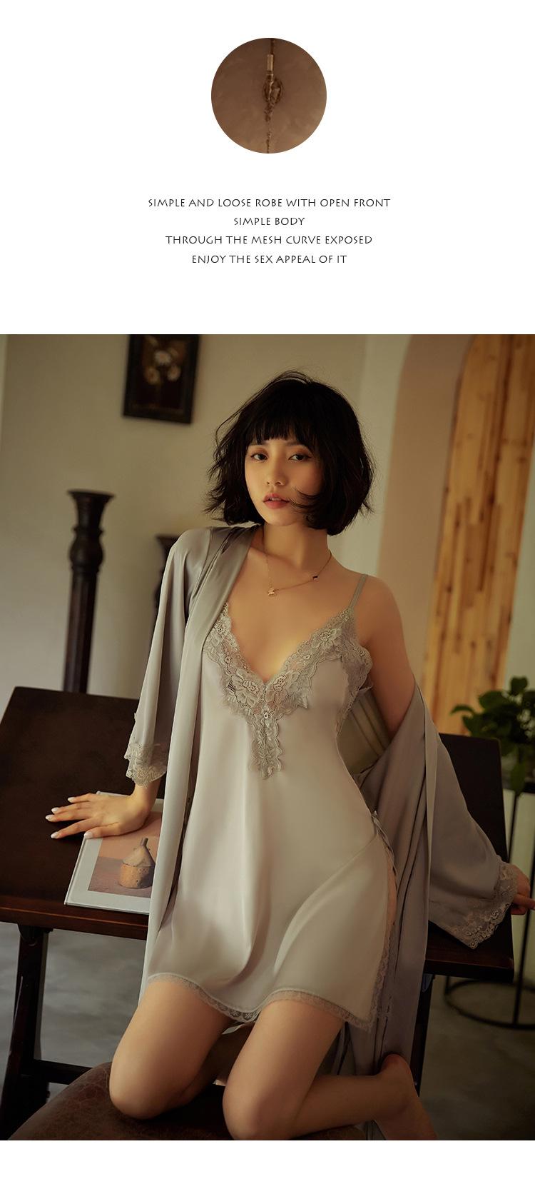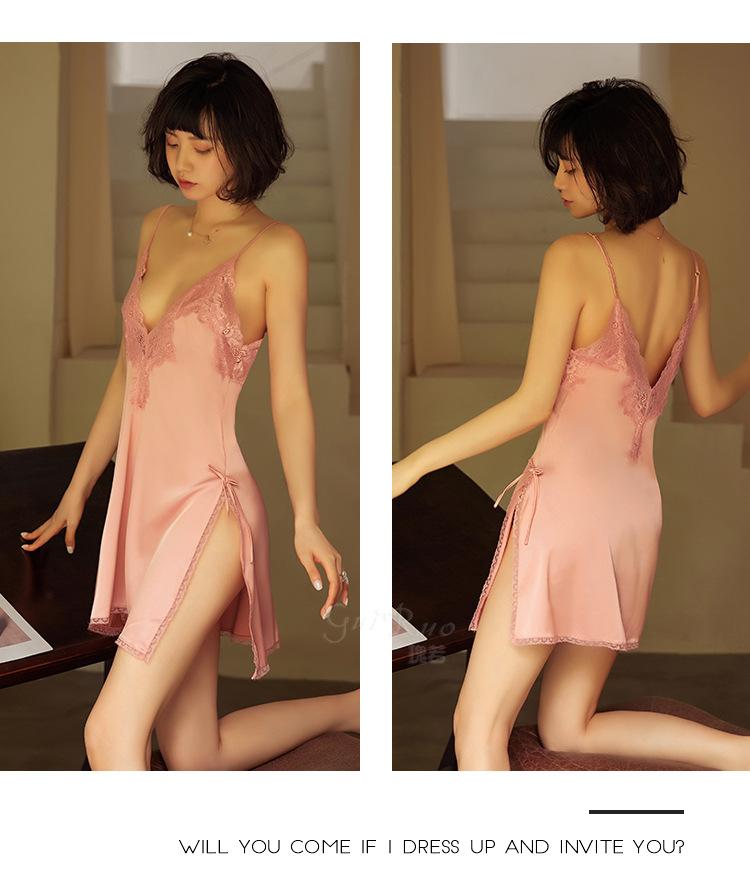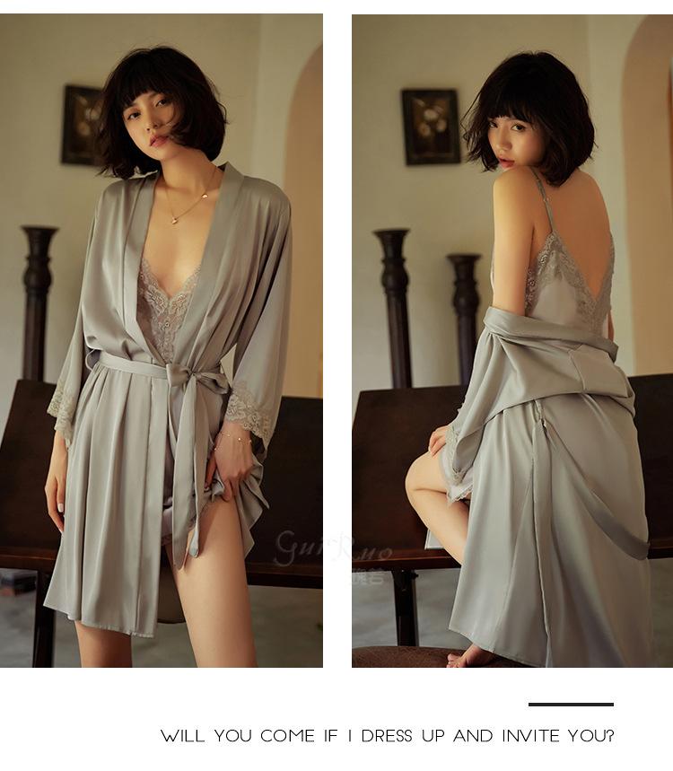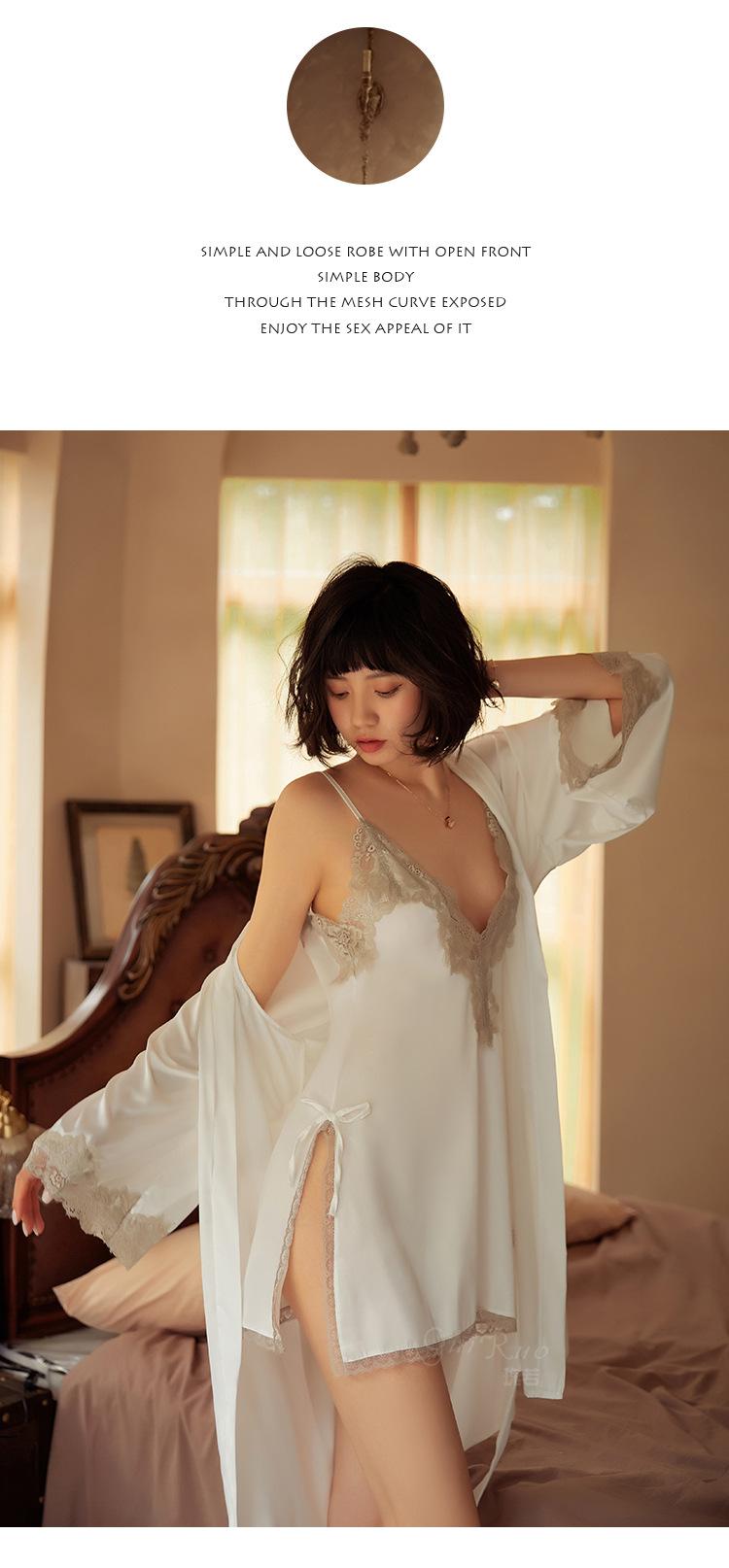 Marca Guiruo Sexy Encaje Escote en V Profundo Camisón de Tirantes Espalda Descubierta Pijama con Cordones Cómoda Bata Exterior Conjunto de Ropa para el Hogar 272