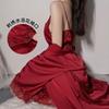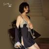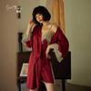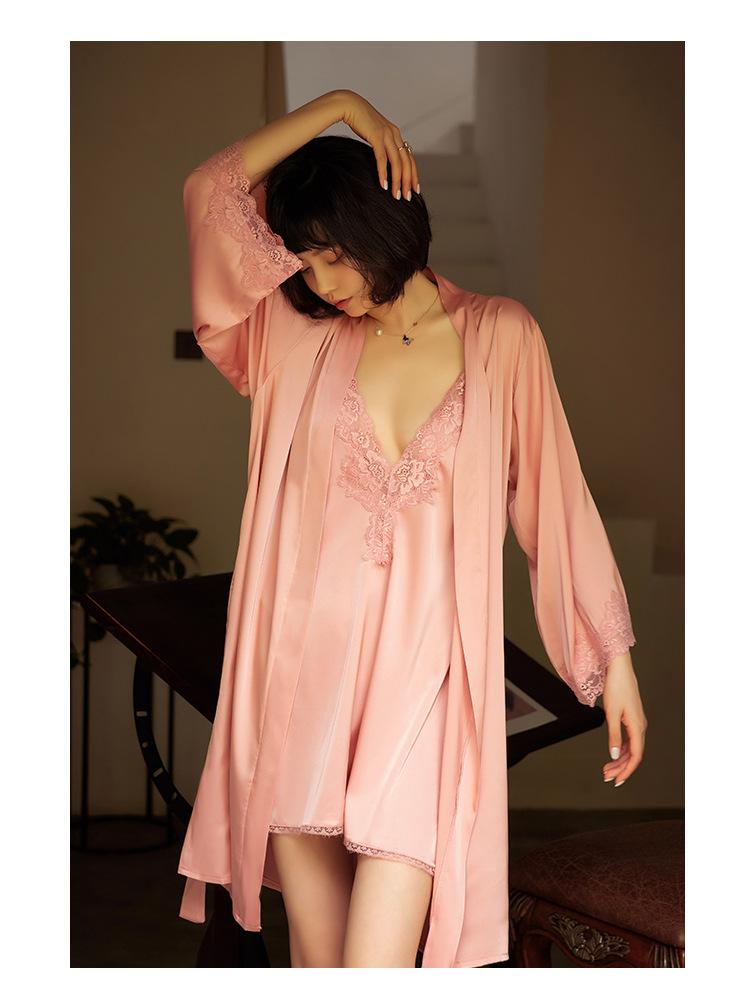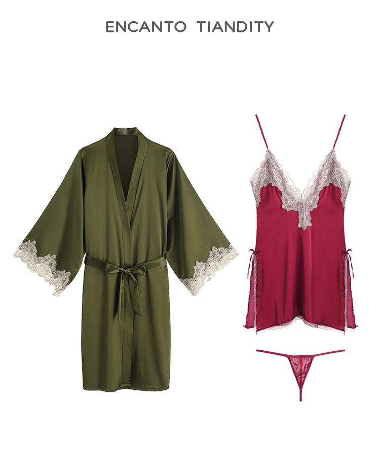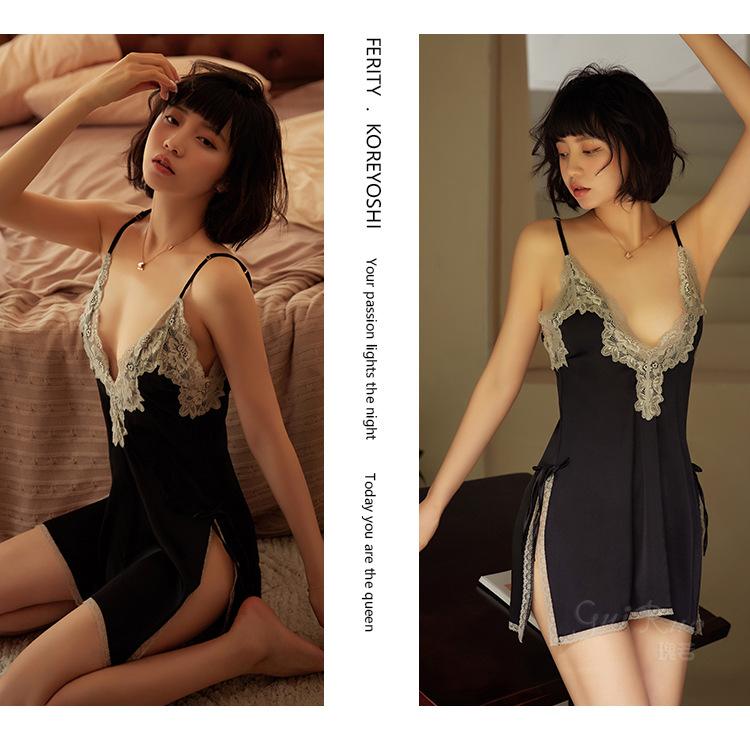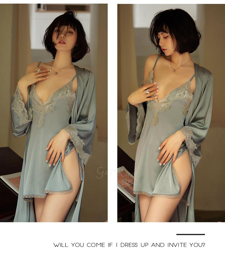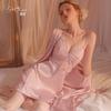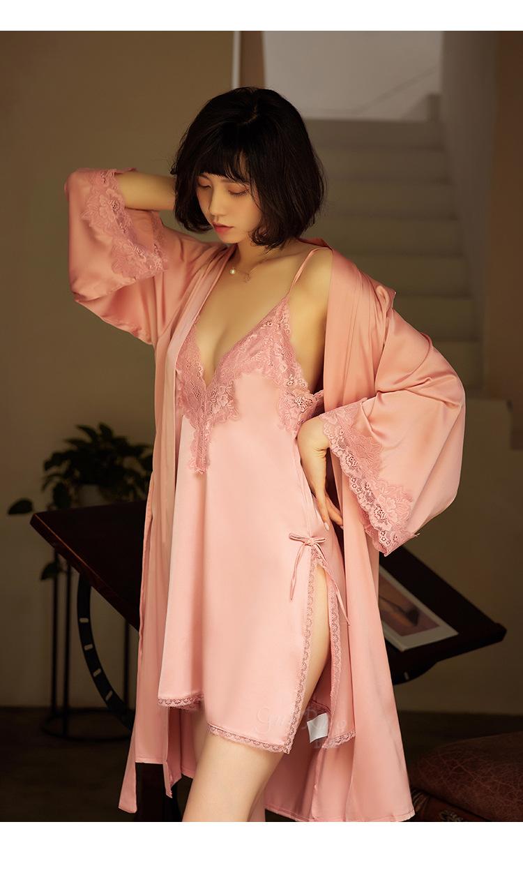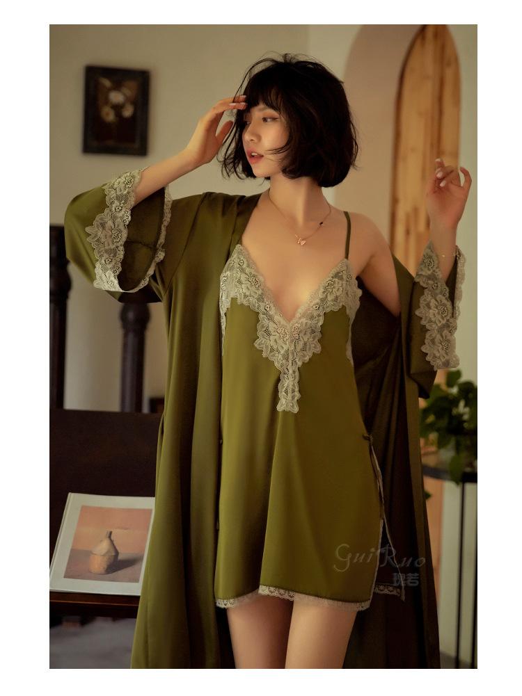 Marca Guiruo Sexy Encaje Escote en V Profundo Camisón de Tirantes Espalda Descubierta Pijama con Cordones Cómoda Bata Exterior Conjunto de Ropa para el Hogar 272