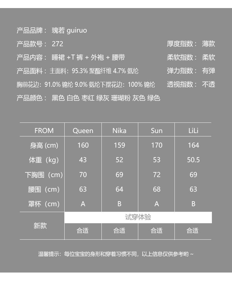 Black (nightgown + T pants), Black (Robe + Belt), White (Robe + Belt), Grey (nightgown + T pants), Zaohong (Ro...