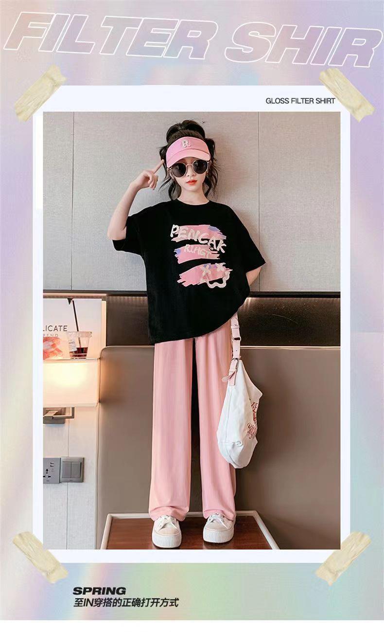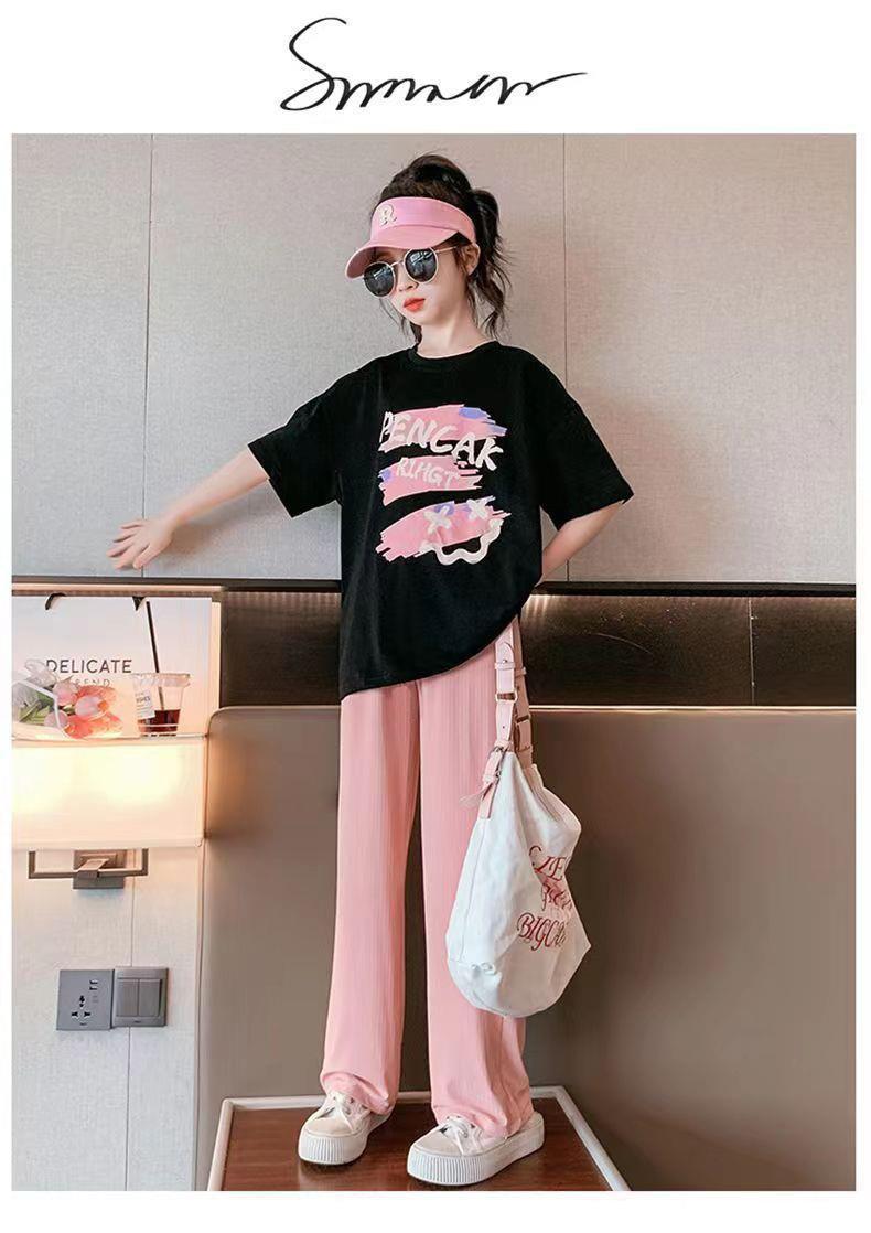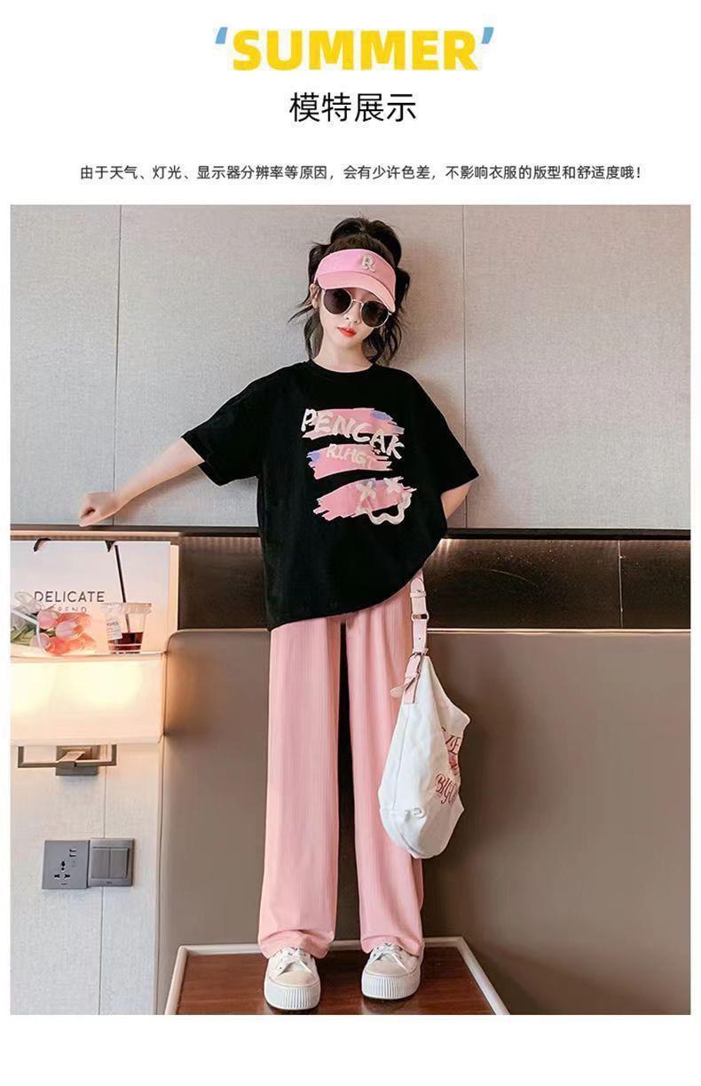 Conjunto de camiseta de manga corta para niña, verano 2024, nuevo estilo, ropa para niña, ropa de verano para niña grande.