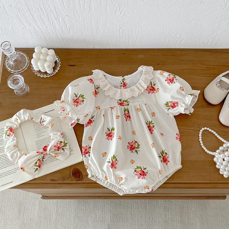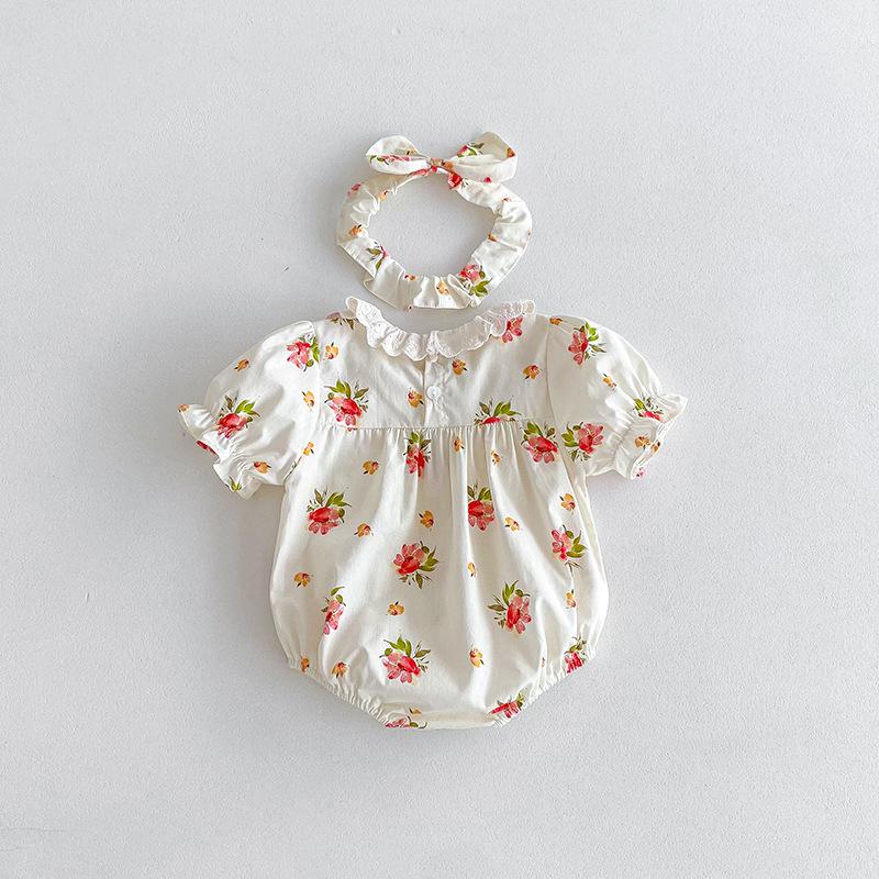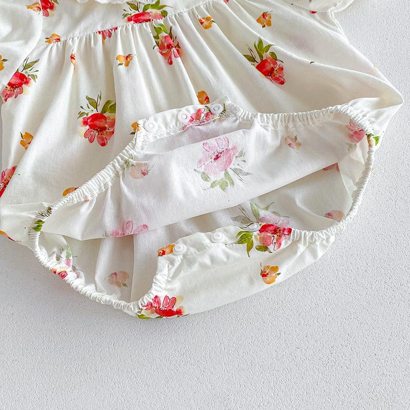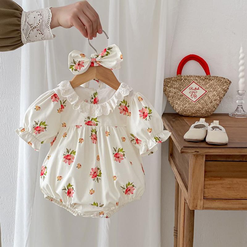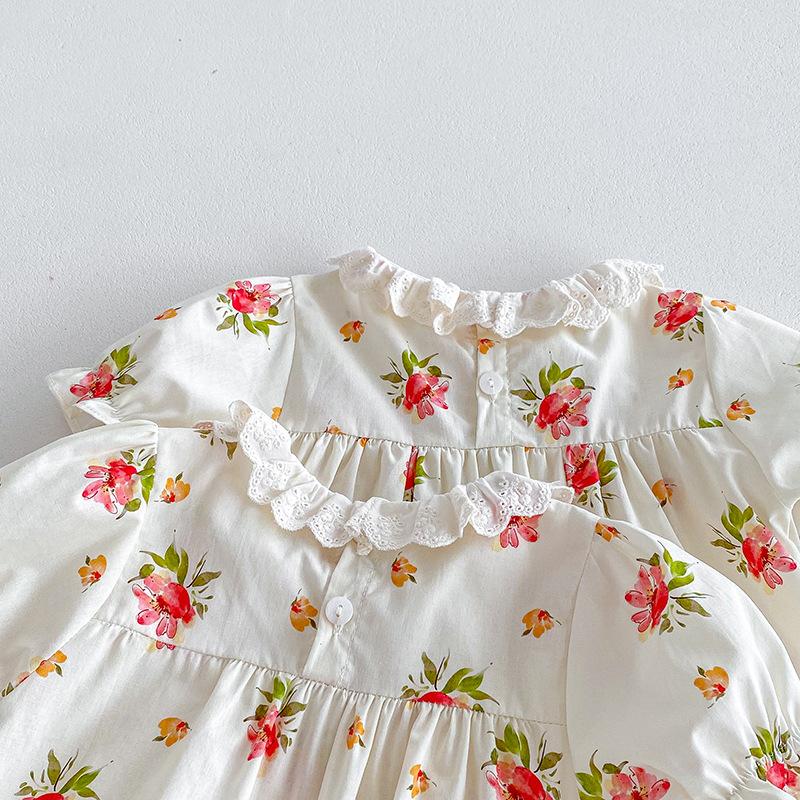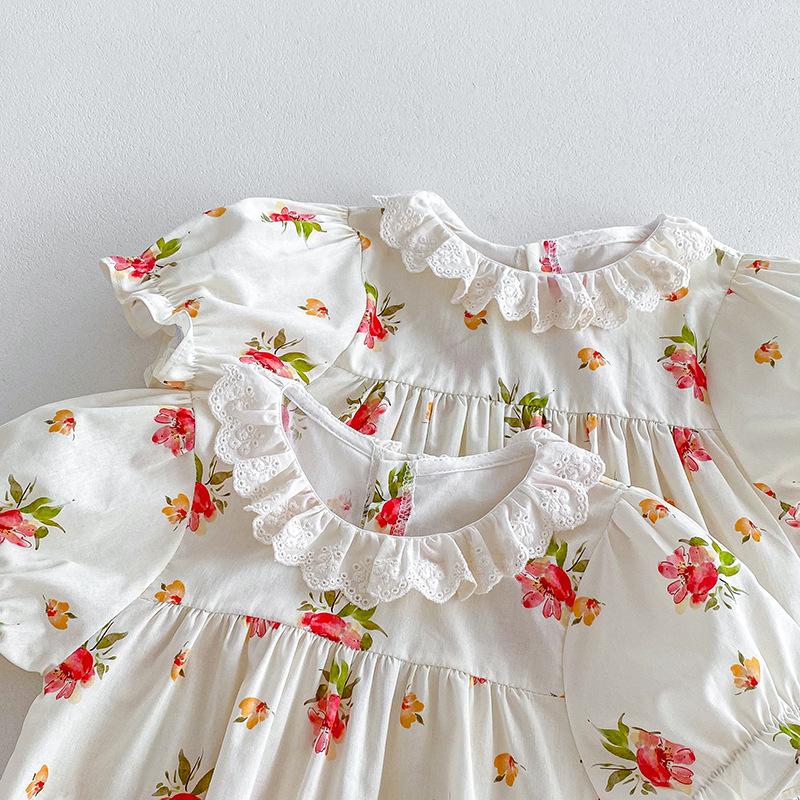 Ropa de Verano para Bebé 2025 para Niñas: Mameluco Dulce de Triángulo con Mangas Abullonadas y Traje de Hermana a Juego