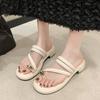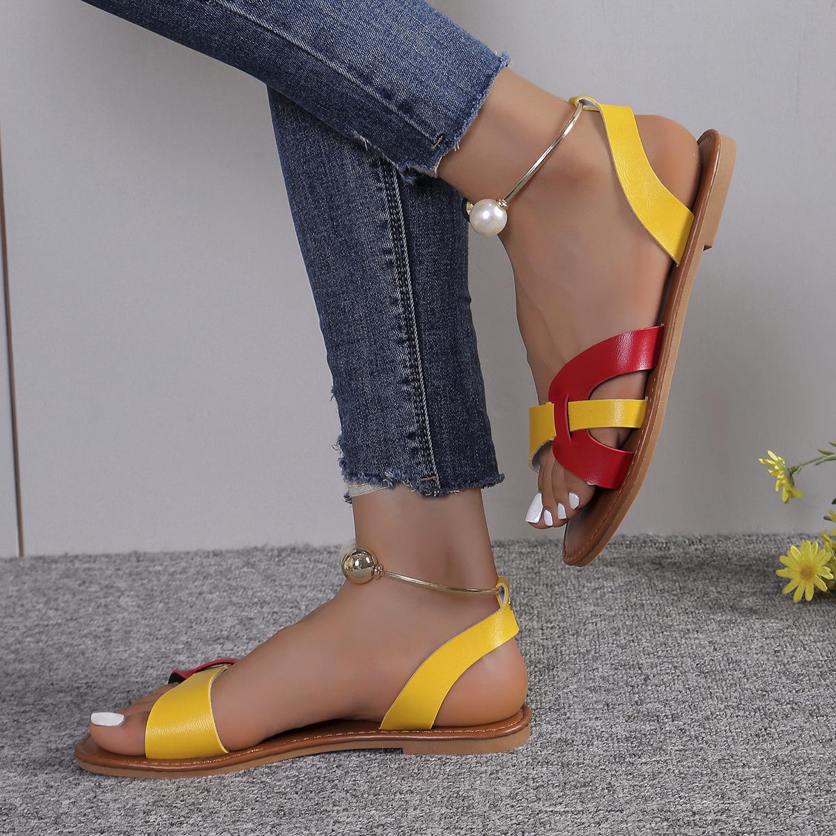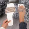 Sandalias Planas Simples de Perlas de Una Palabra 2024 Verano Nuevo Comercio Exterior Talla Grande Perlas Planas Ligeras Sandalias de Una Palabra