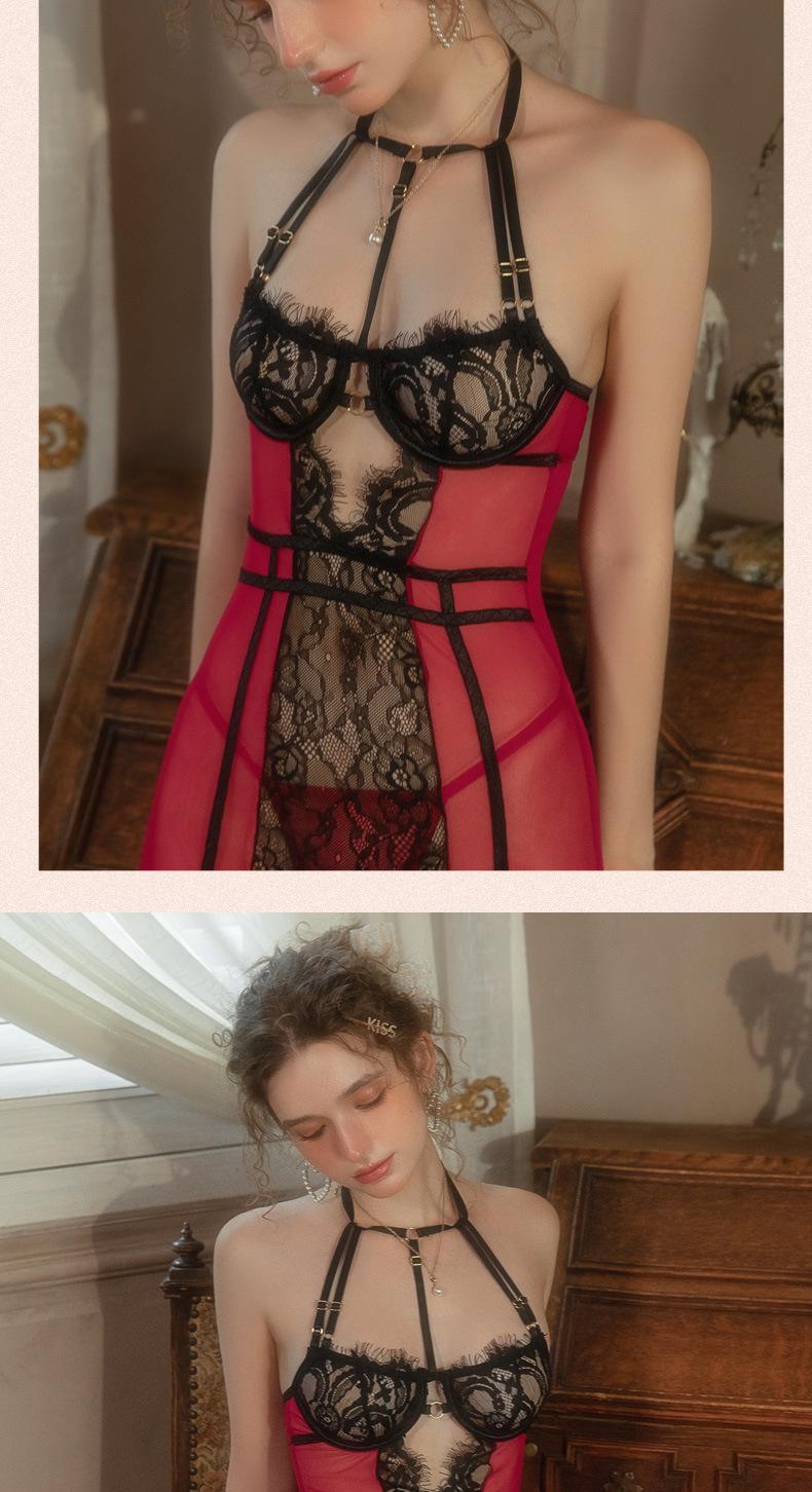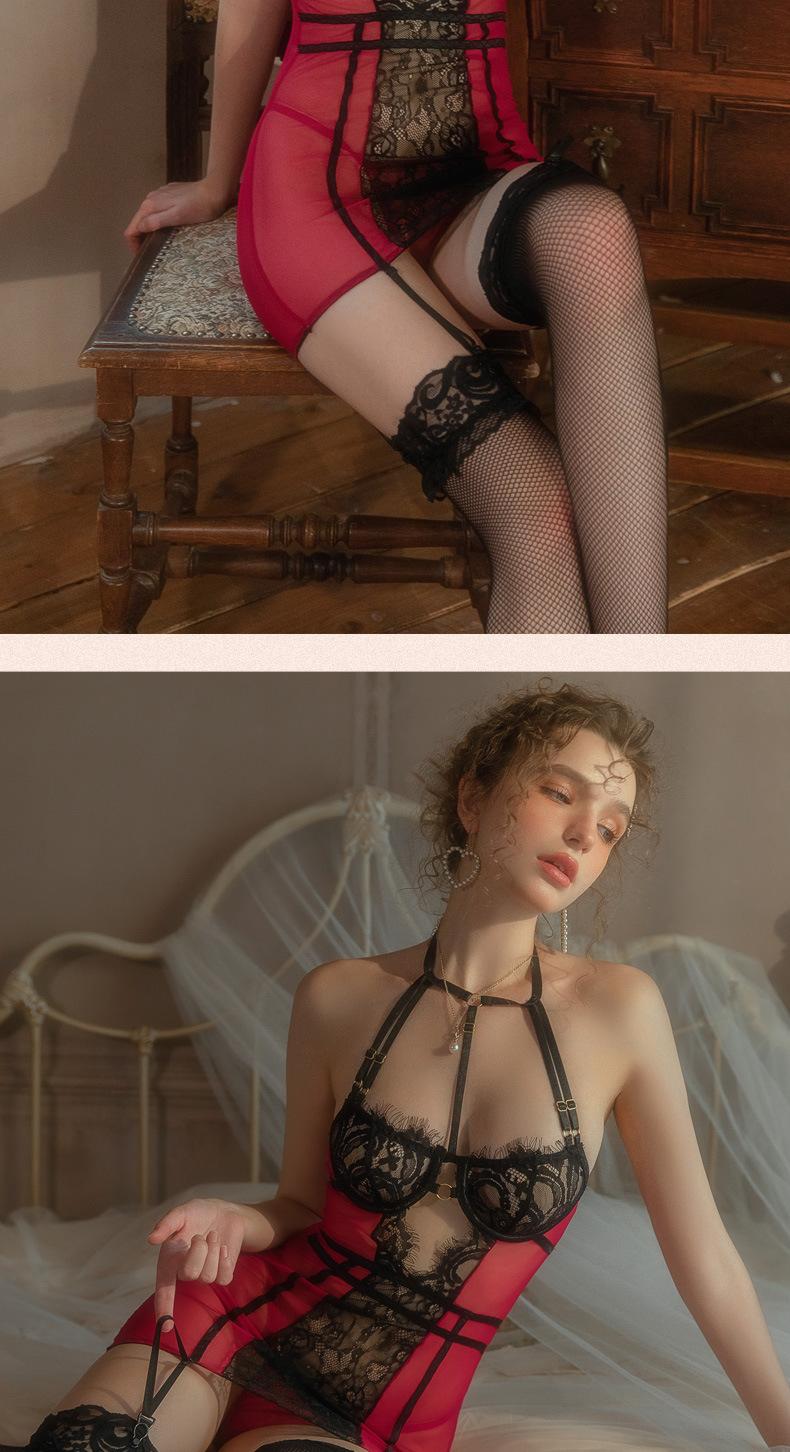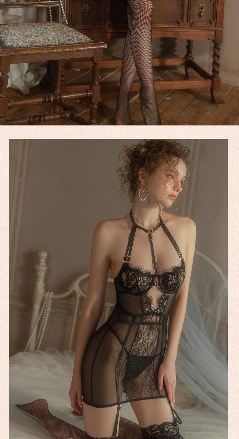 Chaleco Liguero Encaje de Borde Malla Cuello Colgante Ropa Interior Sexy Set Sexy Corsé Moldeador de Cuerpo 9665
