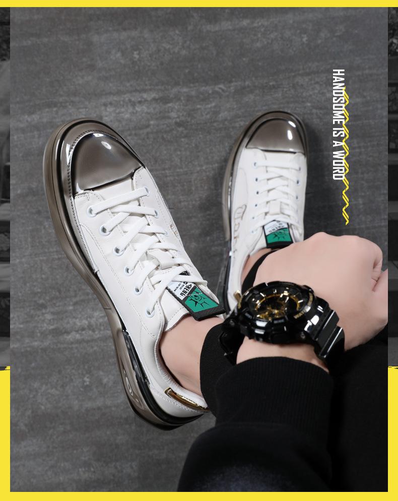 Tenis para hombre nuevos zapatos de cuero de superficie suave para hombre de suela gruesa versátiles casuales zapatos blancos transpirables de moda zapatos de skate para hombre