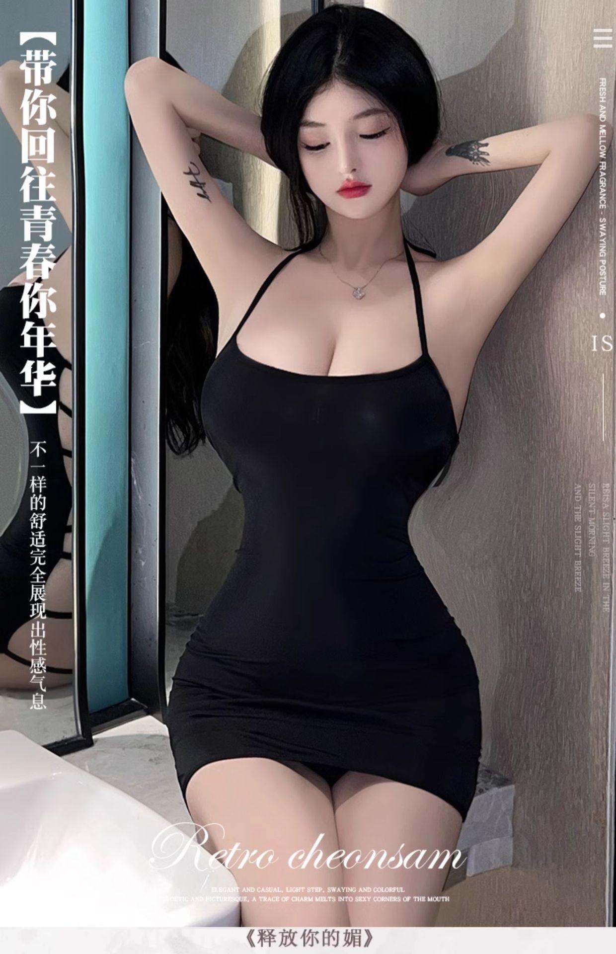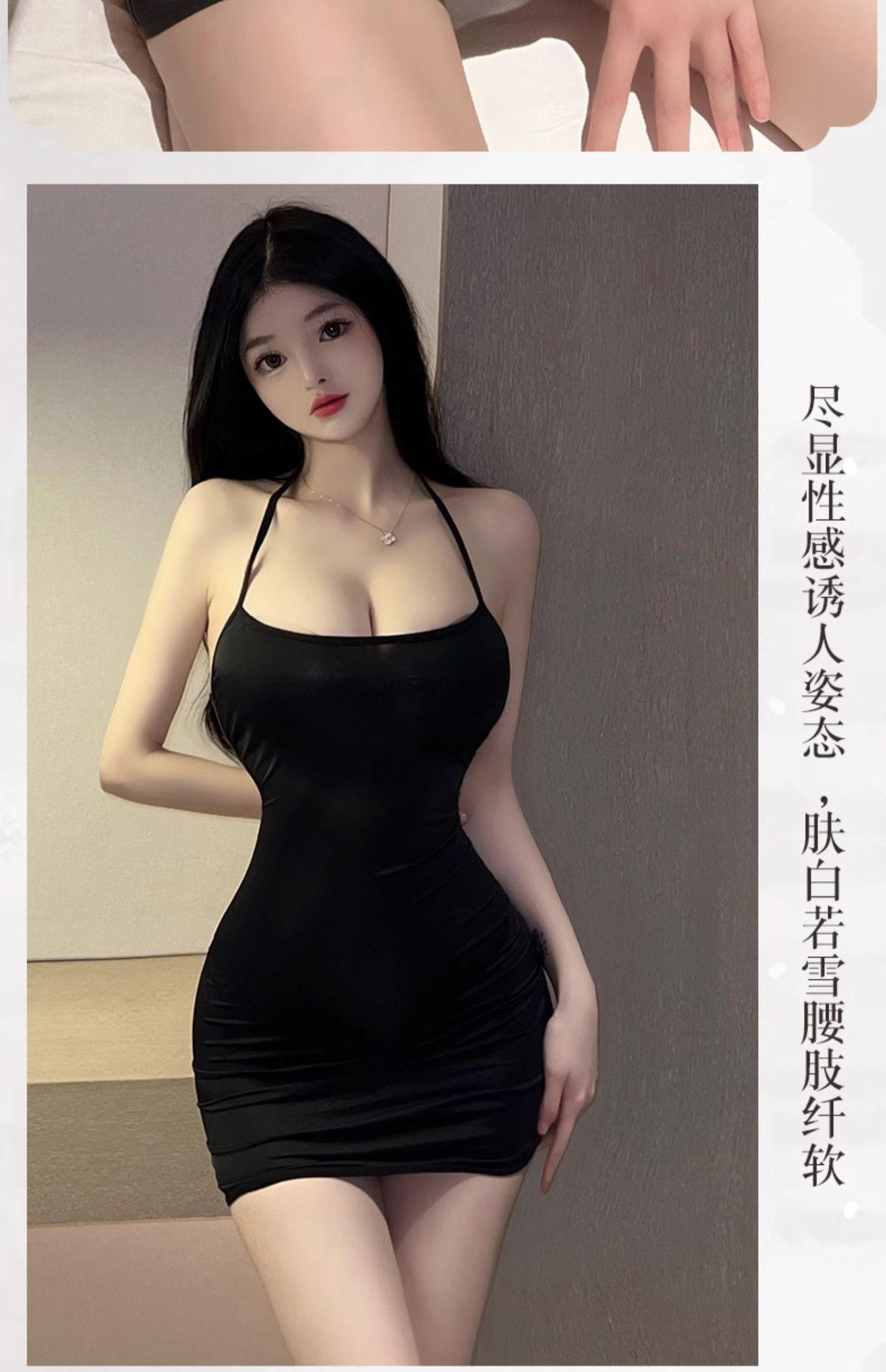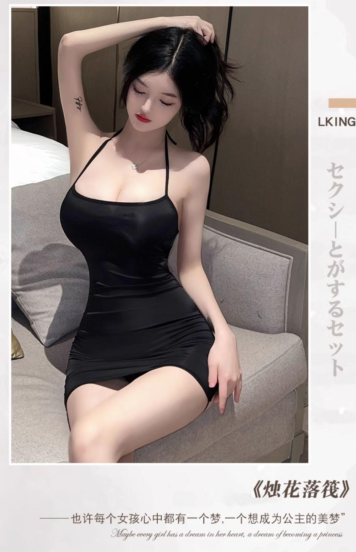 Lencería sexy con escote colgante, tirantes finos, espalda descubierta, falda ajustada, uniforme de secretaria tentador 6726