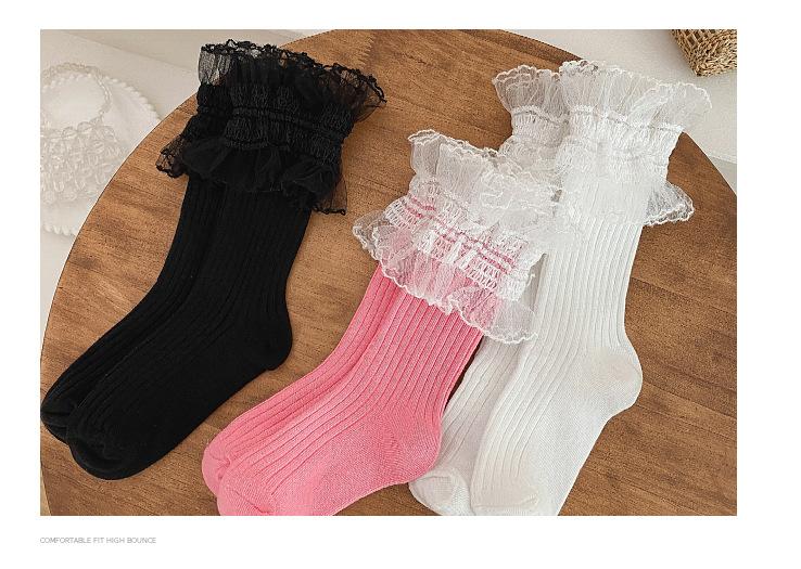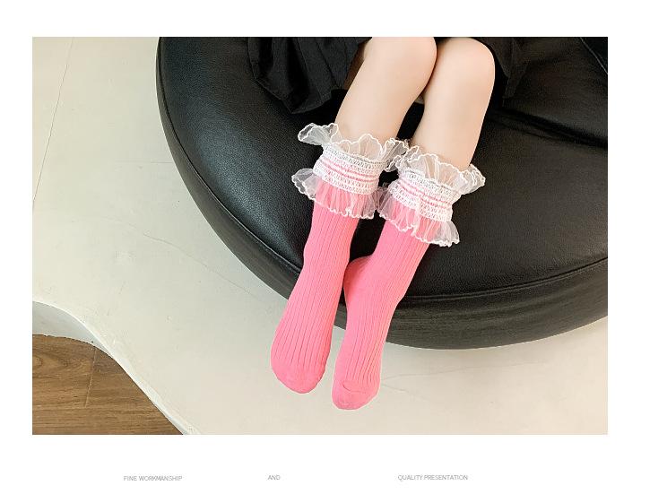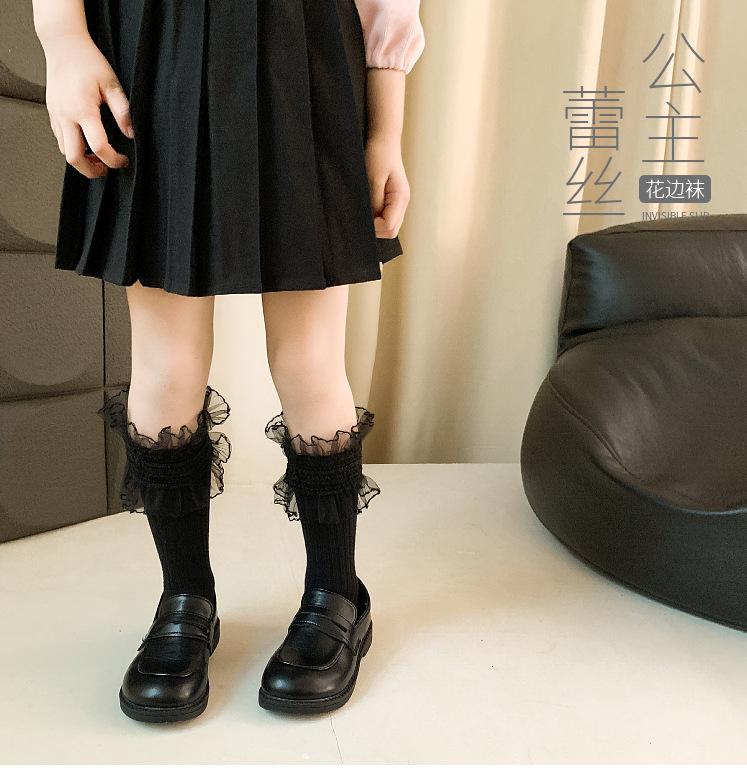 Calcetines de encaje para niñas, calcetines finos de algodón de primavera y otoño para verano, calcetines transpirables de princesa para baile de alumnas