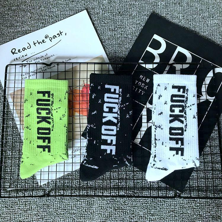 Compra Calcetines deportivos hip-hop con letras europeas y americanas, calcetines de calle para skateboard para hombres y mujeres, calcetines de algodón de moda, venta al por mayor al contado al por mayor en Joom.pro