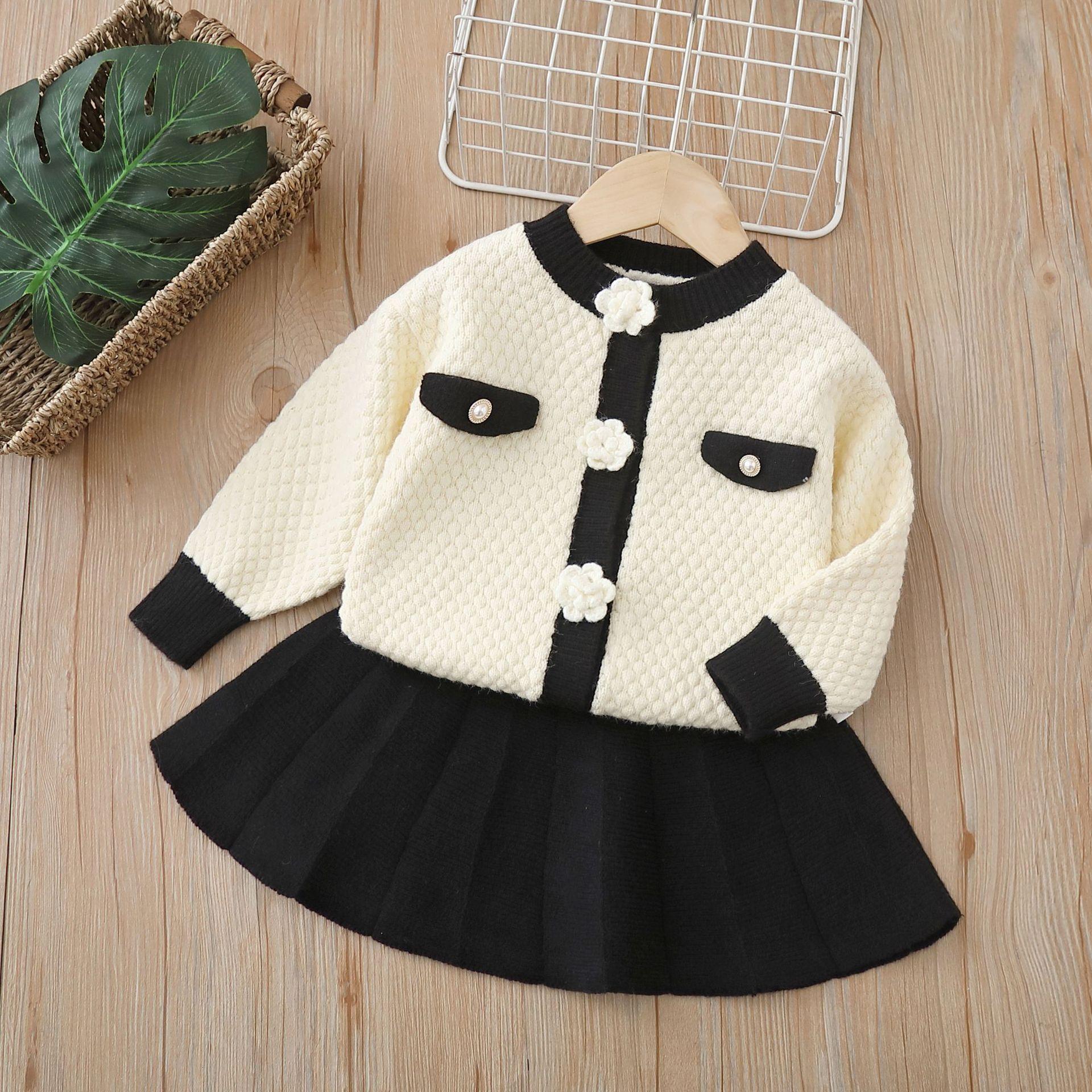 Conjunto de Suéter para Niña 2024 Otoño Nuevo Estilo Chic y Elegante Conjunto de Otoño de Dos Piezas para Bebé