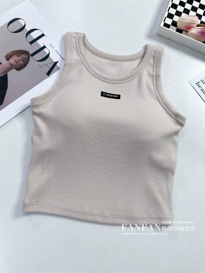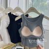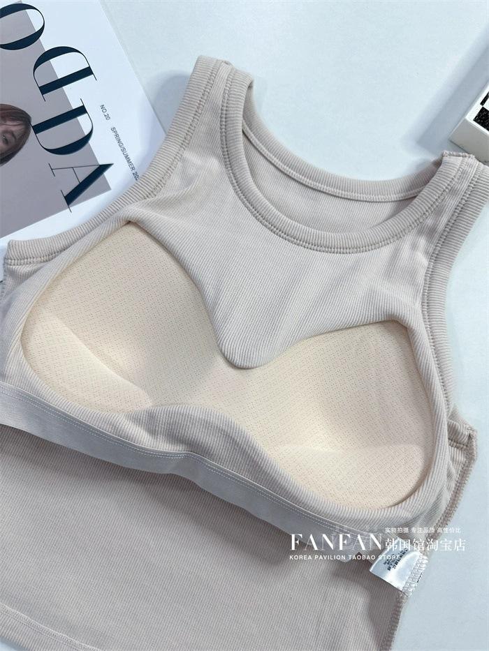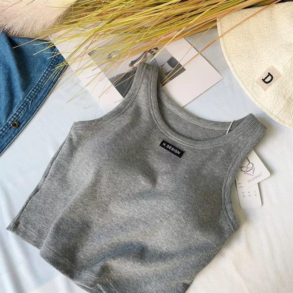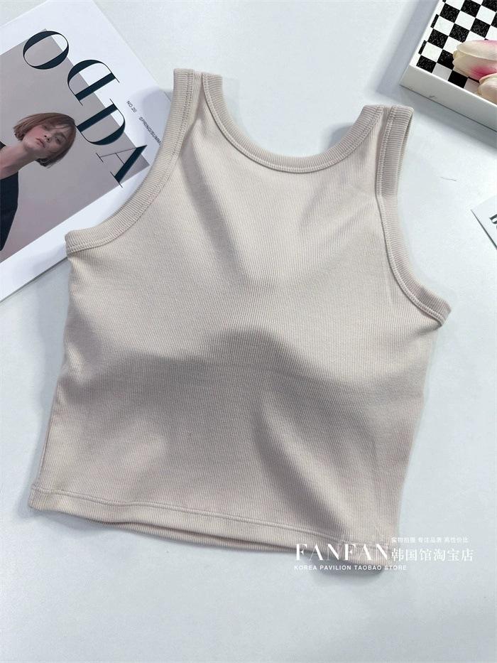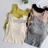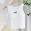 Playera sin mangas básica de algodón RC de cuello redondo simple para mujer, nueva, con copa de una pieza y almohadilla de látex para el pecho, push-up, ropa interior para mujer, ropa base sin mangas
