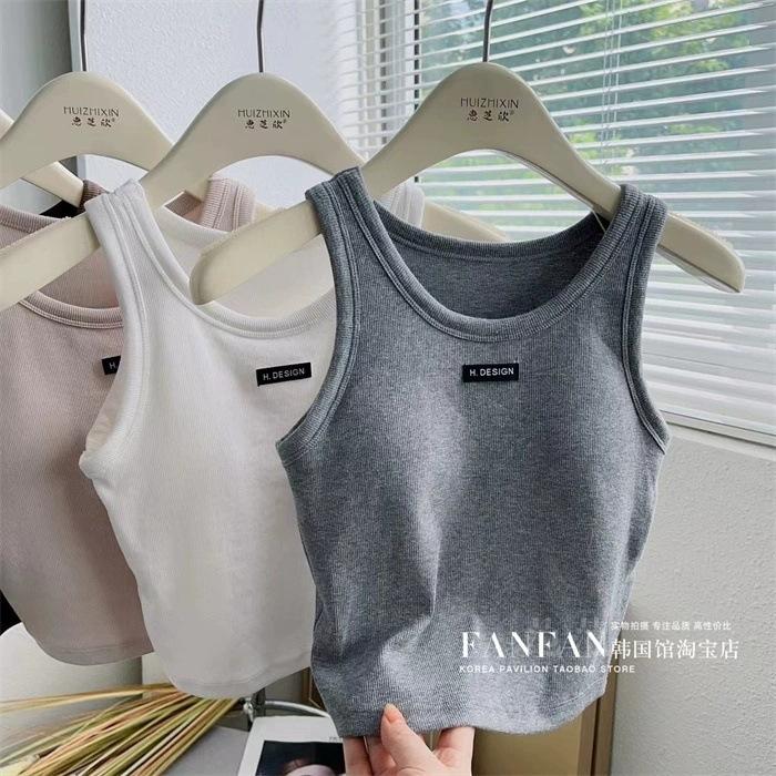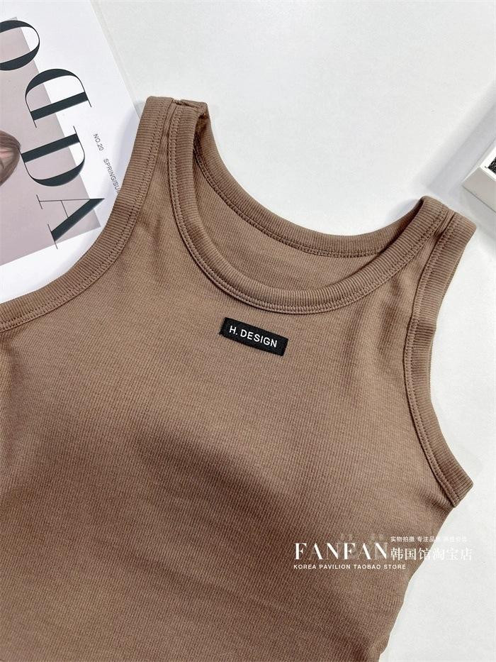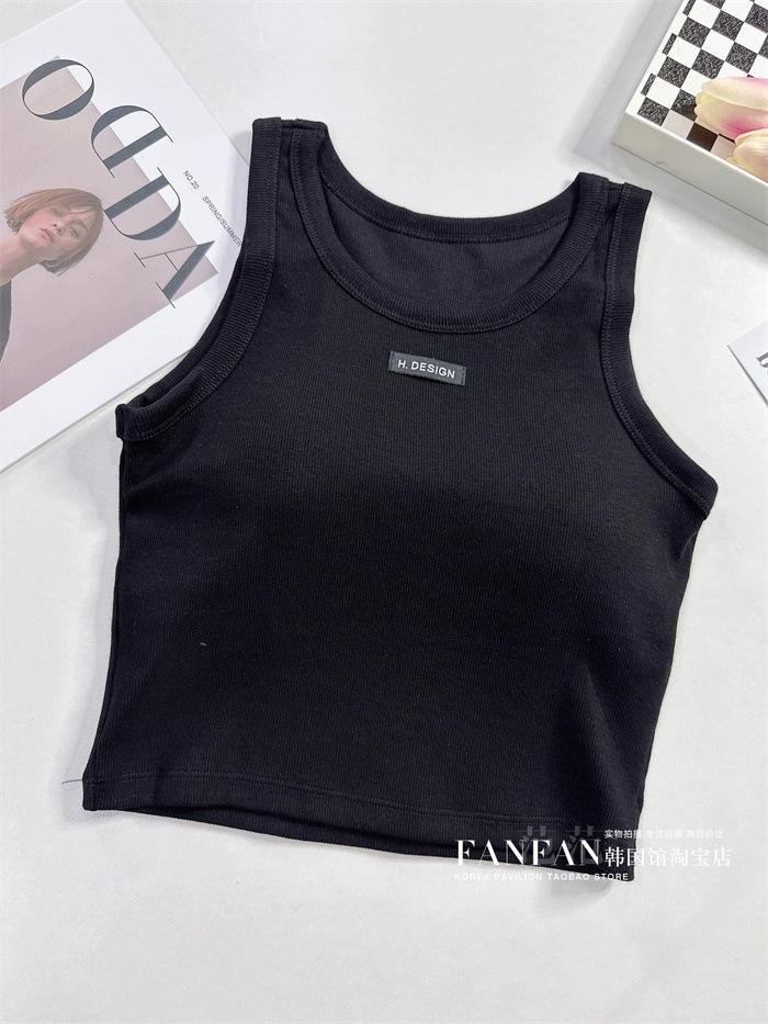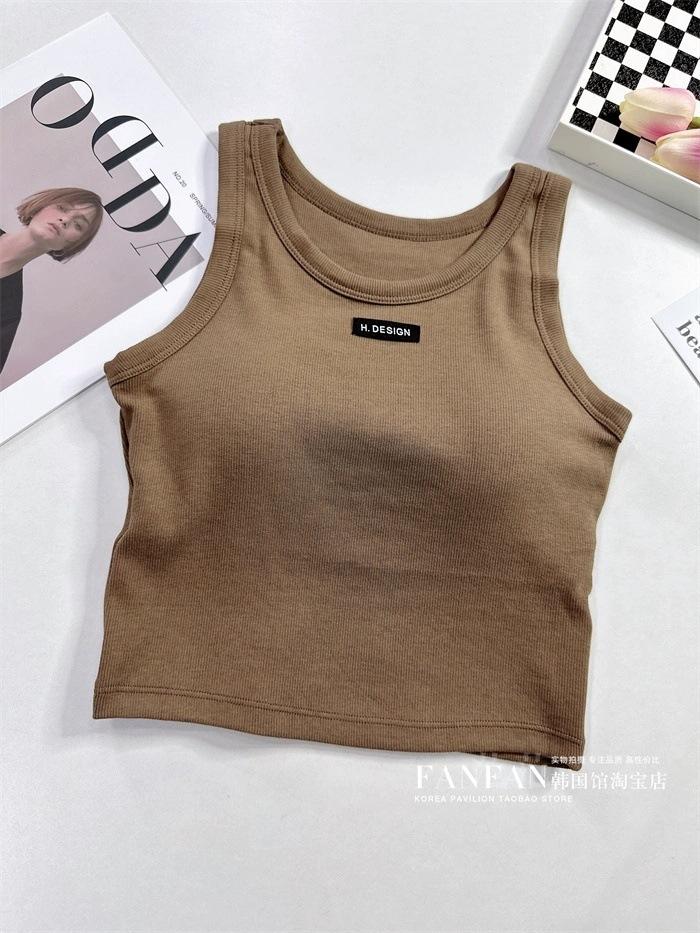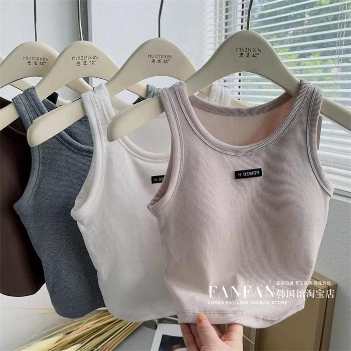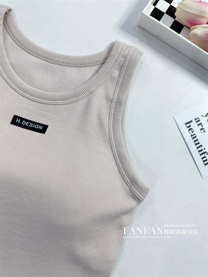 Playera sin mangas básica de algodón RC de cuello redondo simple para mujer, nueva, con copa de una pieza y almohadilla de látex para el pecho, push-up, ropa interior para mujer, ropa base sin mangas