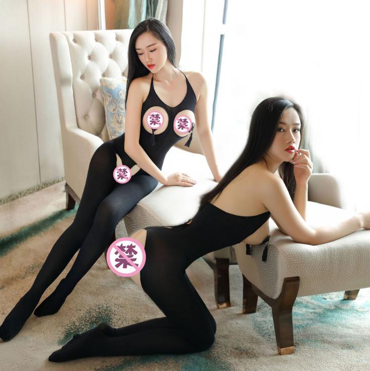 Lencería Sexy, Medias Sexys, Body, Uniforme de Coqueteo, Pijama de Seda Negra Pure Desire, Ropa de Red, Conjunto Combinado para Mujer