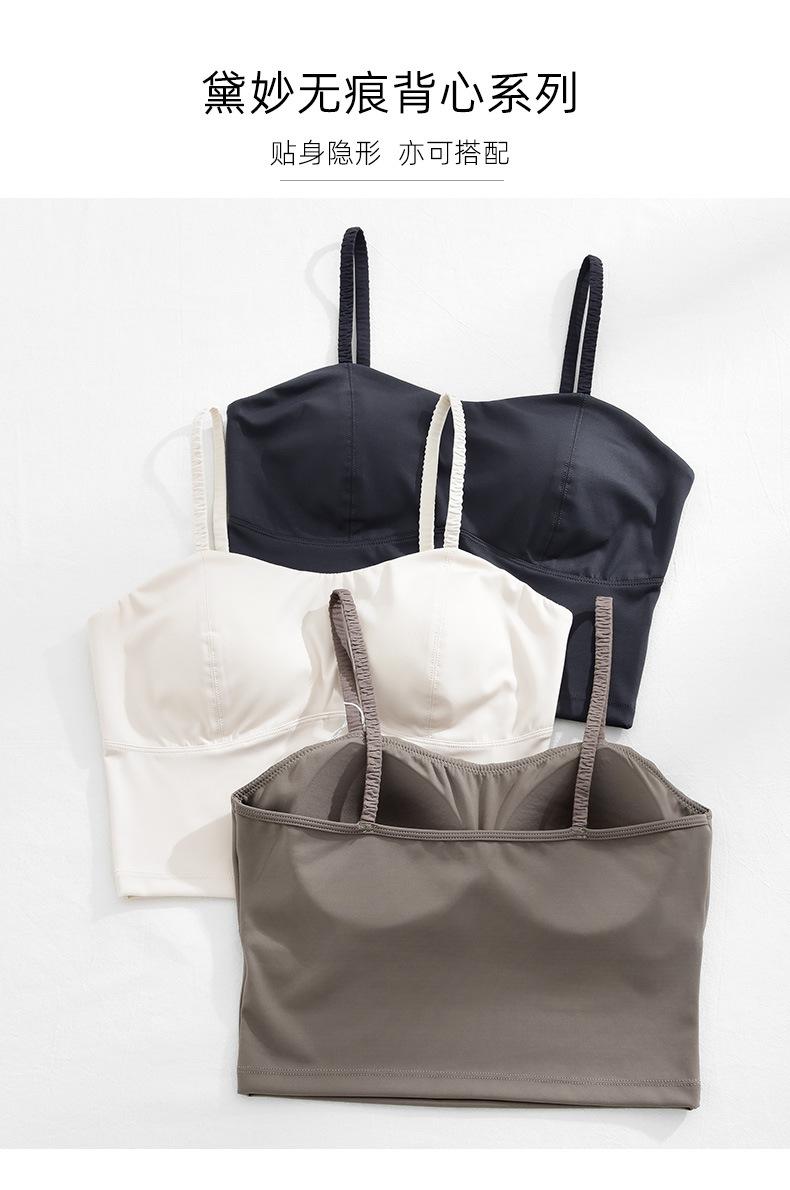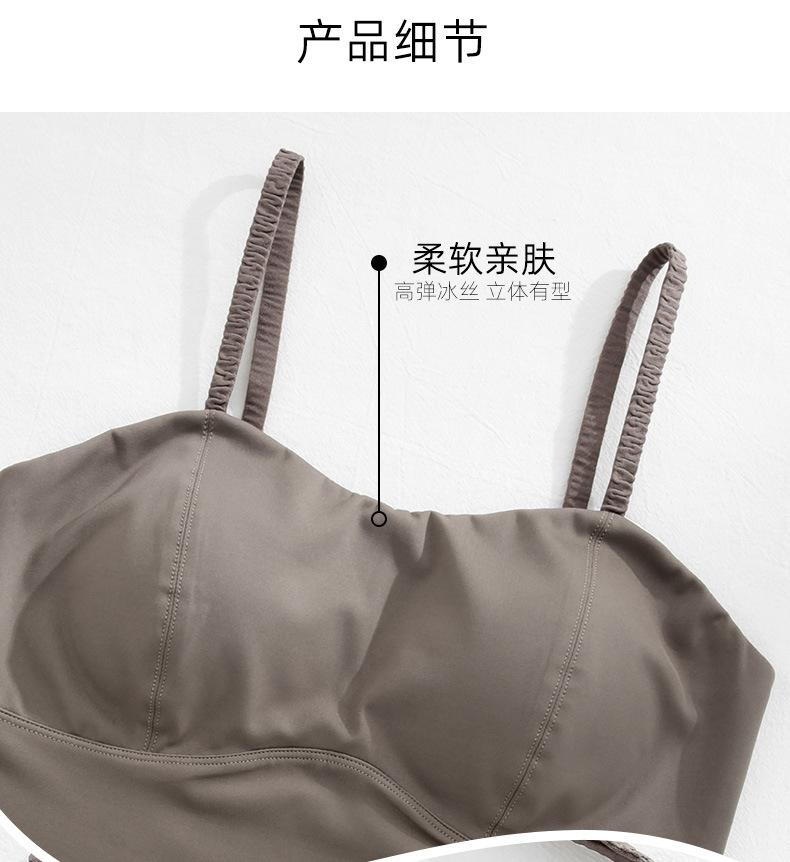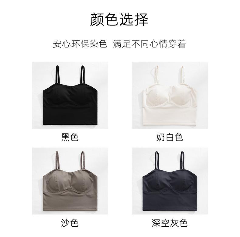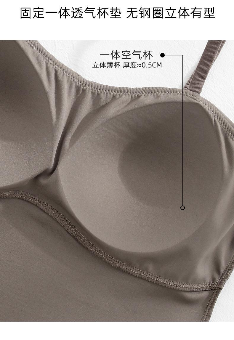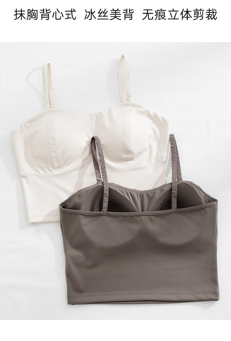 Camisola de seda helada sencilla de otoño, ropa interior para mujer, sujetador inalámbrico de una pieza con almohadilla interior para el pecho, base de belleza en la espalda