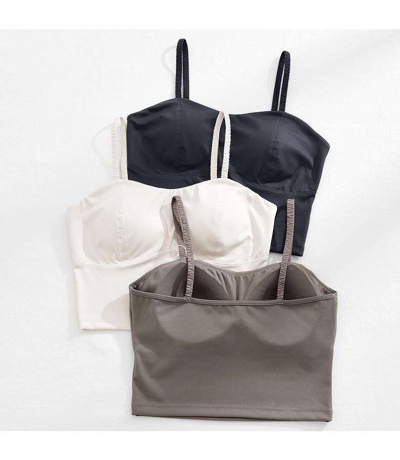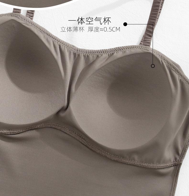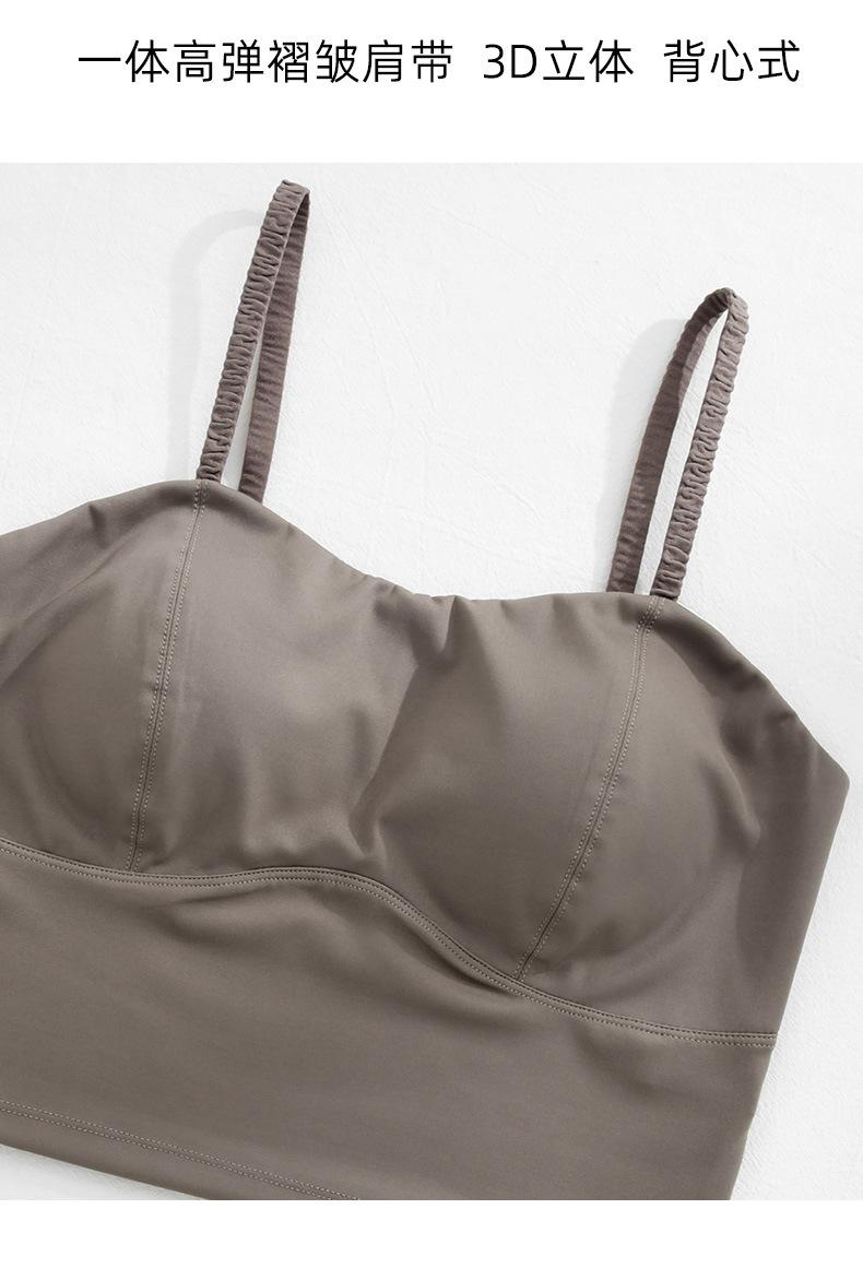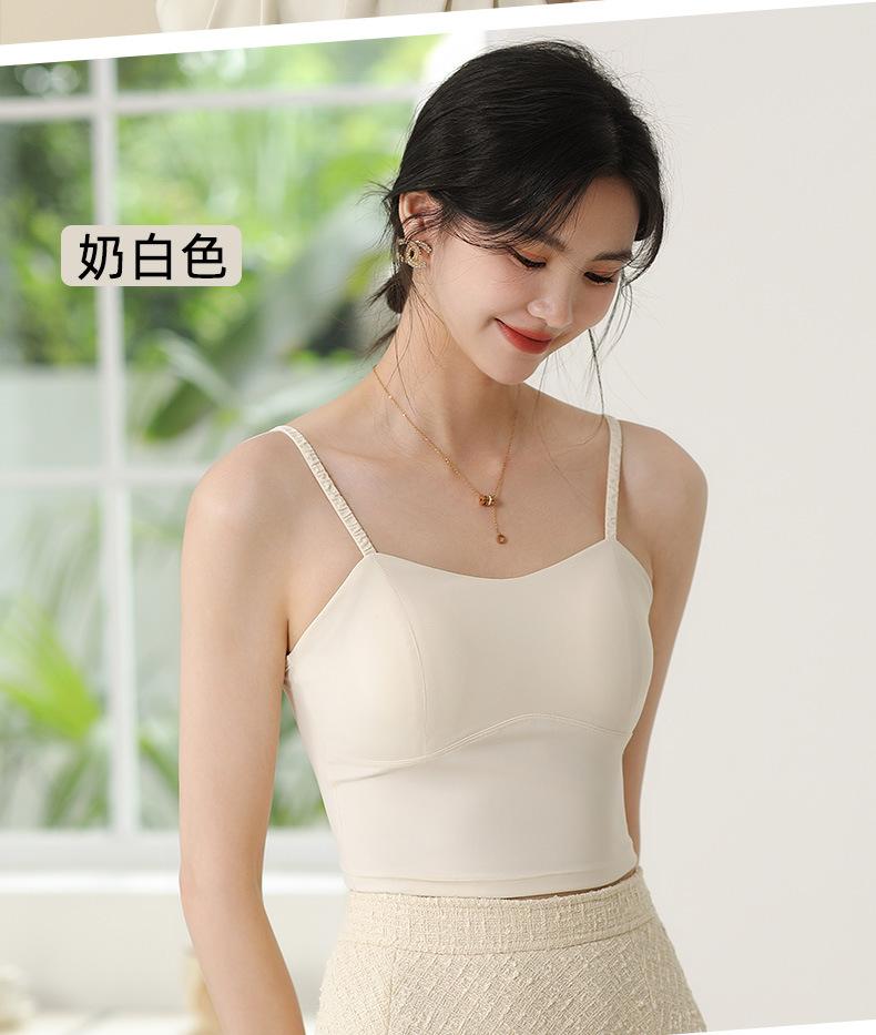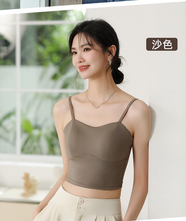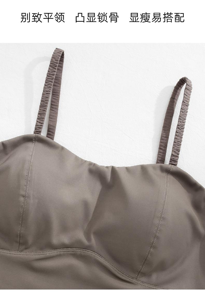 Camisola de seda helada sencilla de otoño, ropa interior para mujer, sujetador inalámbrico de una pieza con almohadilla interior para el pecho, base de belleza en la espalda