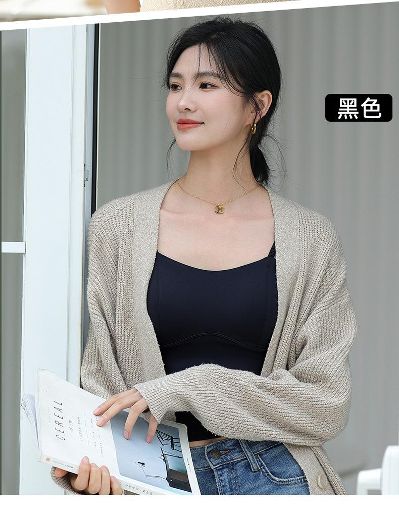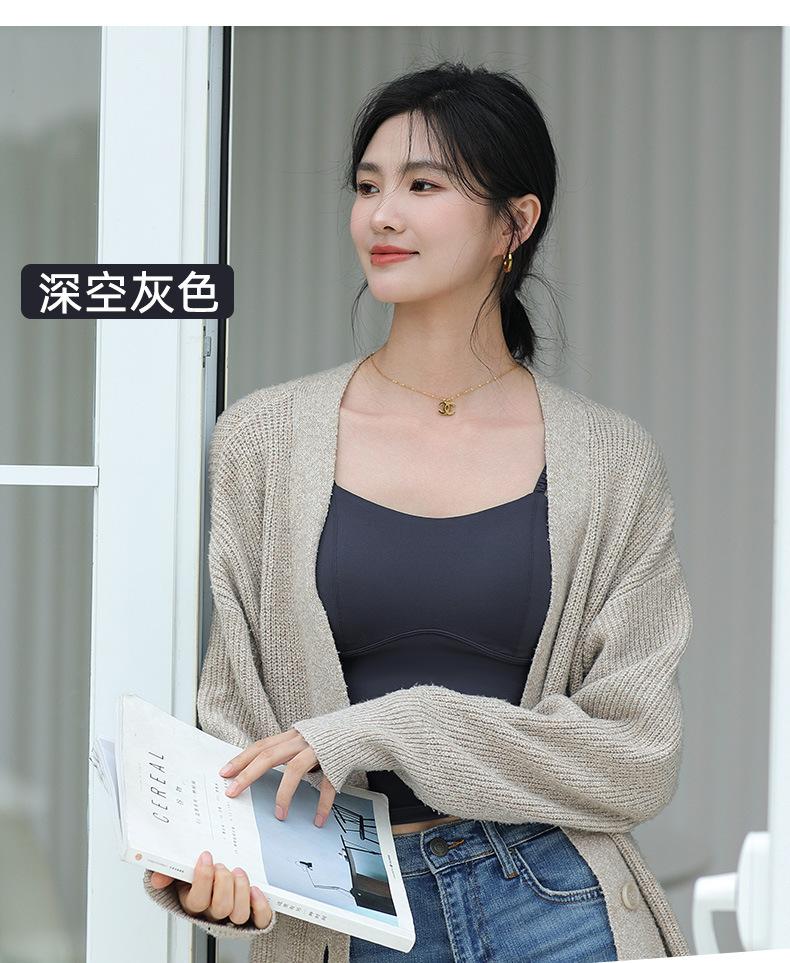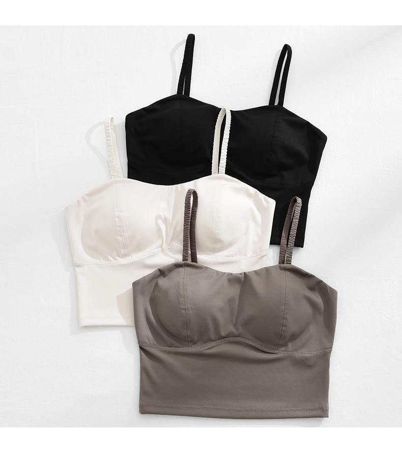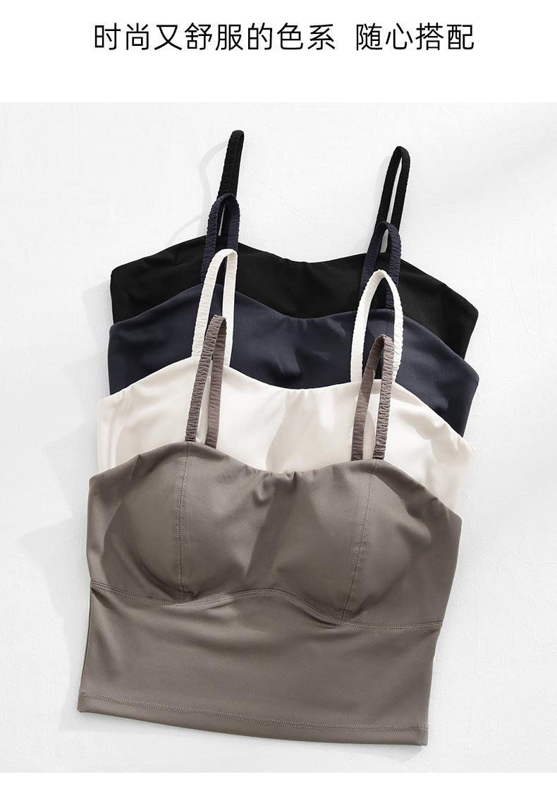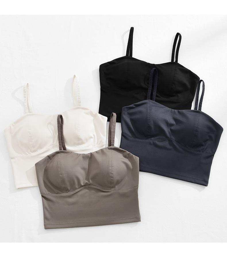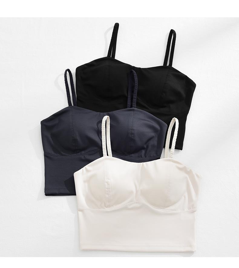 Camisola de seda helada sencilla de otoño, ropa interior para mujer, sujetador inalámbrico de una pieza con almohadilla interior para el pecho, base de belleza en la espalda