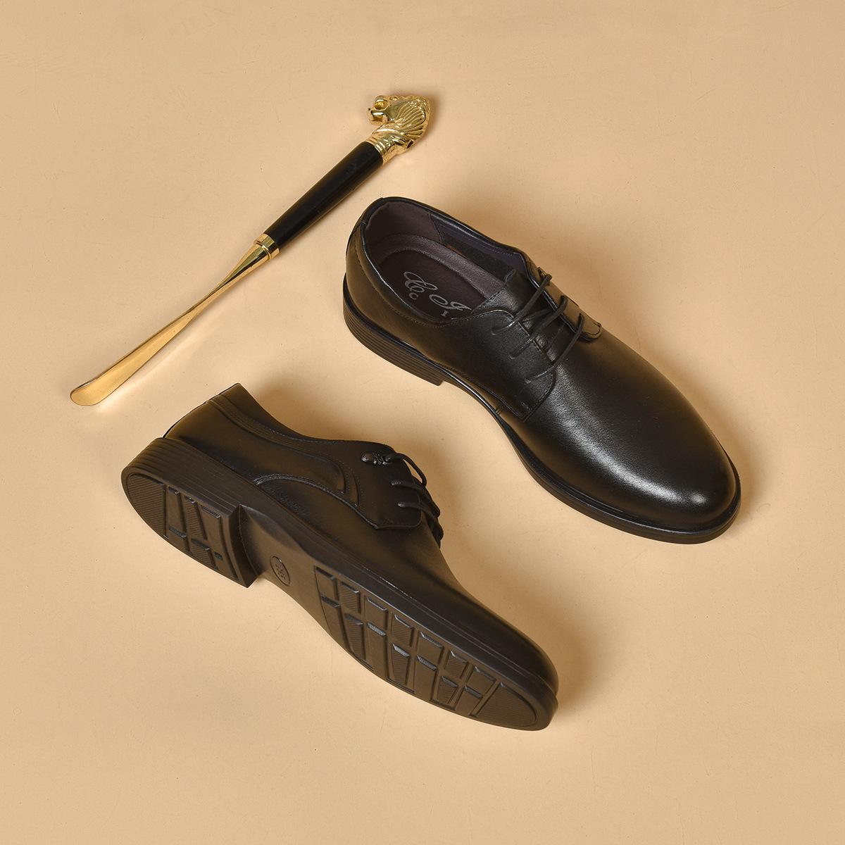 Zapatos de Cuero para Hombre Zapatos Casuales de Negocios para Hombre Primavera 2024 Nuevo Cuero Vacuno con Cordones Flats Negro Zapatos Profesionales de Trabajo
